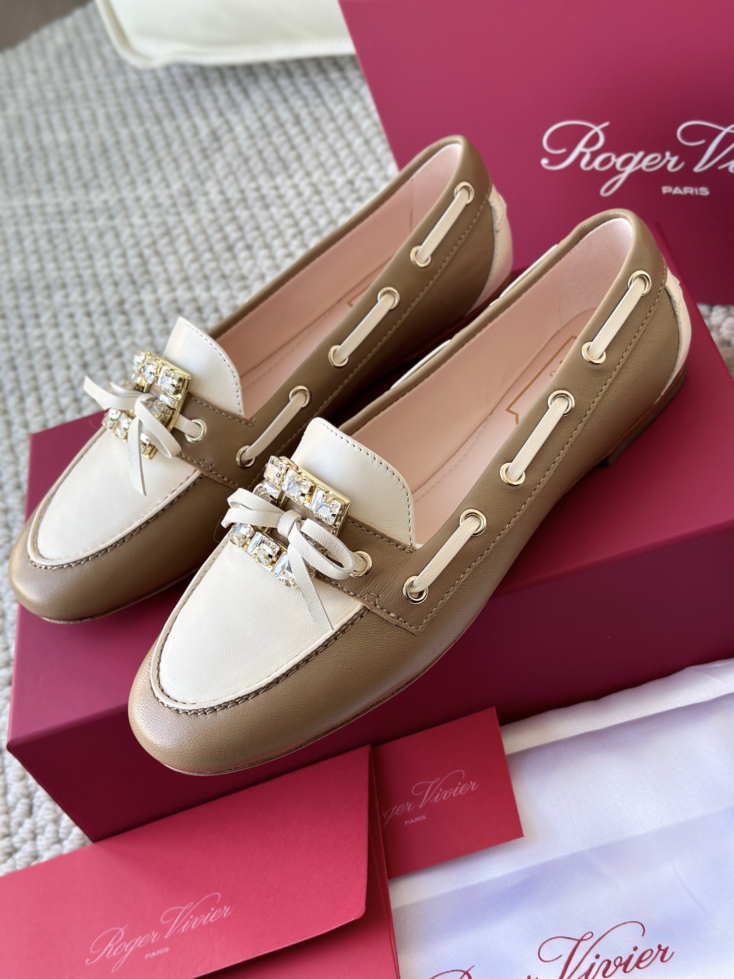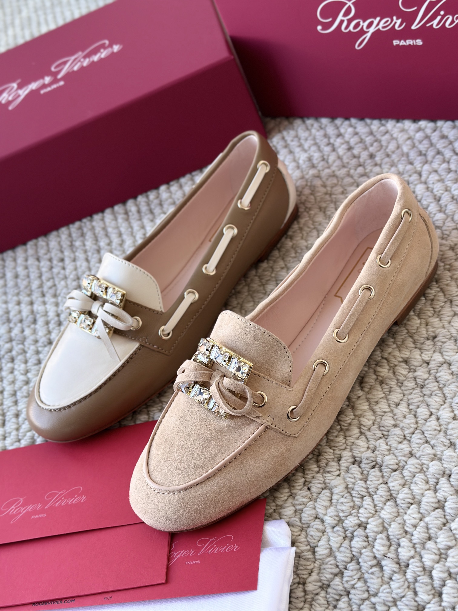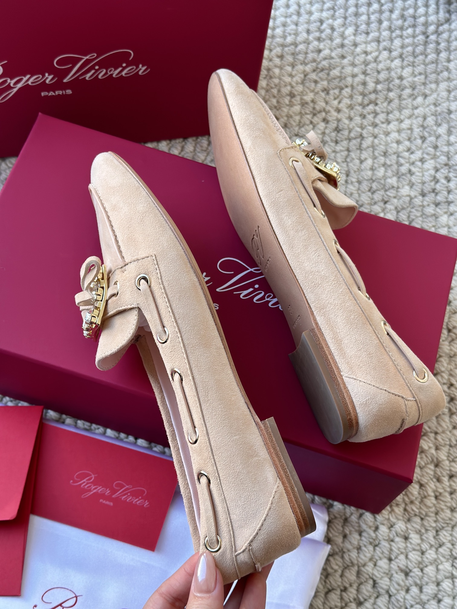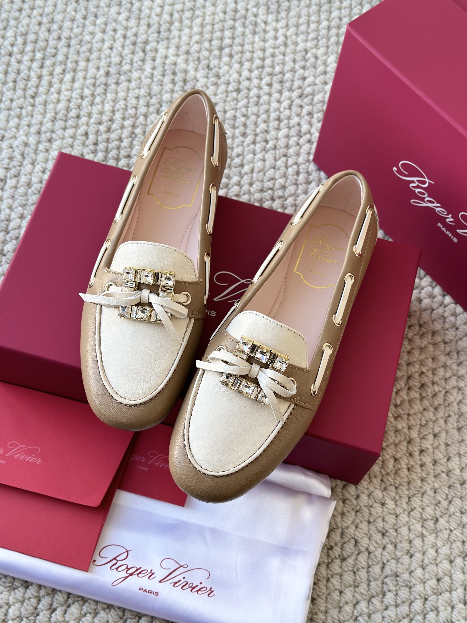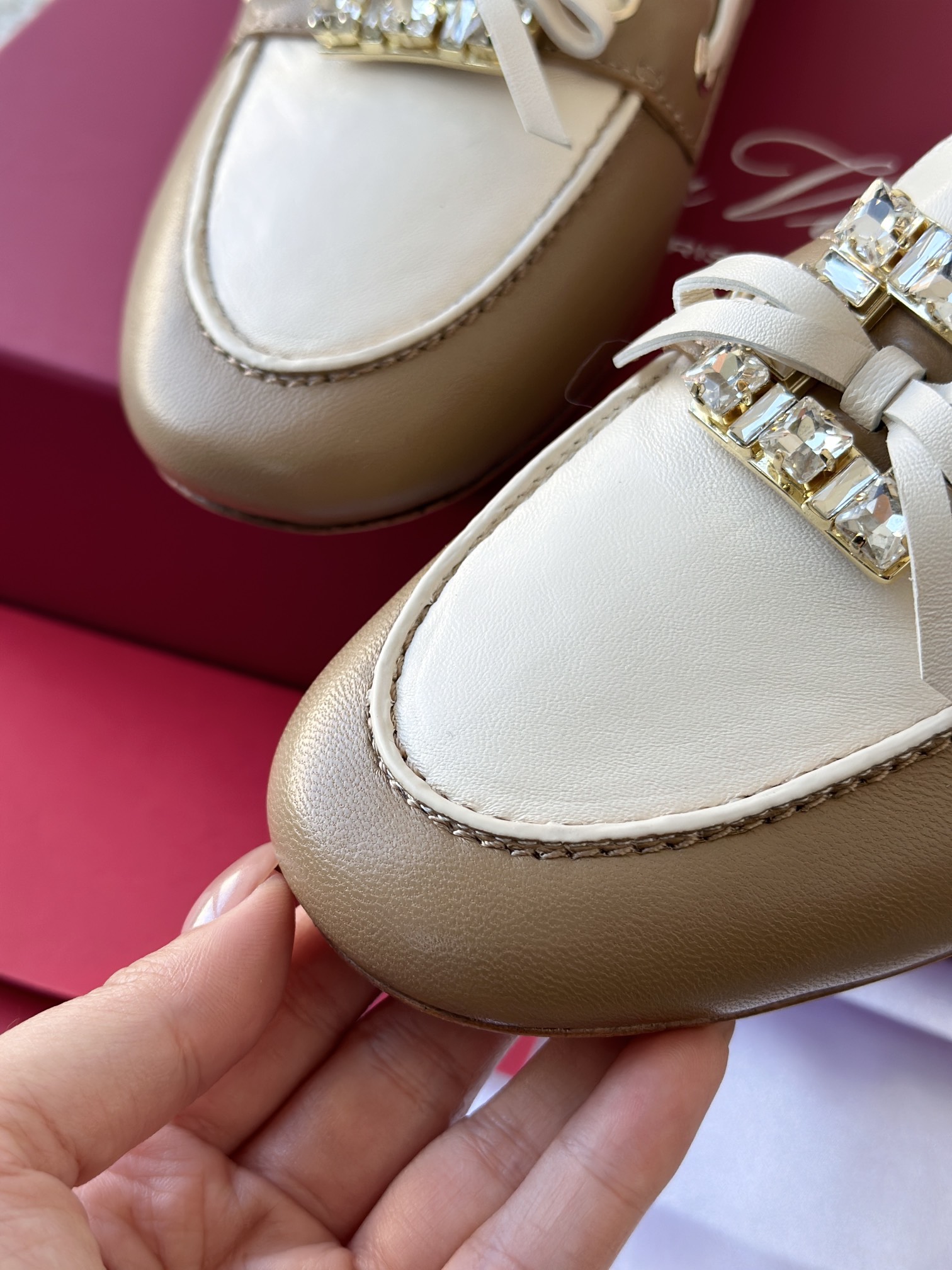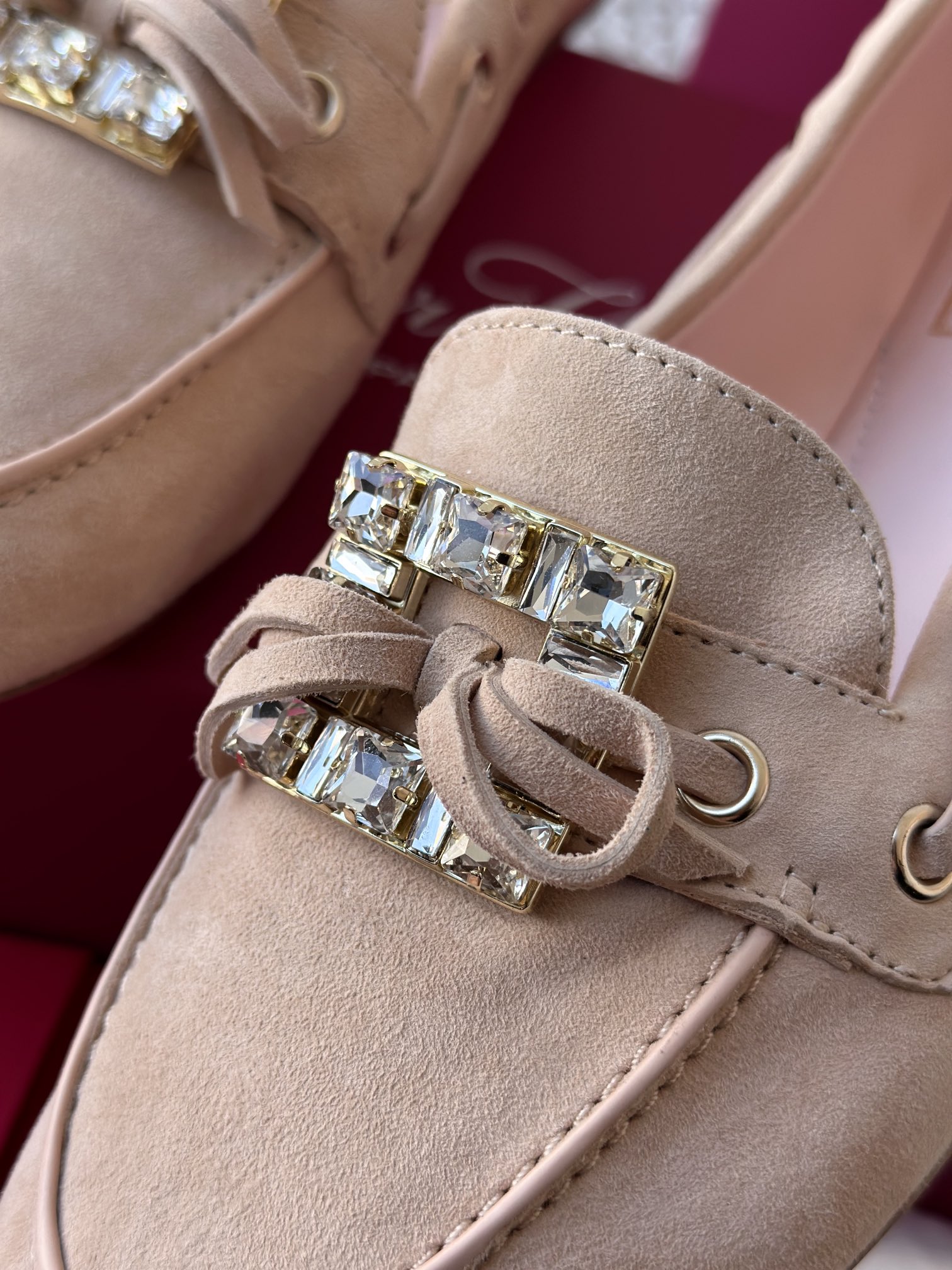 res Vivier 系列重新诠释经典乐福的魅力,手工制作,点缀mini水晶饰扣,闪耀动人搭配编制蝴蝶结,灵动可爱又不失优雅的气质