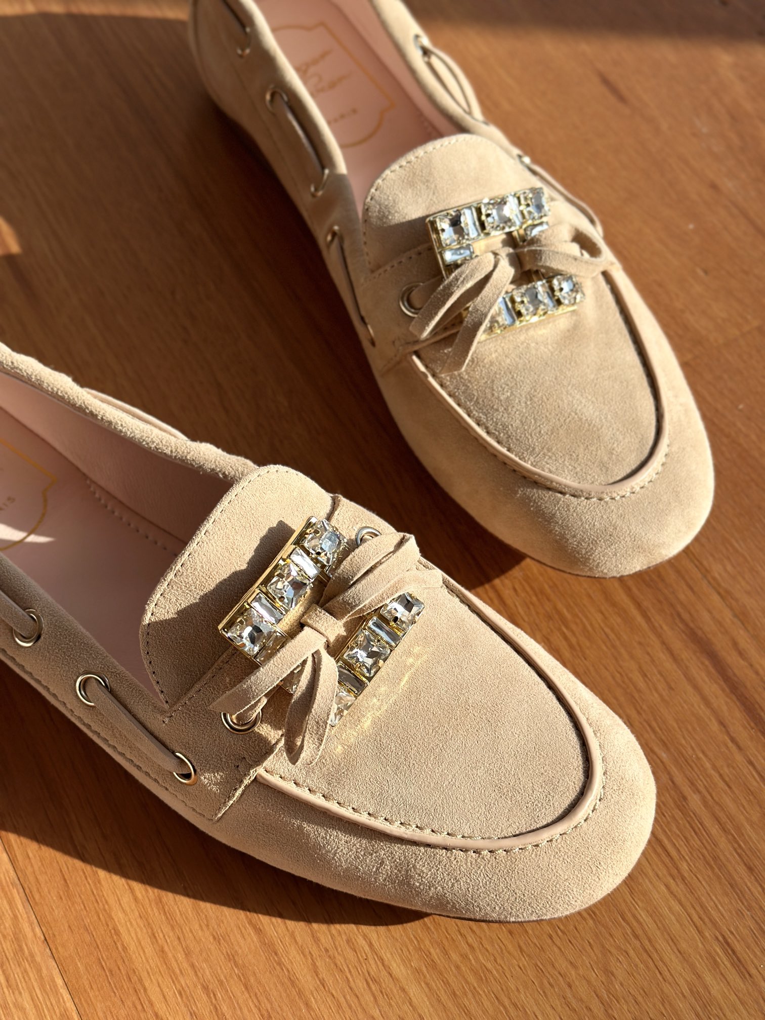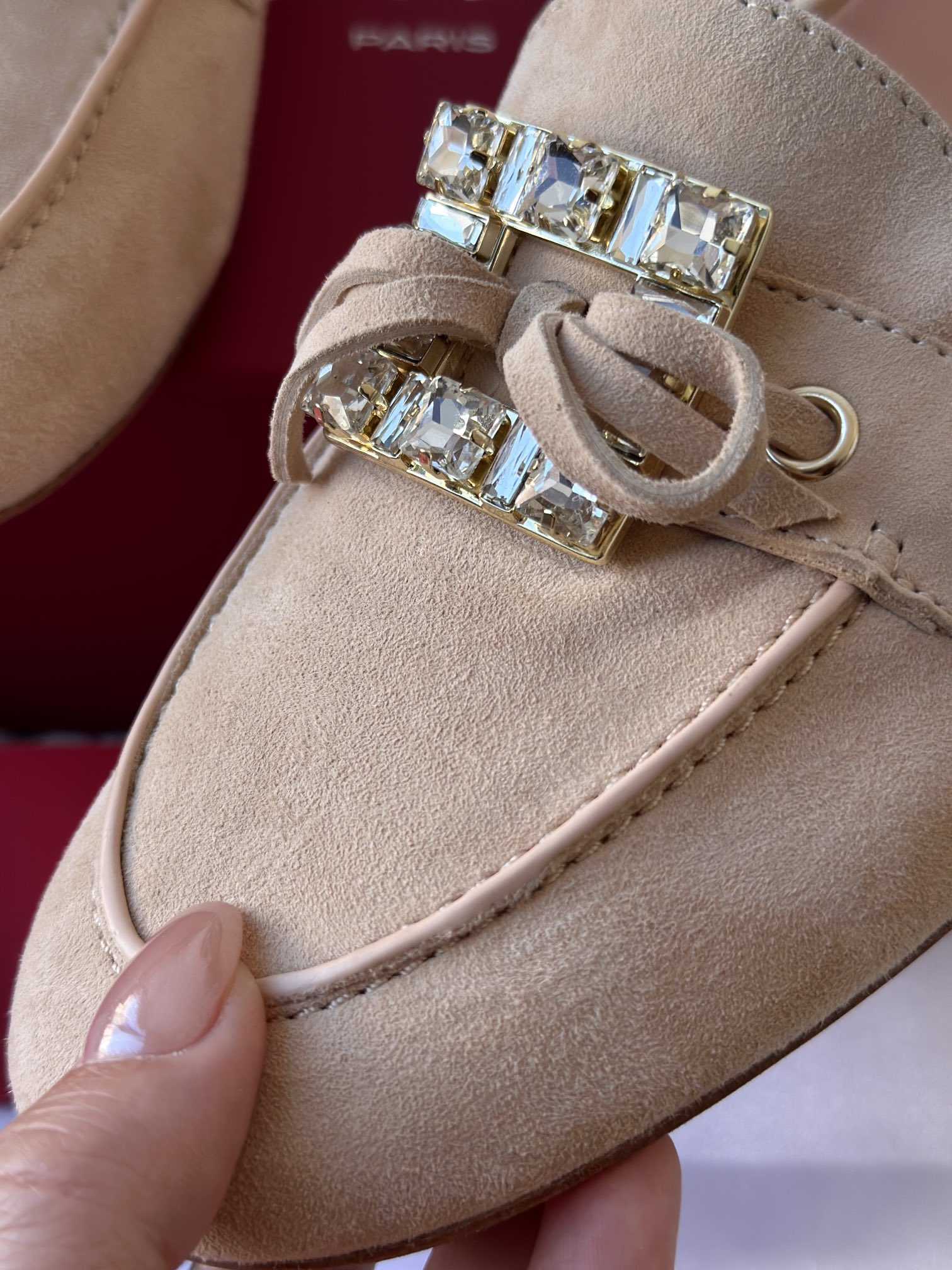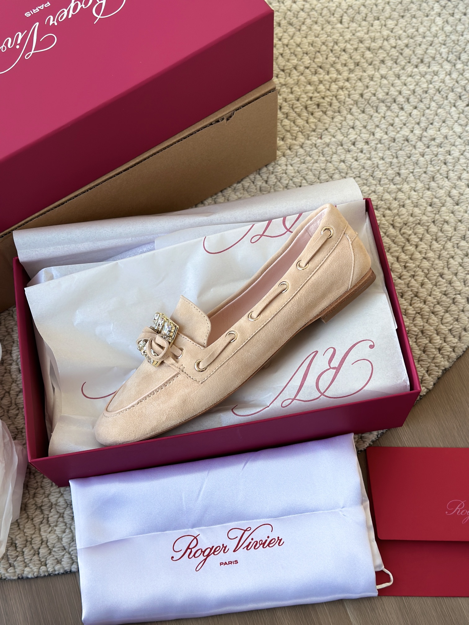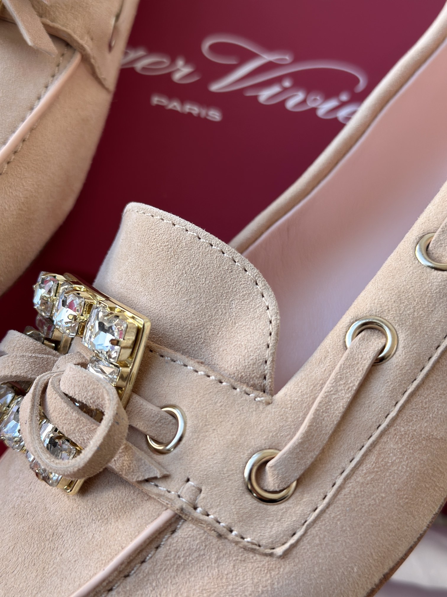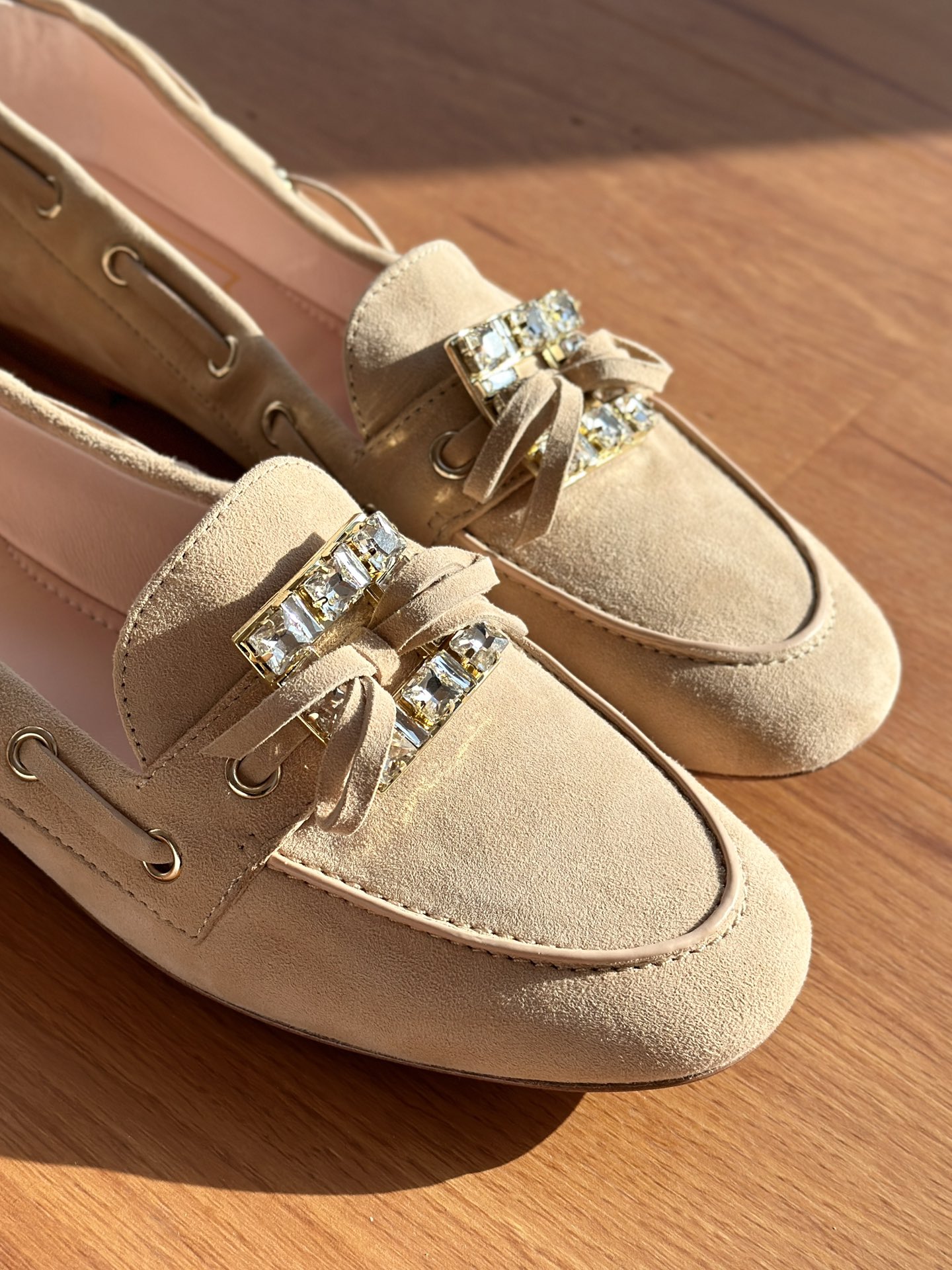 res Vivier 系列重新诠释经典乐福的魅力,手工制作,点缀mini水晶饰扣,闪耀动人搭配编制蝴蝶结,灵动可爱又不失优雅的气质