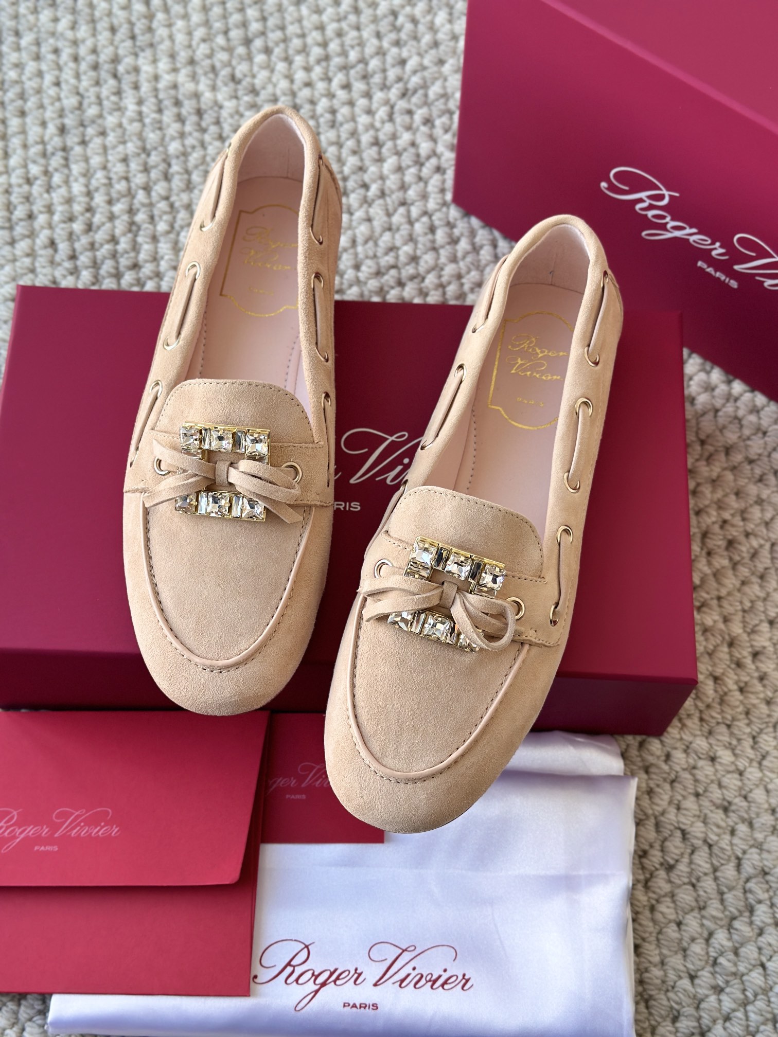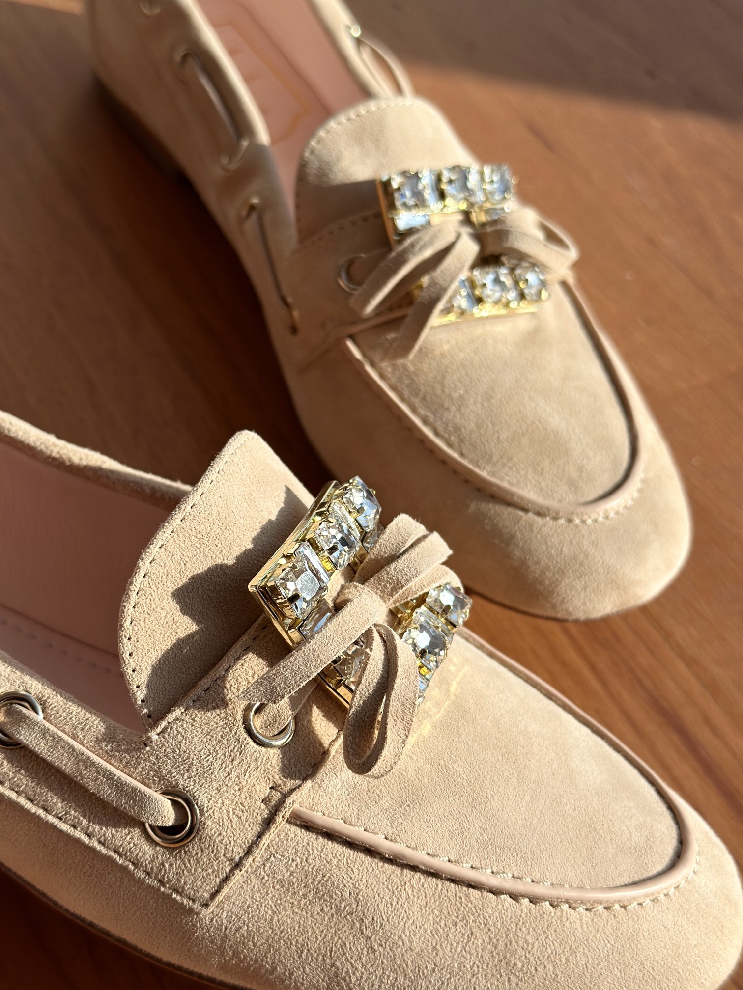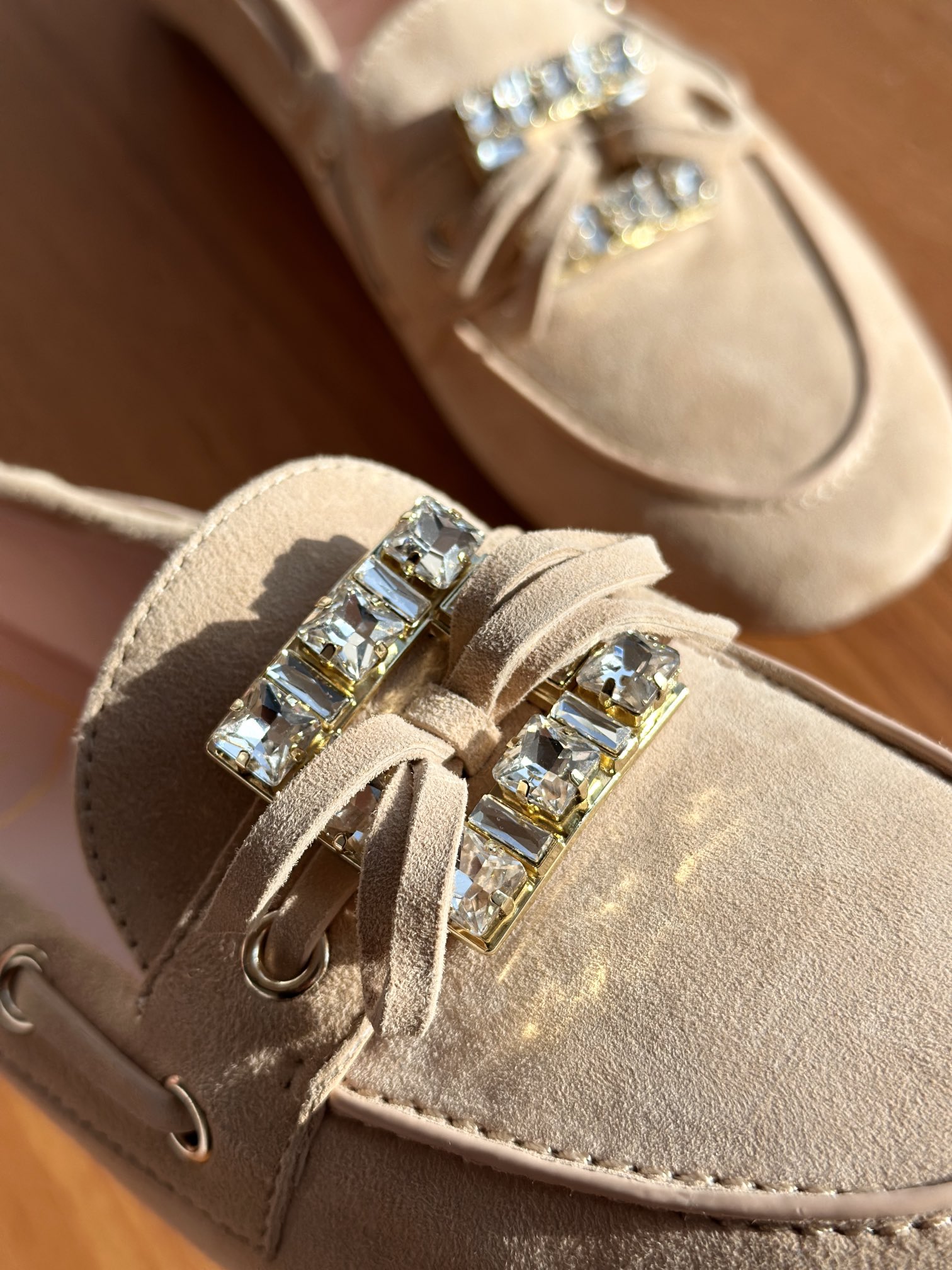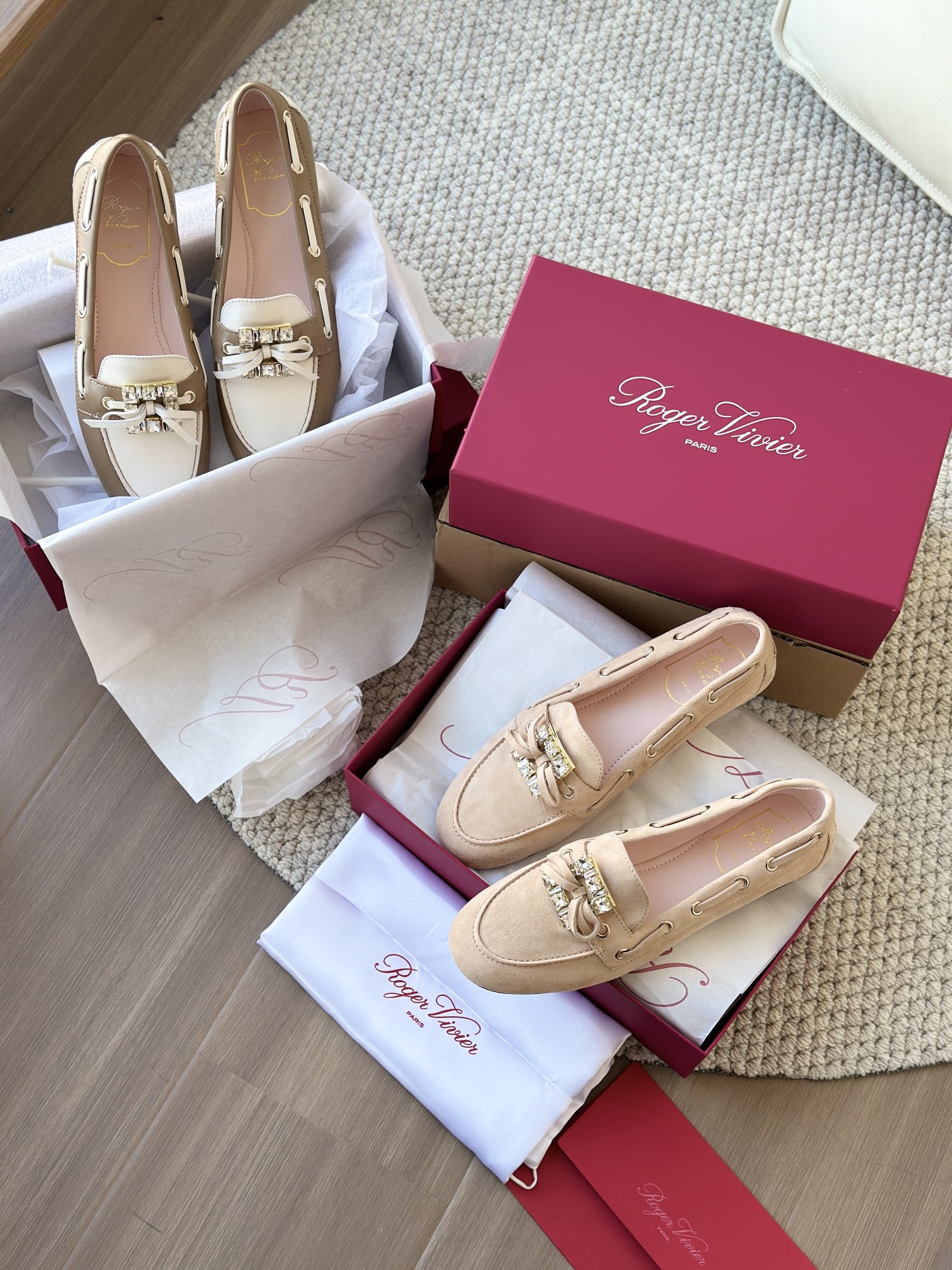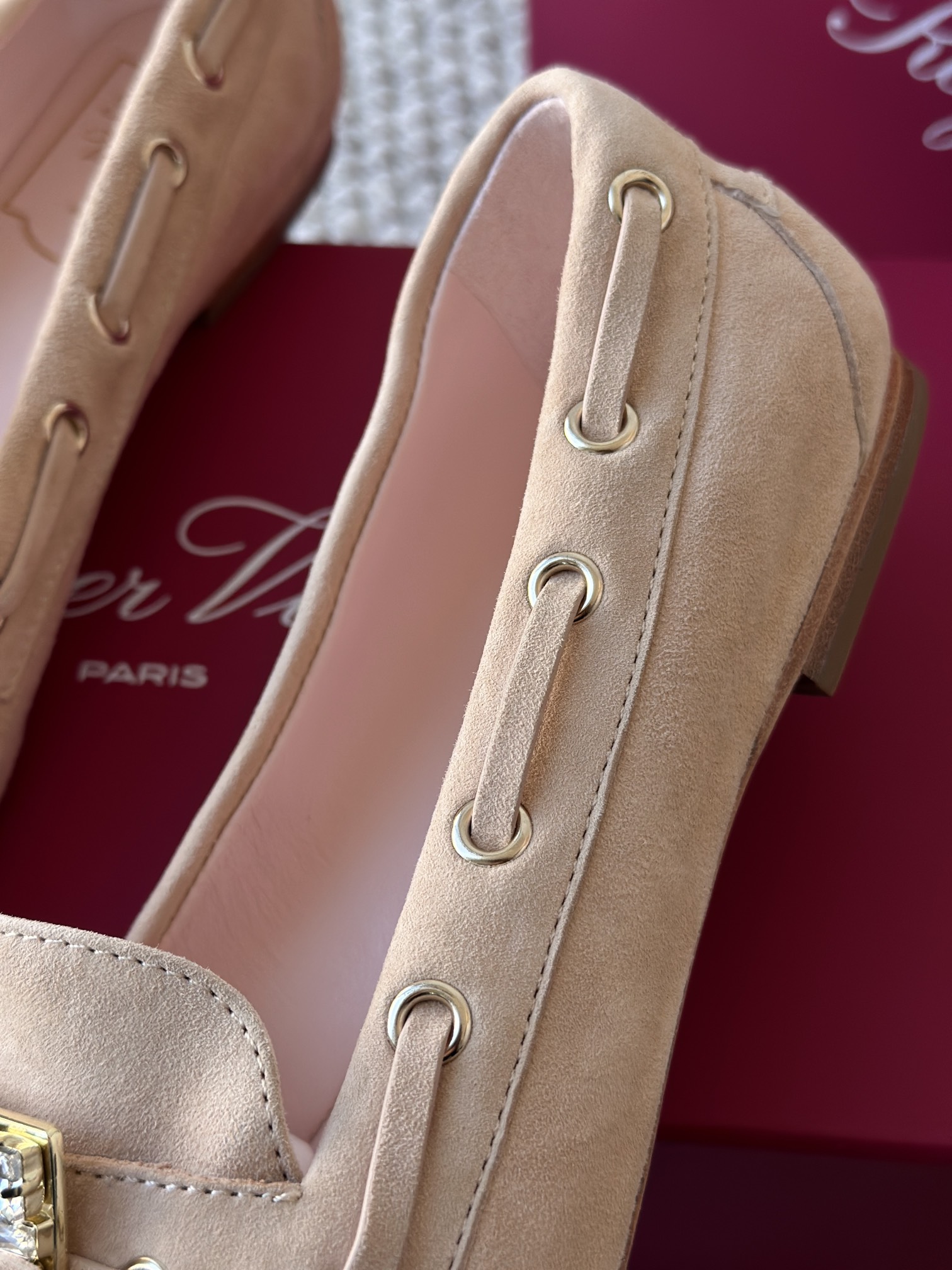 res Vivier 系列重新诠释经典乐福的魅力,手工制作,点缀mini水晶饰扣,闪耀动人搭配编制蝴蝶结,灵动可爱又不失优雅的气质