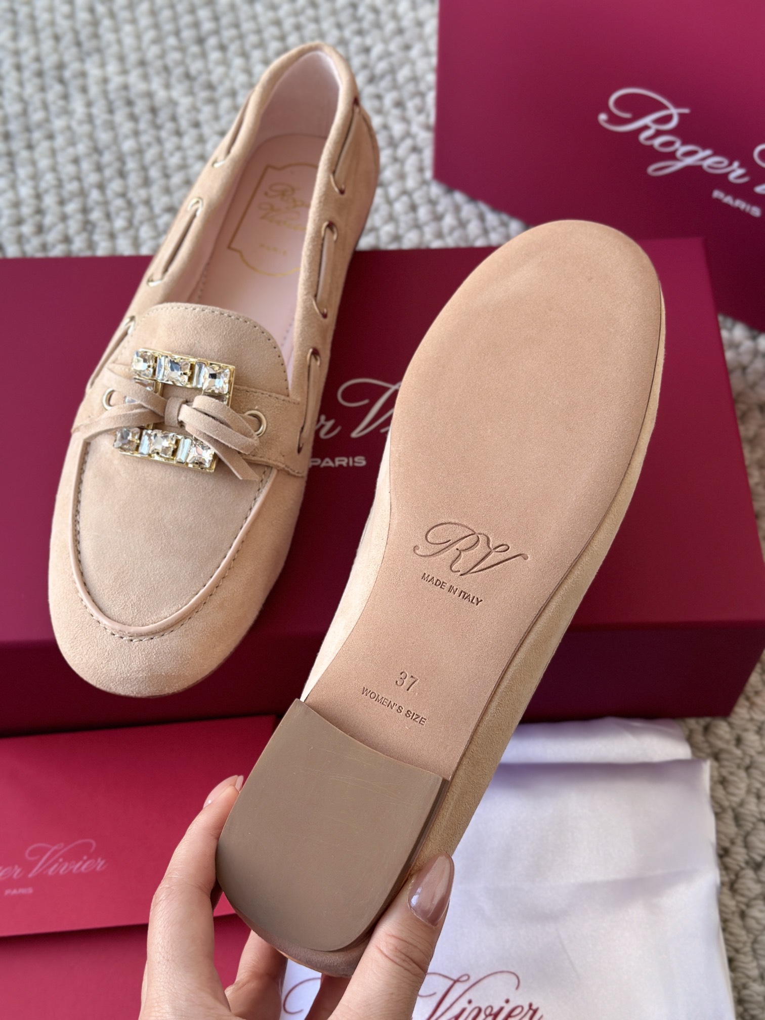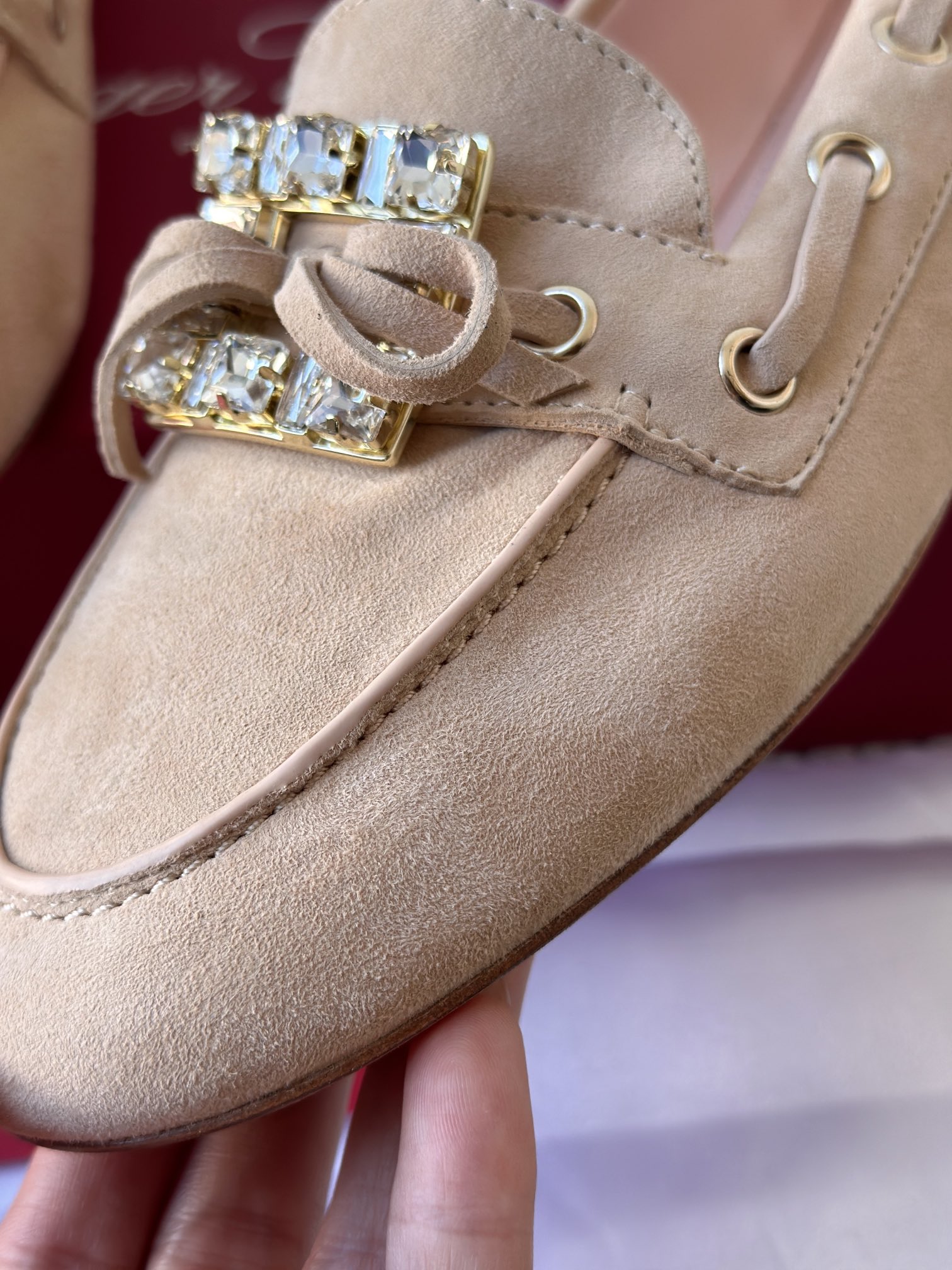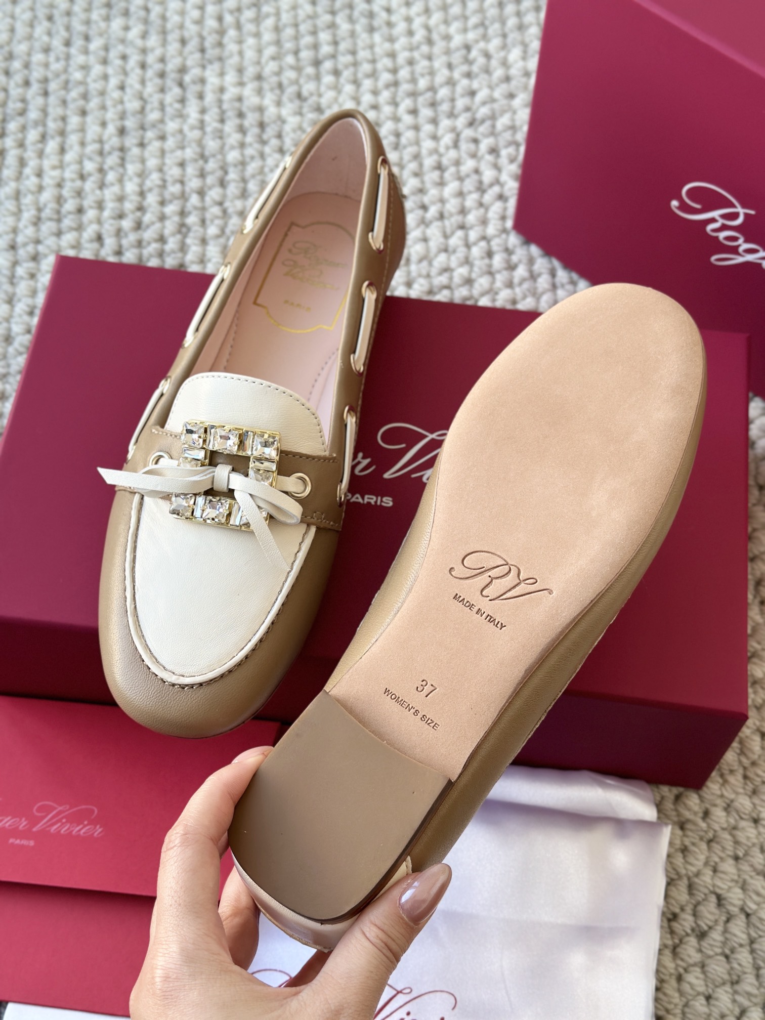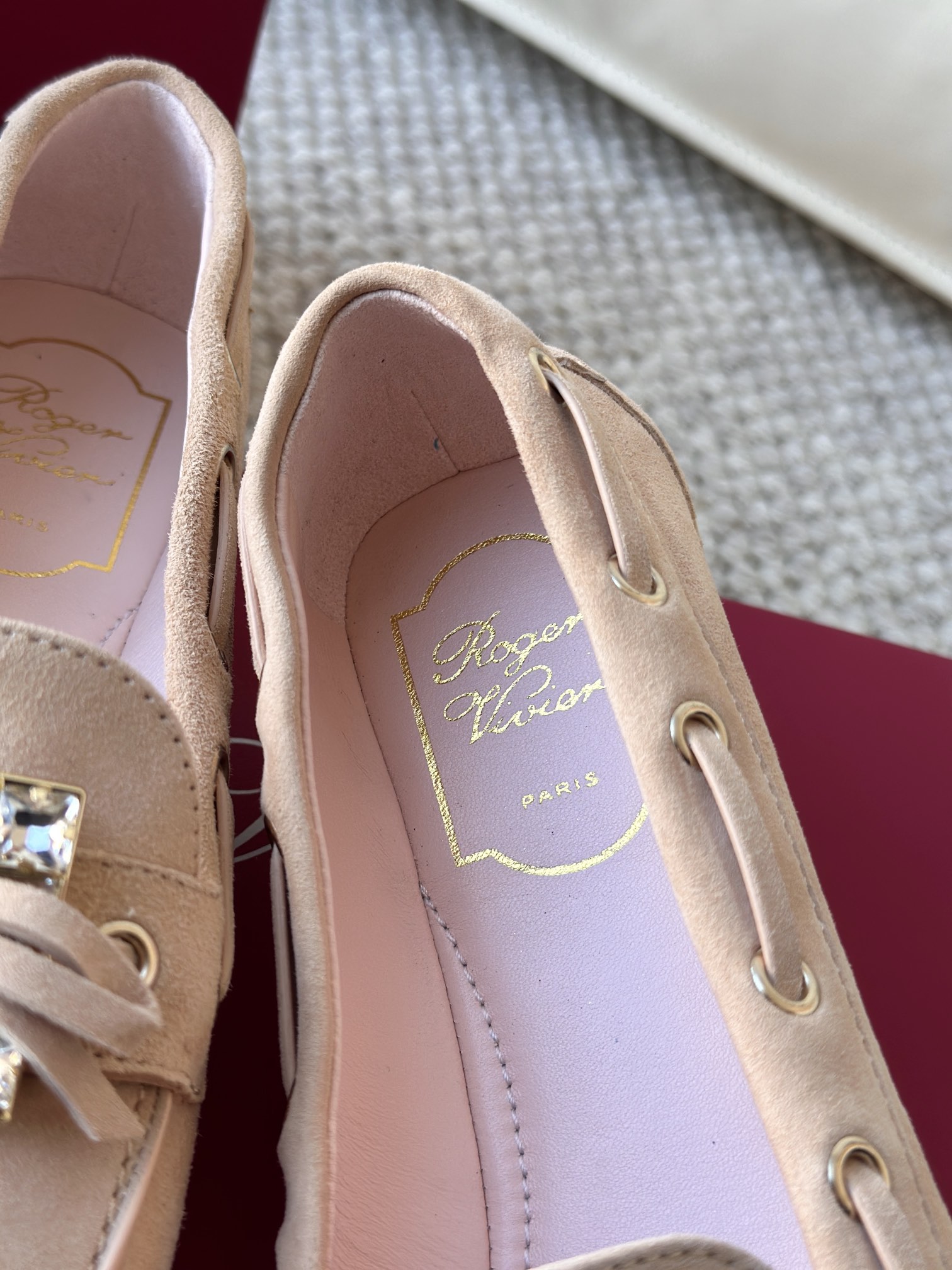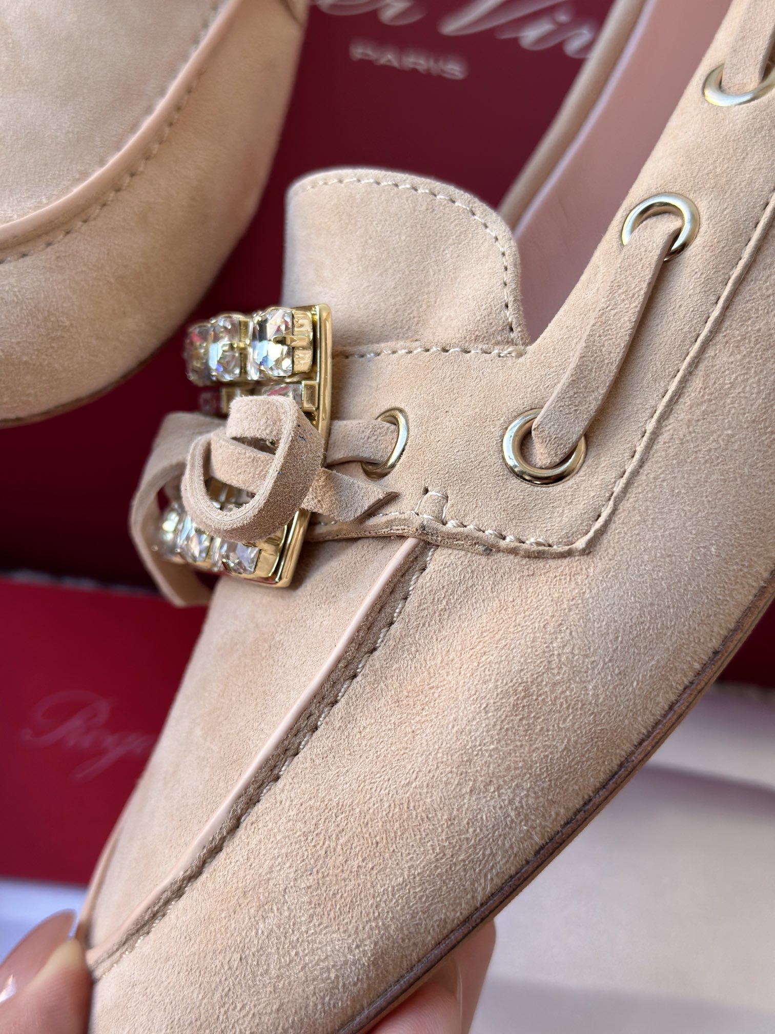 res Vivier 系列重新诠释经典乐福的魅力,手工制作,点缀mini水晶饰扣,闪耀动人搭配编制蝴蝶结,灵动可爱又不失优雅的气质