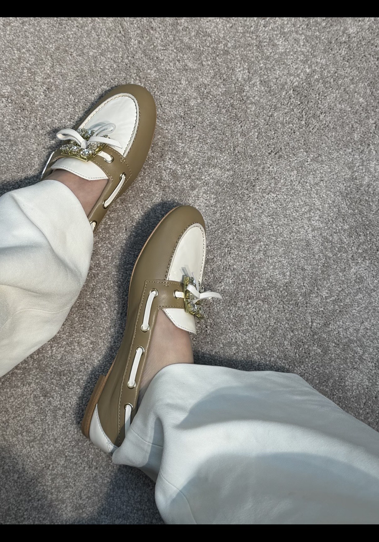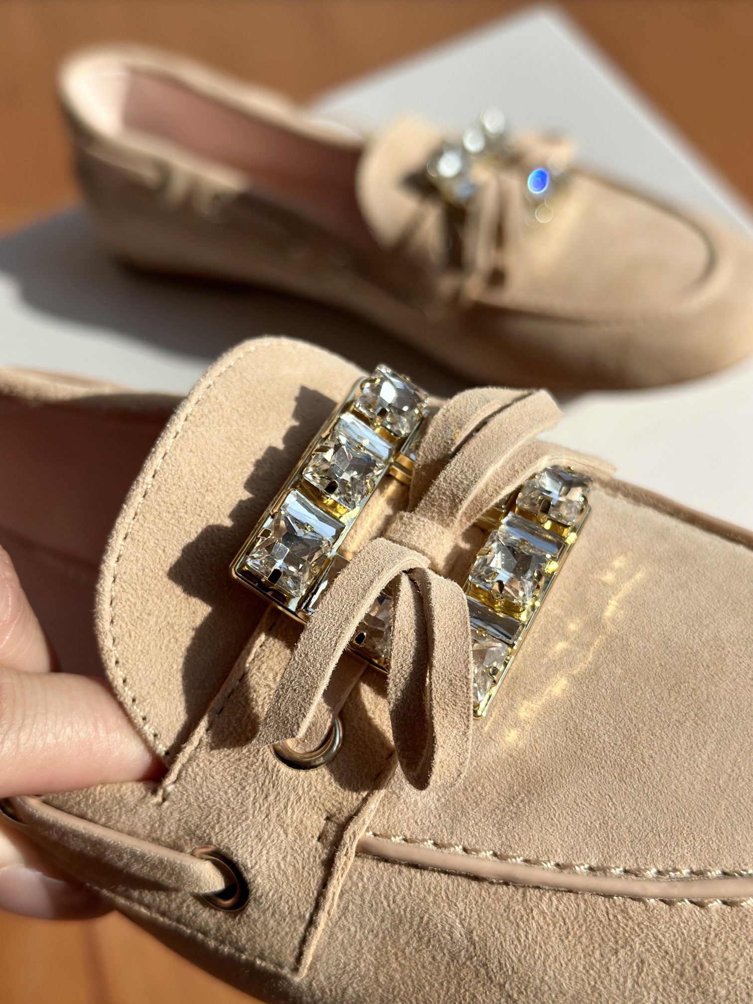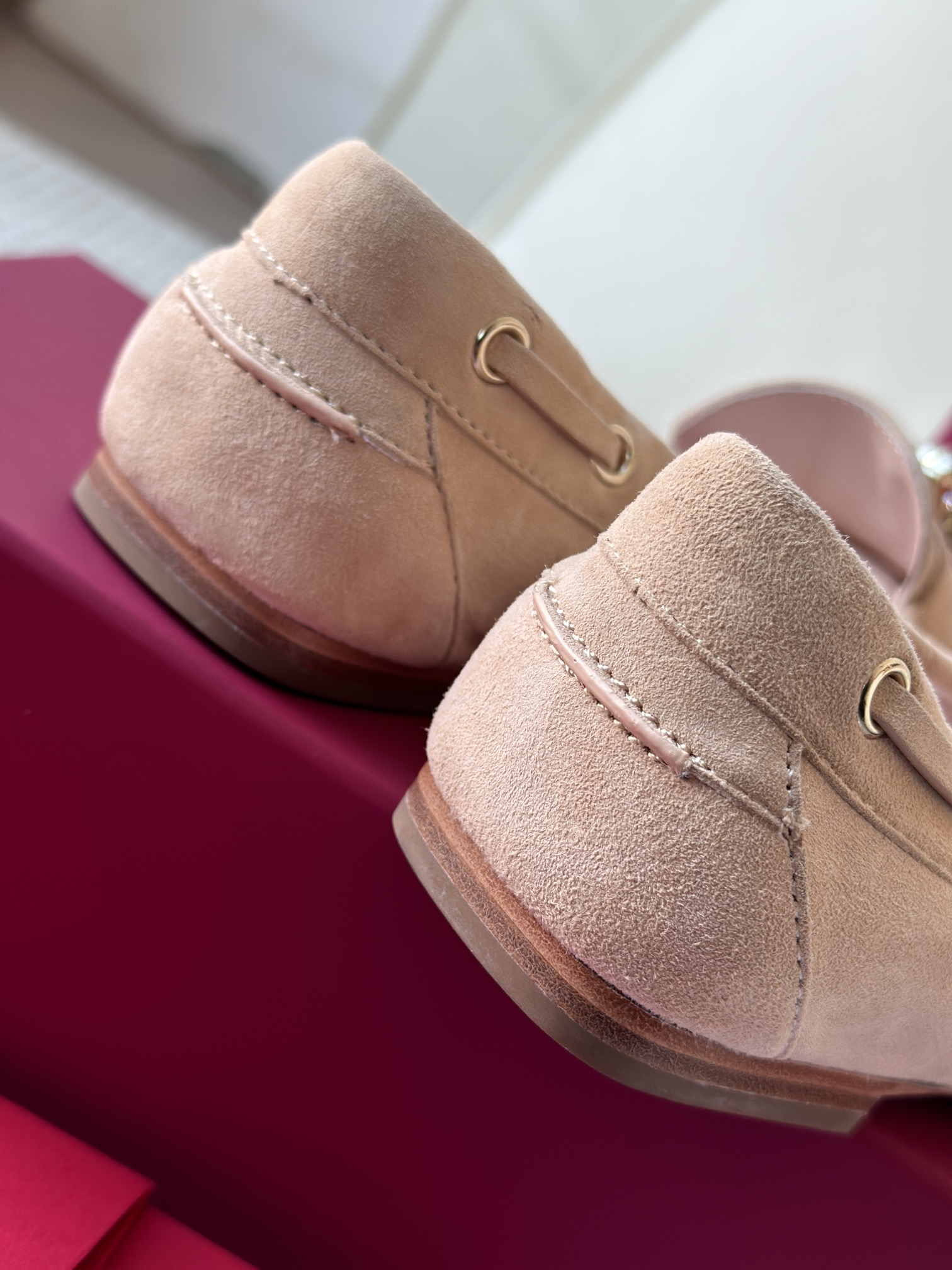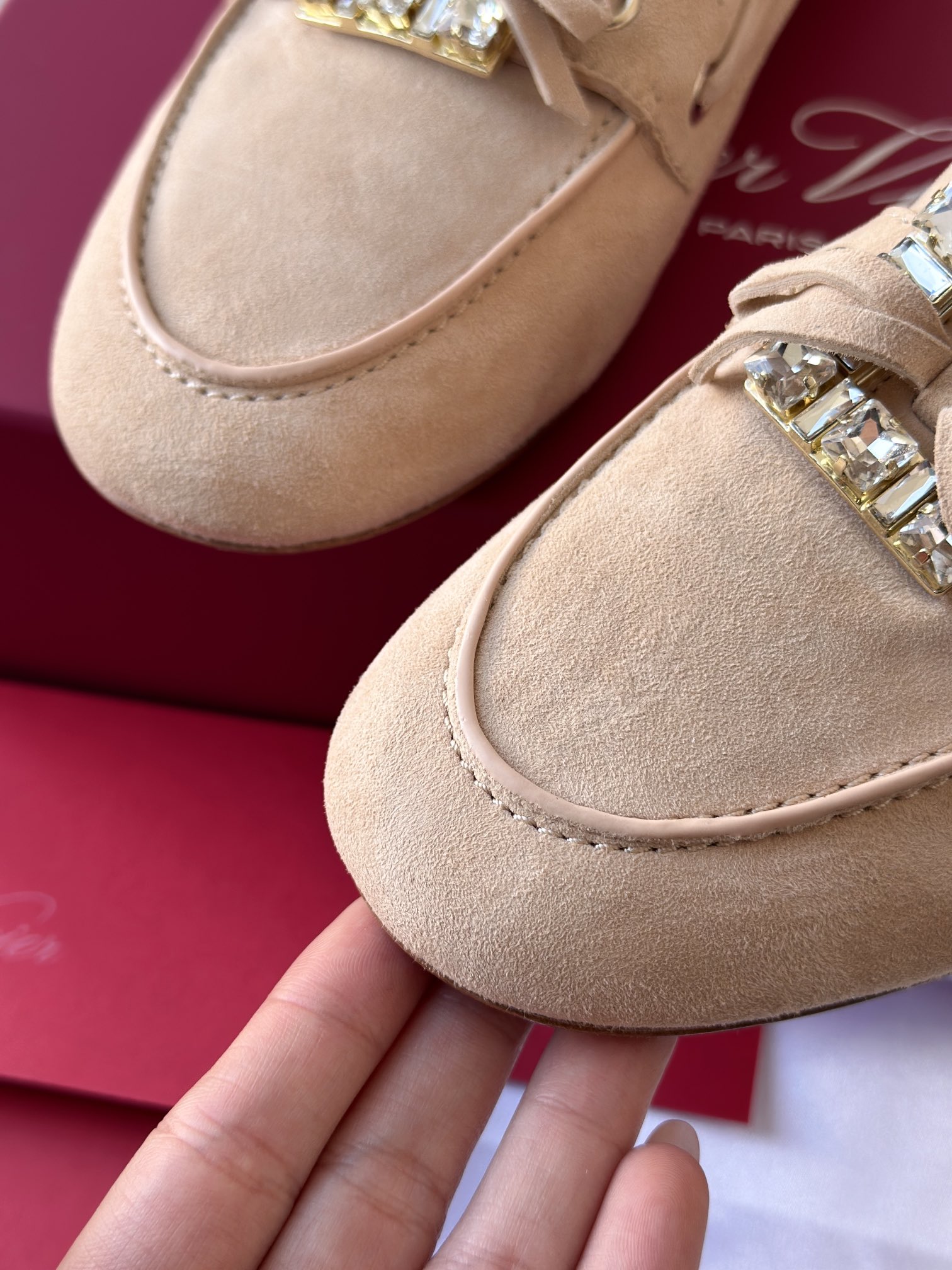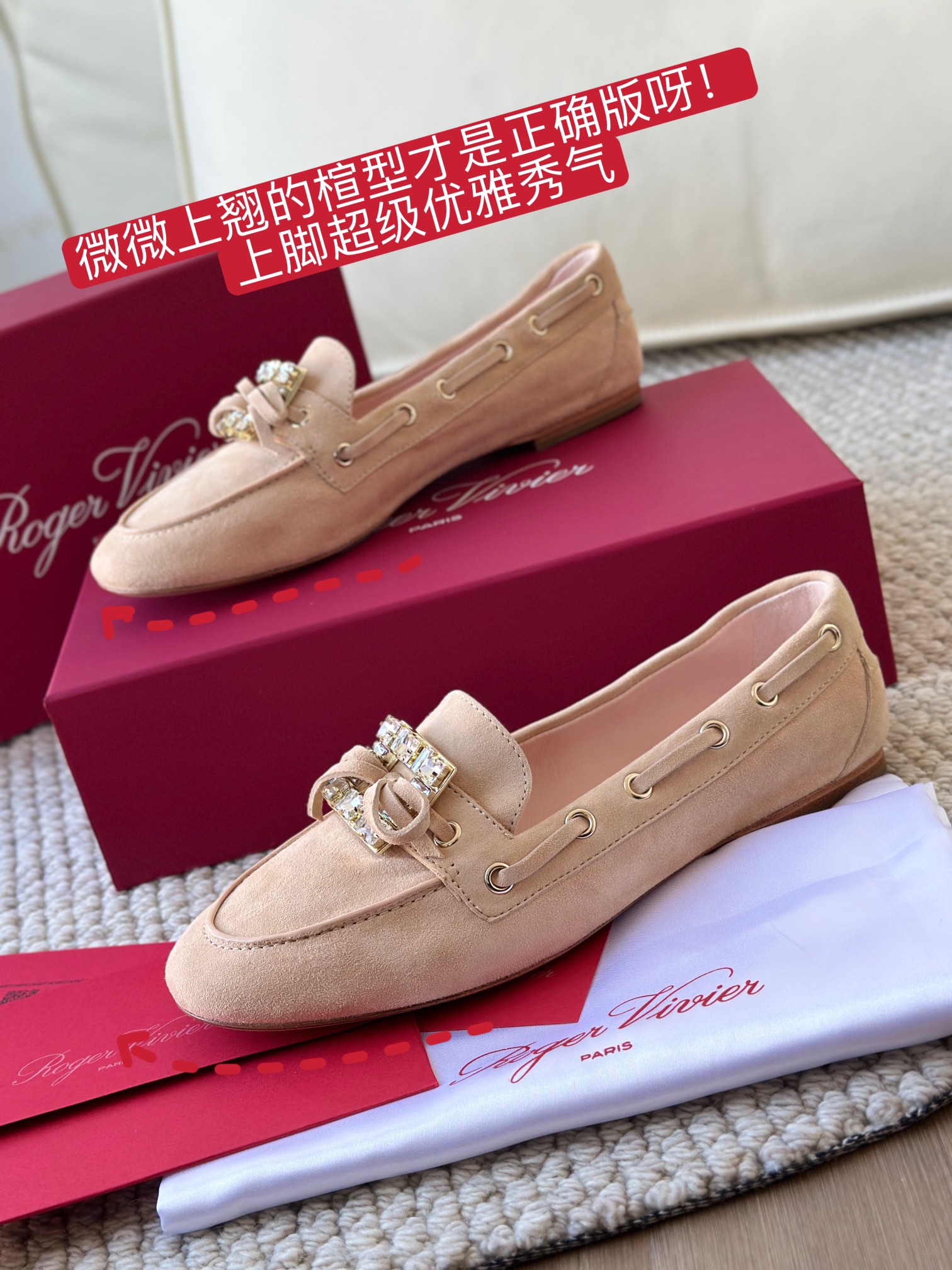 平时喜欢平底鞋的姐妹这双可以拿回去试一下!不是那种特别软的乐福,但是舒适度一样在线!搭配一些牛仔裤、半裙都超级好看! 鞋面采用原厂进口胎牛皮/麂皮 光泽度完美,内里垫脚进口羊皮,原厂真皮大底。