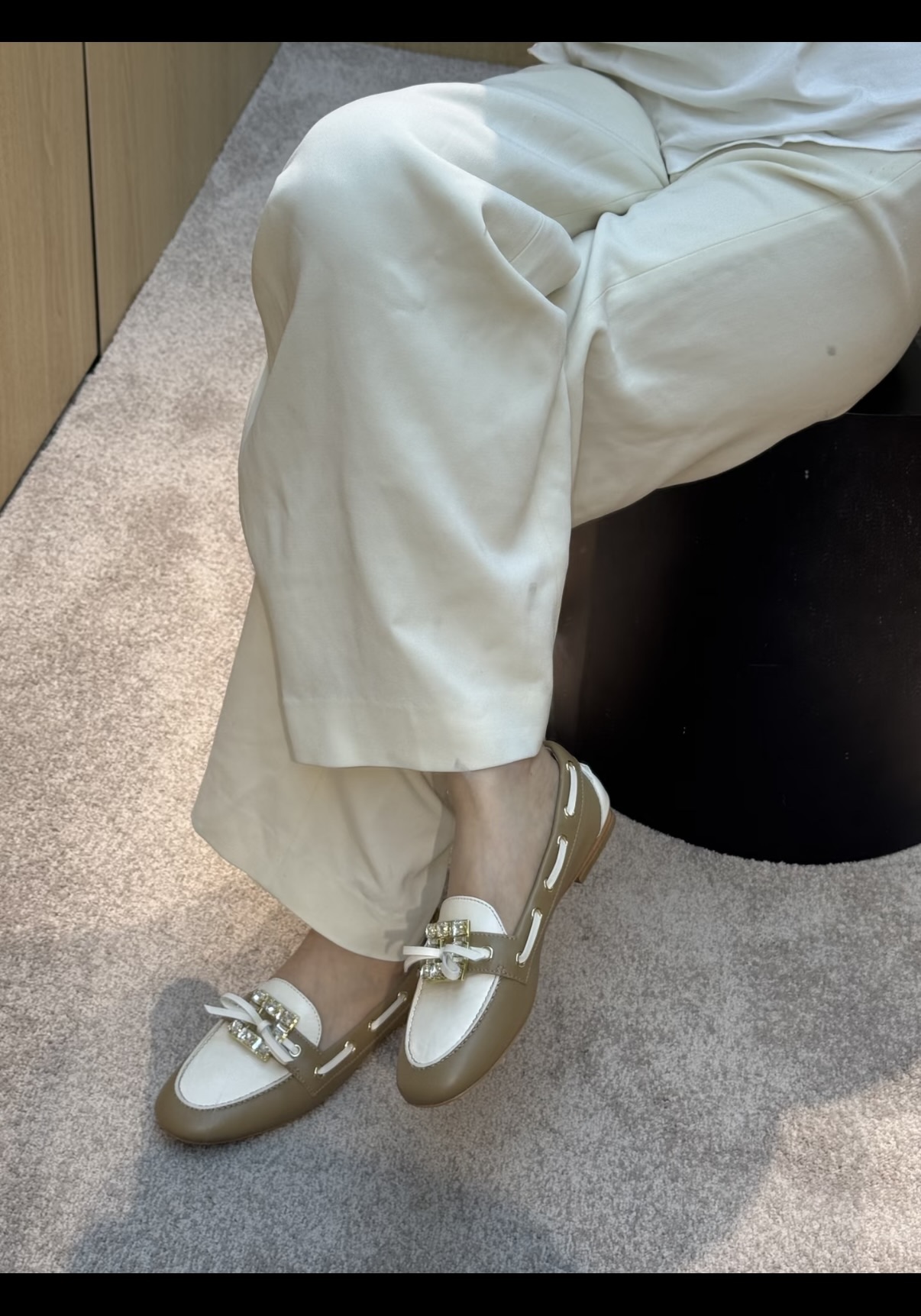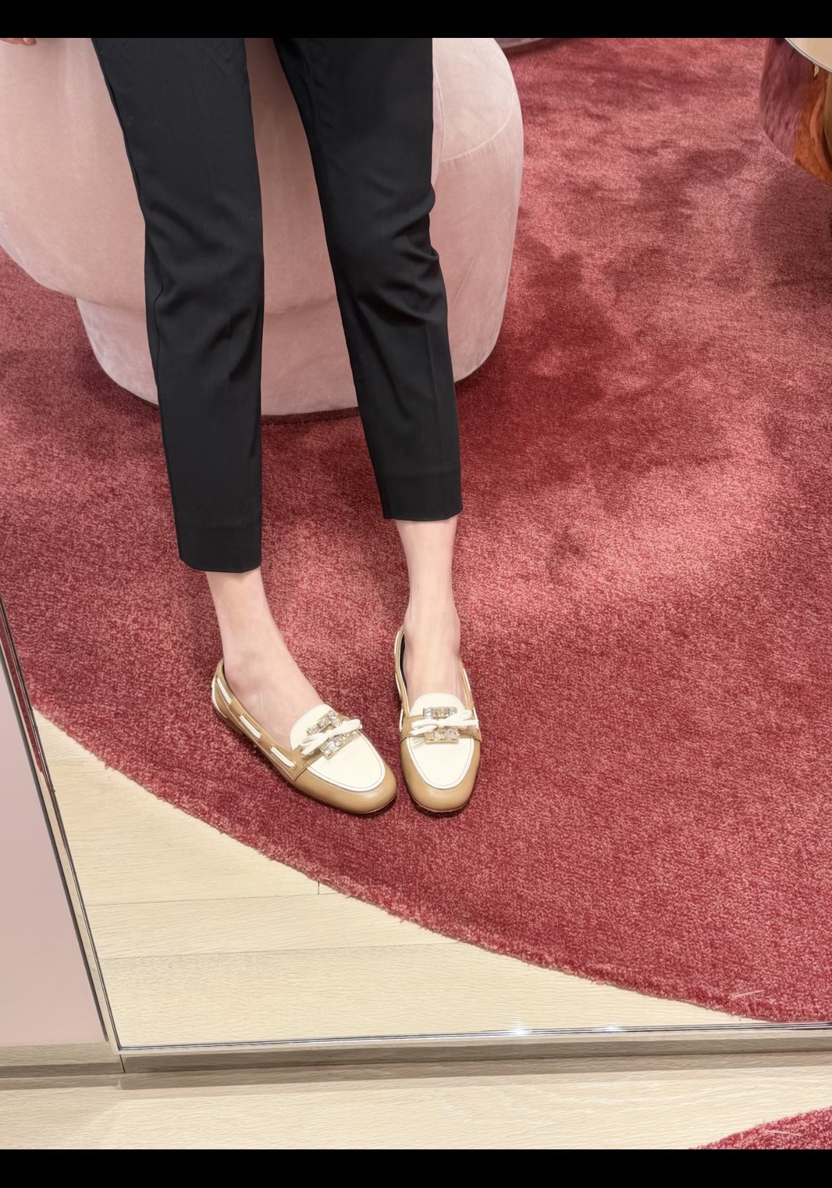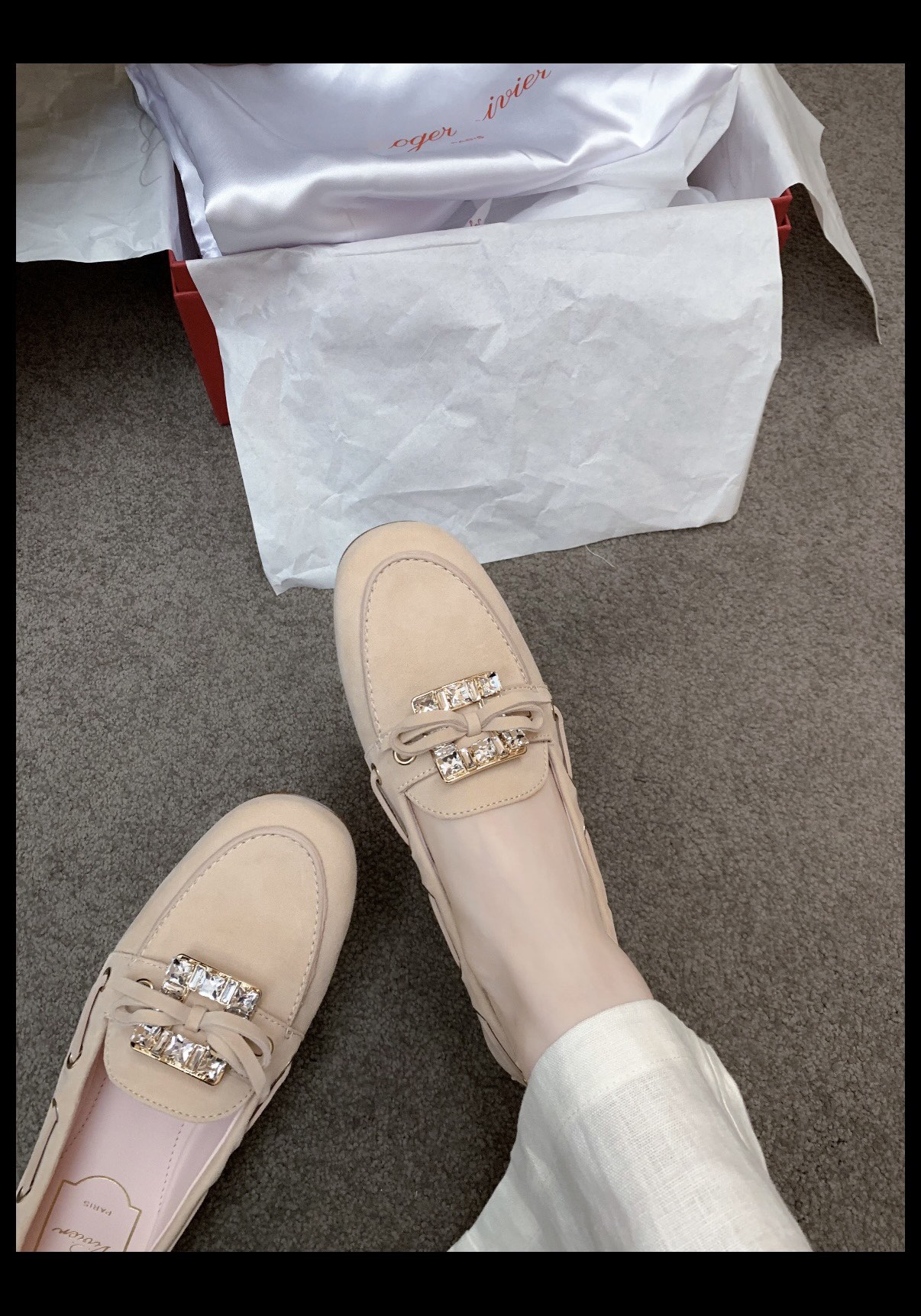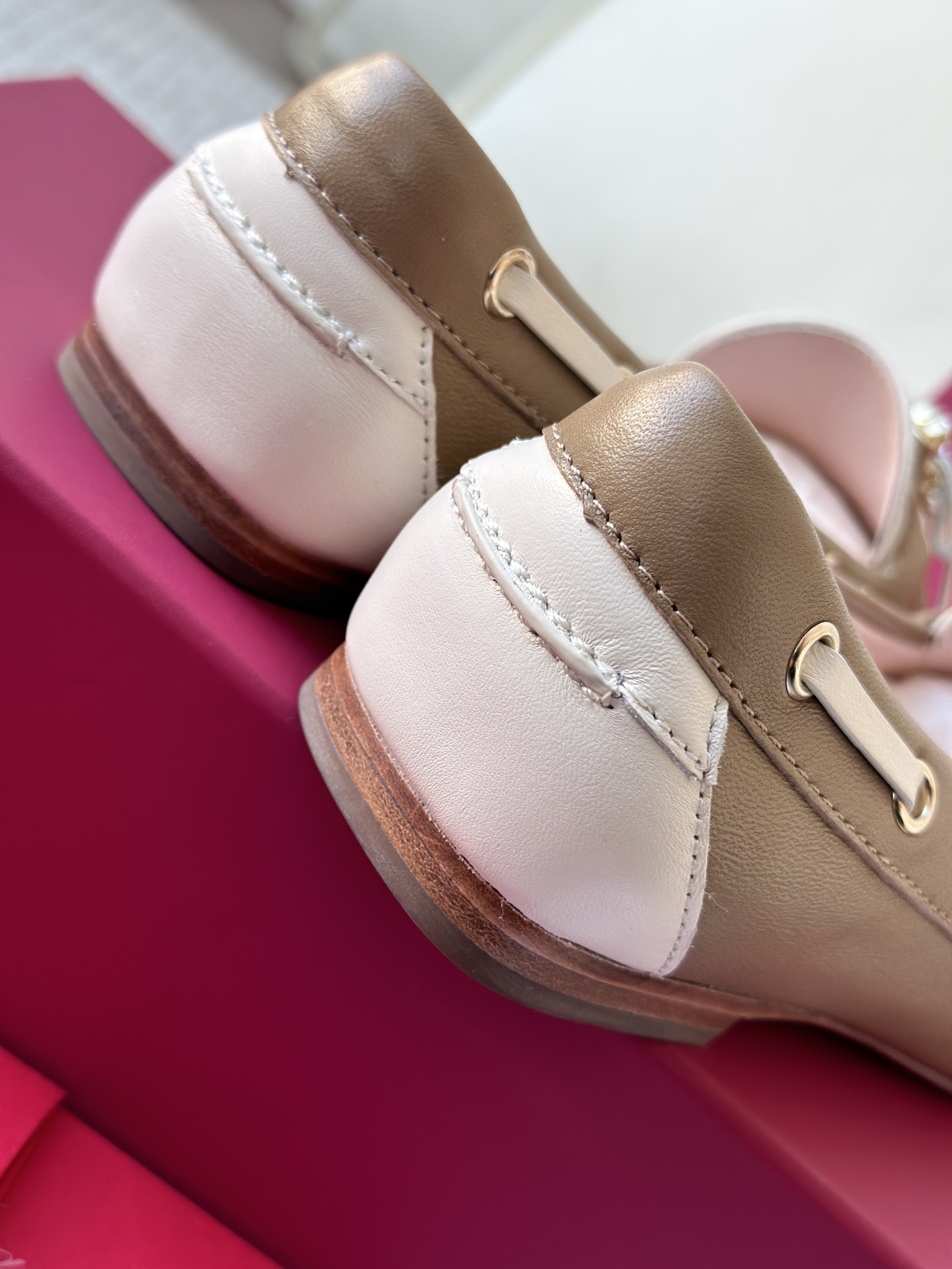 平时喜欢平底鞋的姐妹这双可以拿回去试一下!不是那种特别软的乐福,但是舒适度一样在线!搭配一些牛仔裤、半裙都超级好看! 鞋面采用原厂进口胎牛皮/麂皮 光泽度完美,内里垫脚进口羊皮,原厂真皮大底。