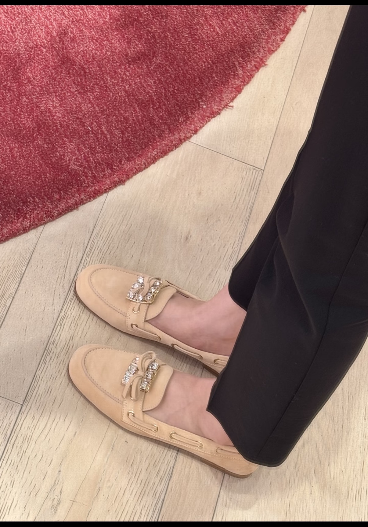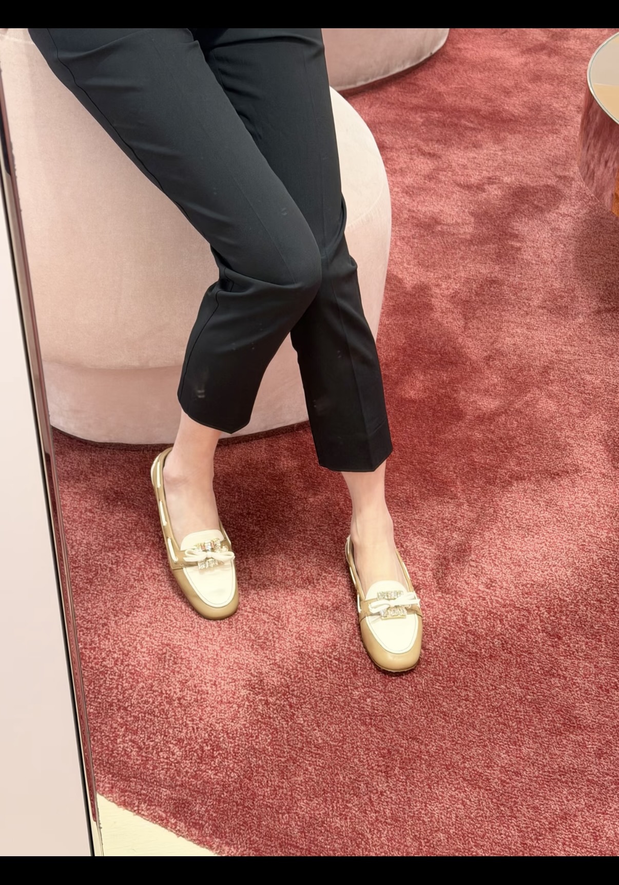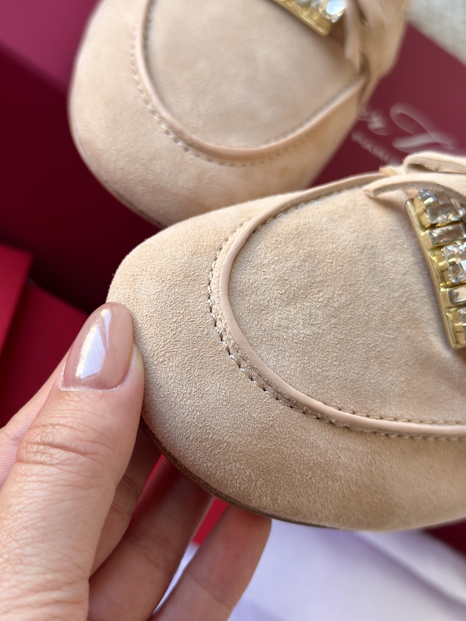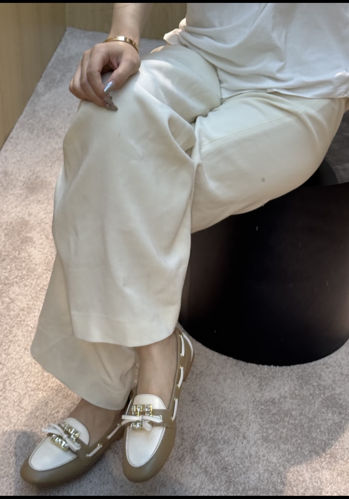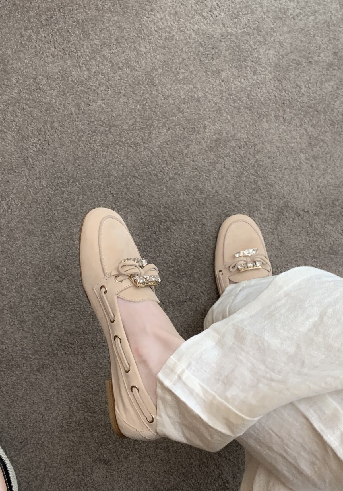 平时喜欢平底鞋的姐妹这双可以拿回去试一下!不是那种特别软的乐福,但是舒适度一样在线!搭配一些牛仔裤、半裙都超级好看! 鞋面采用原厂进口胎牛皮/麂皮 光泽度完美,内里垫脚进口羊皮,原厂真皮大底。