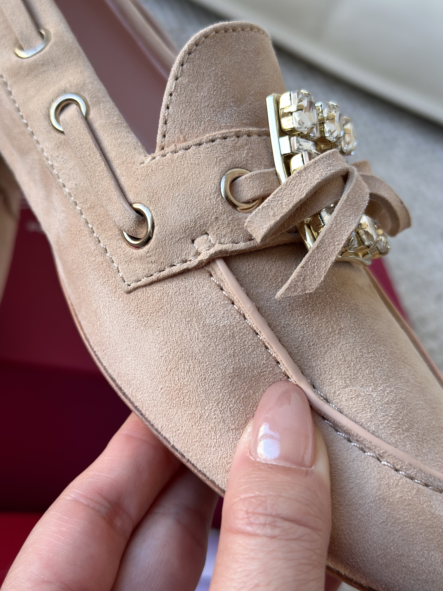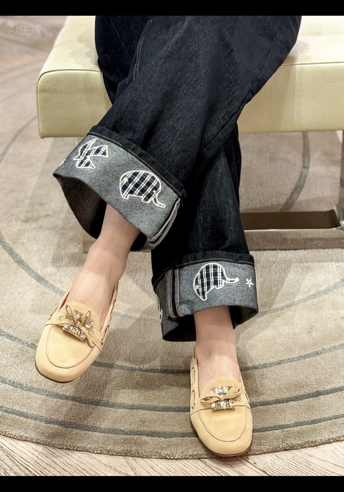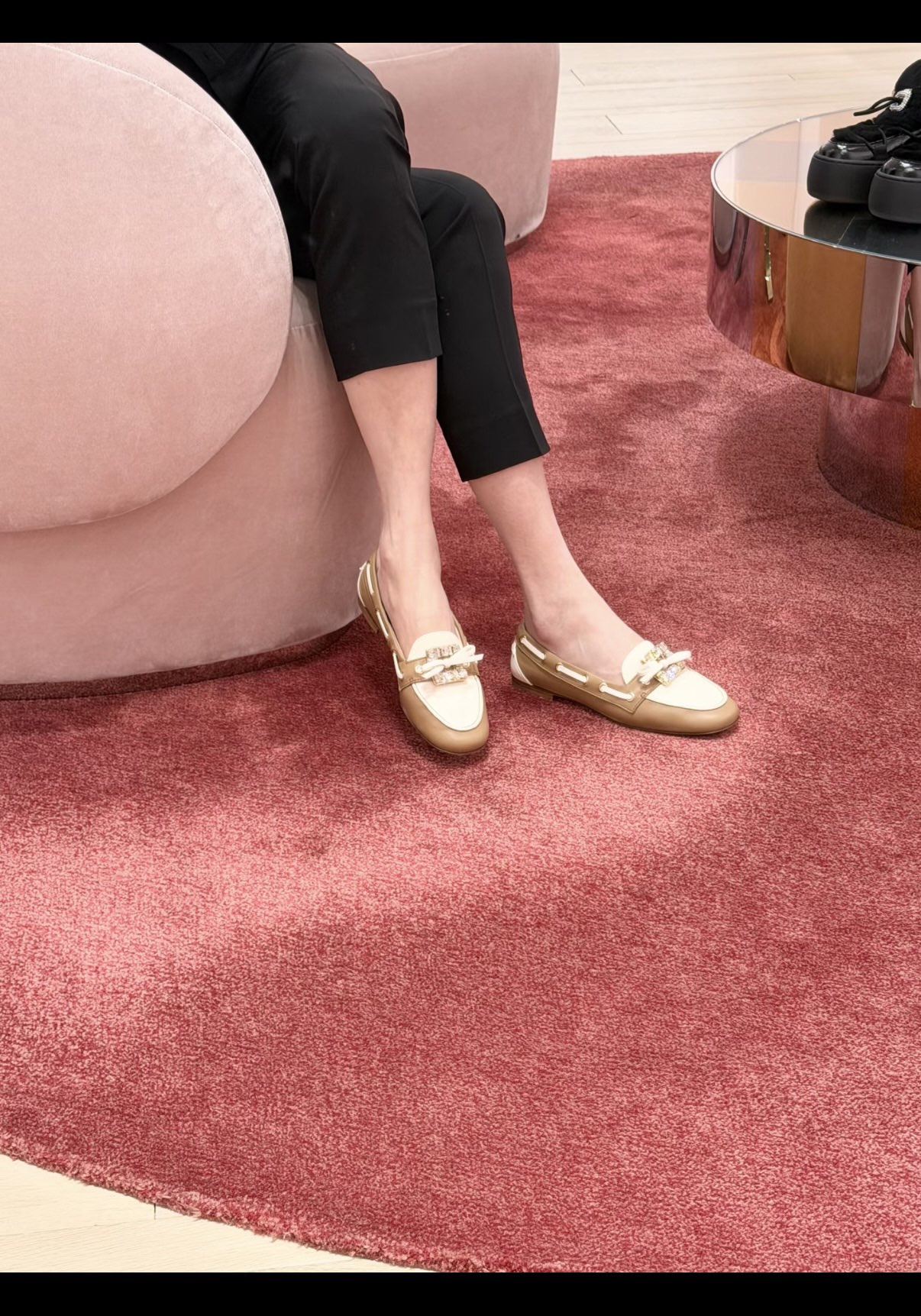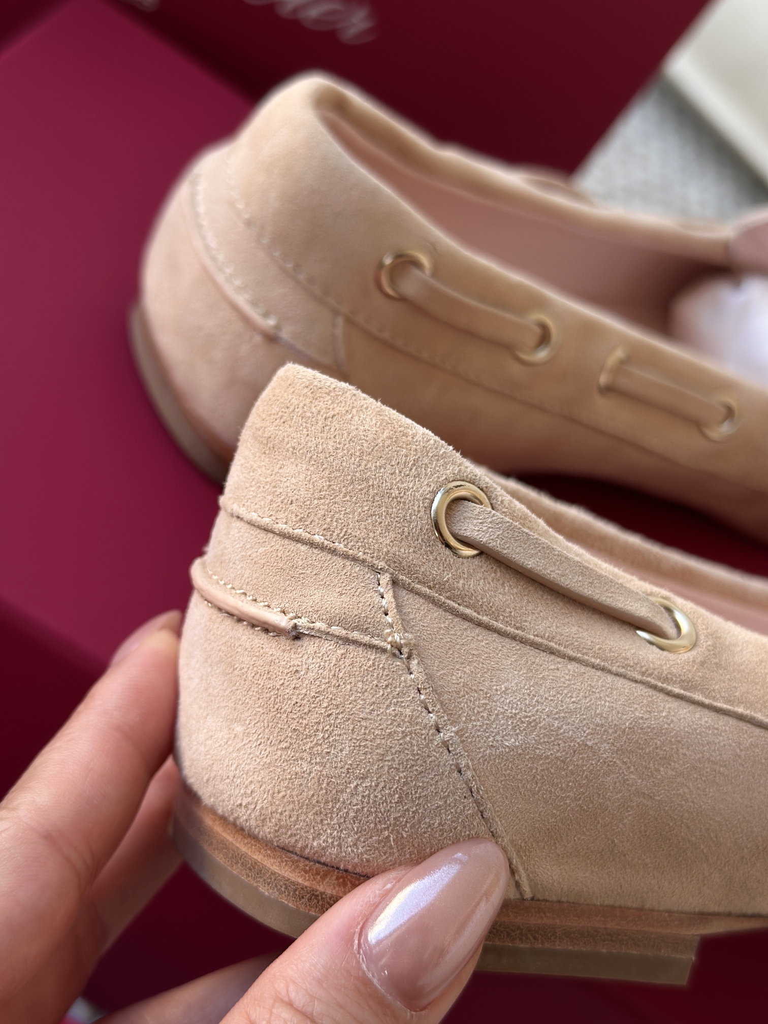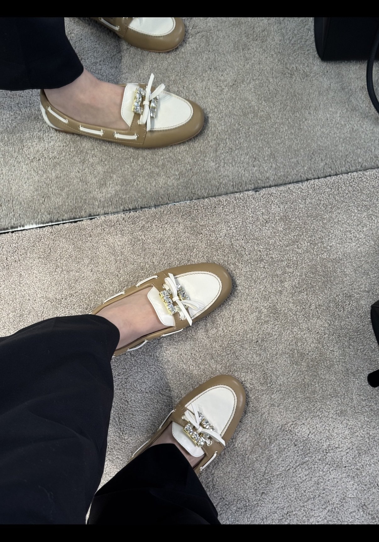 平时喜欢平底鞋的姐妹这双可以拿回去试一下!不是那种特别软的乐福,但是舒适度一样在线!搭配一些牛仔裤、半裙都超级好看! 鞋面采用原厂进口胎牛皮/麂皮 光泽度完美,内里垫脚进口羊皮,原厂真皮大底。