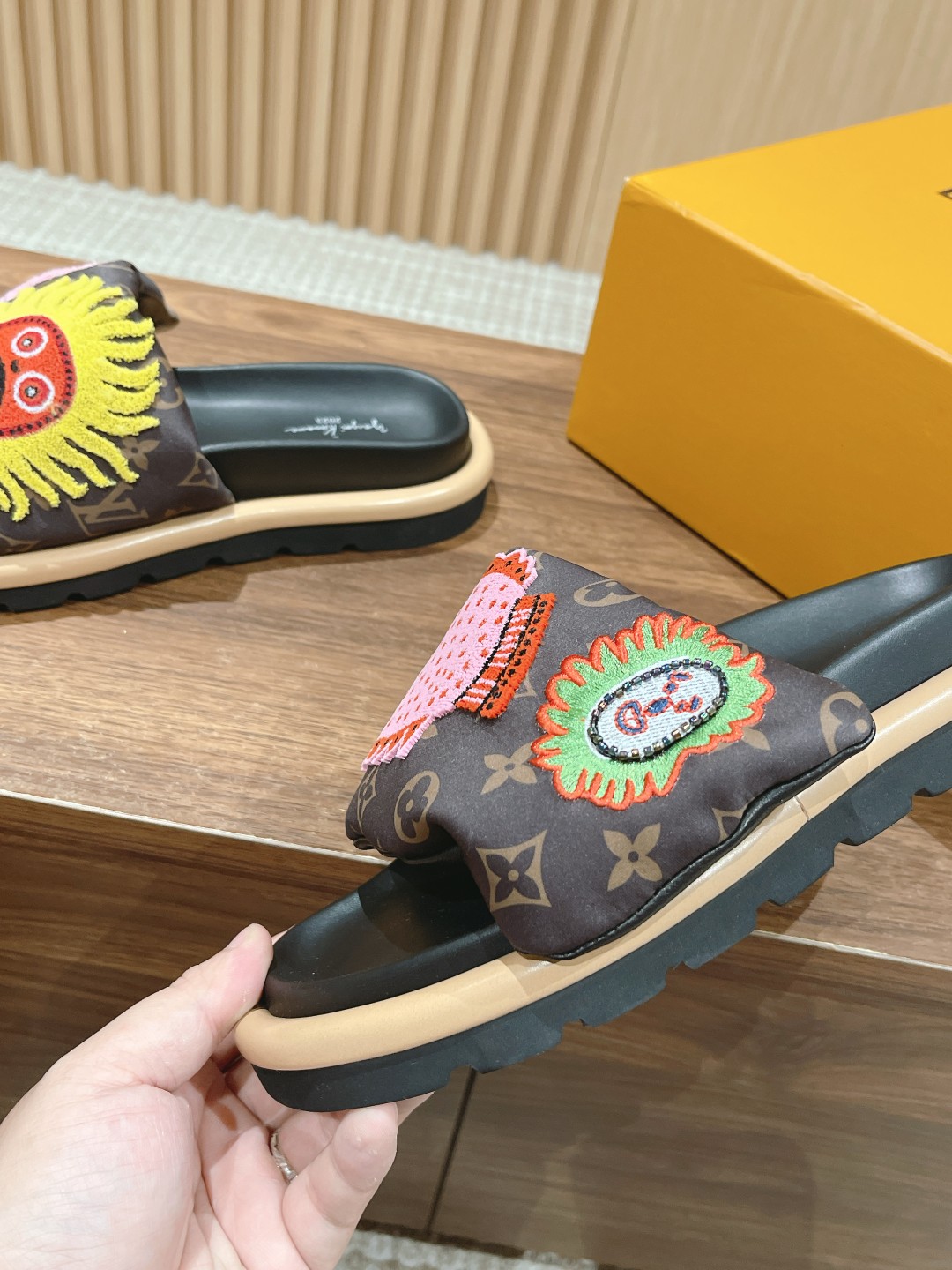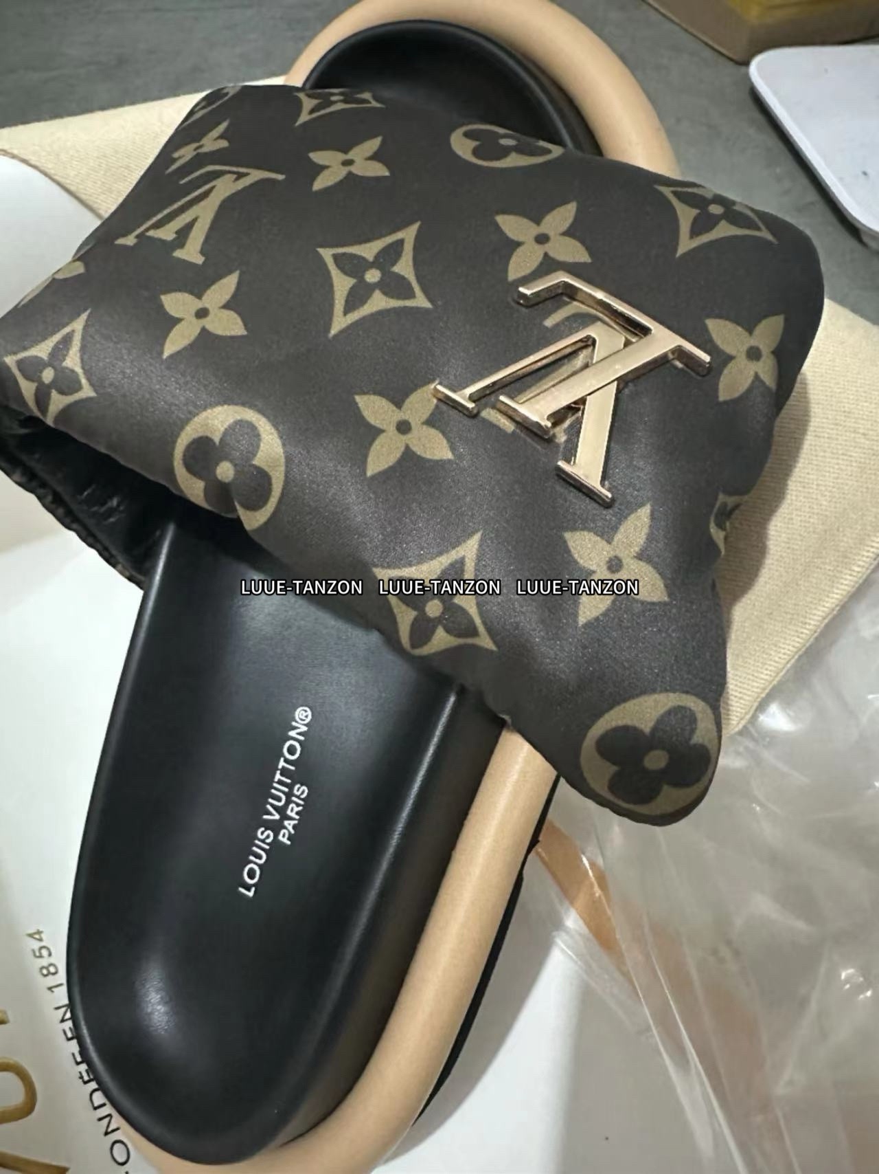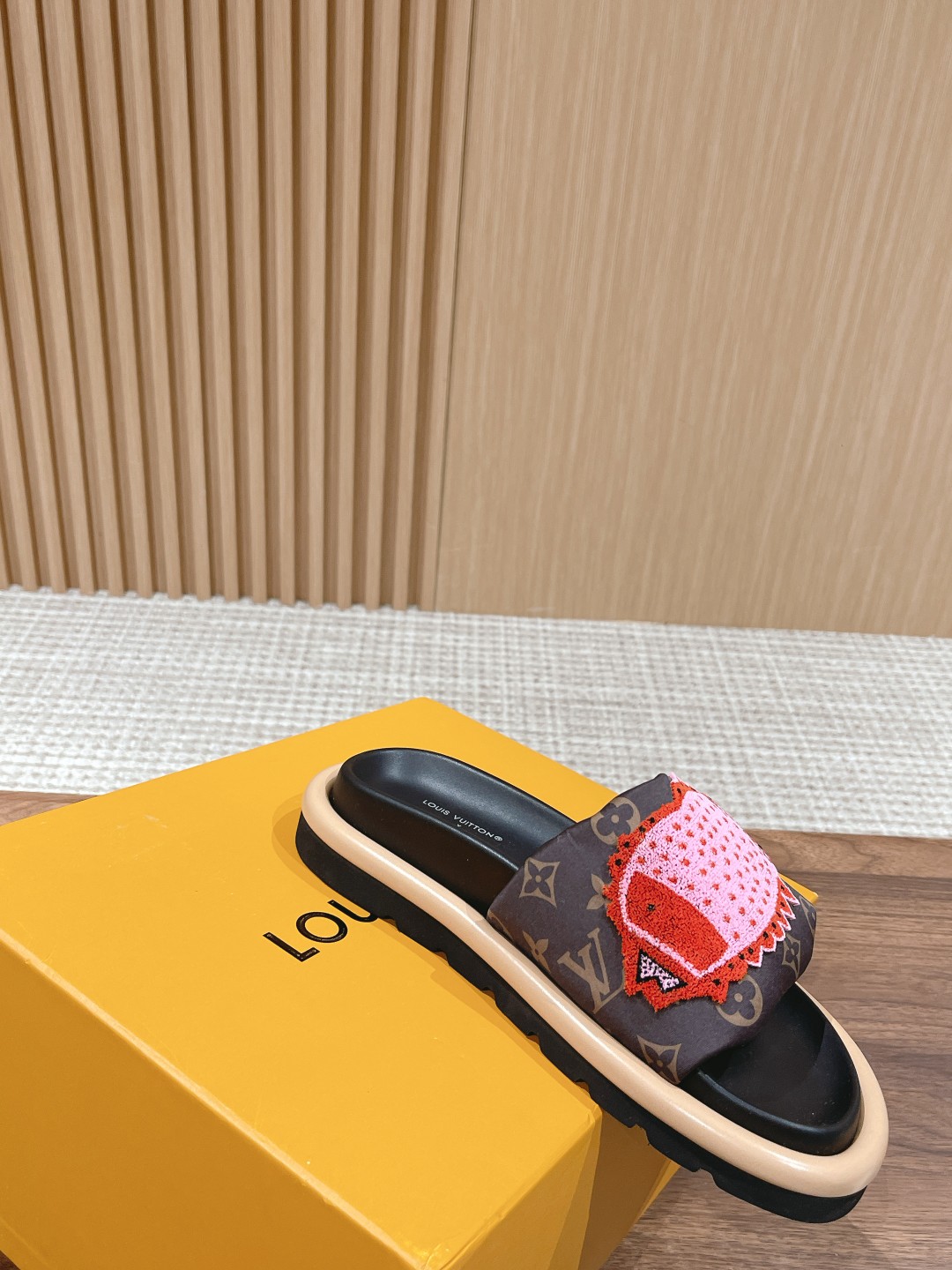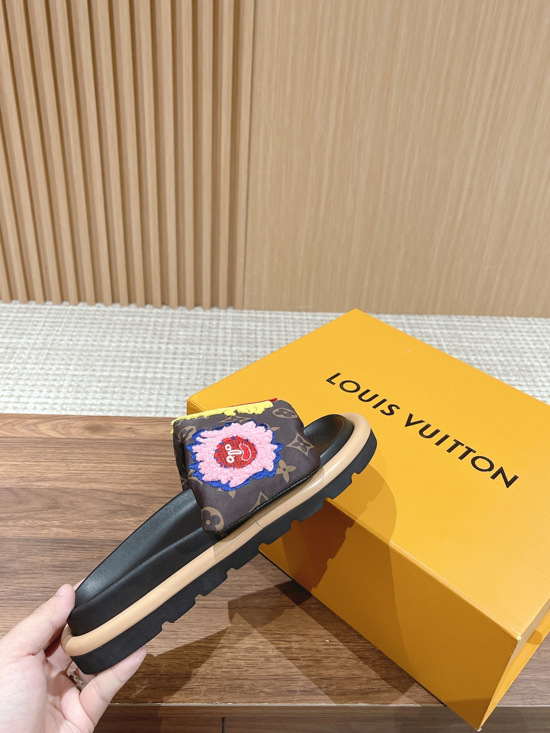 【正品只有3个配色】其它搭配均不知出处‼️请认准我家正品开发。 【注意 鹅绒毛填充为正品】 #Lv面包拖鞋 南瓜 5D打印 / 太阳款立体刺绣手工订珠