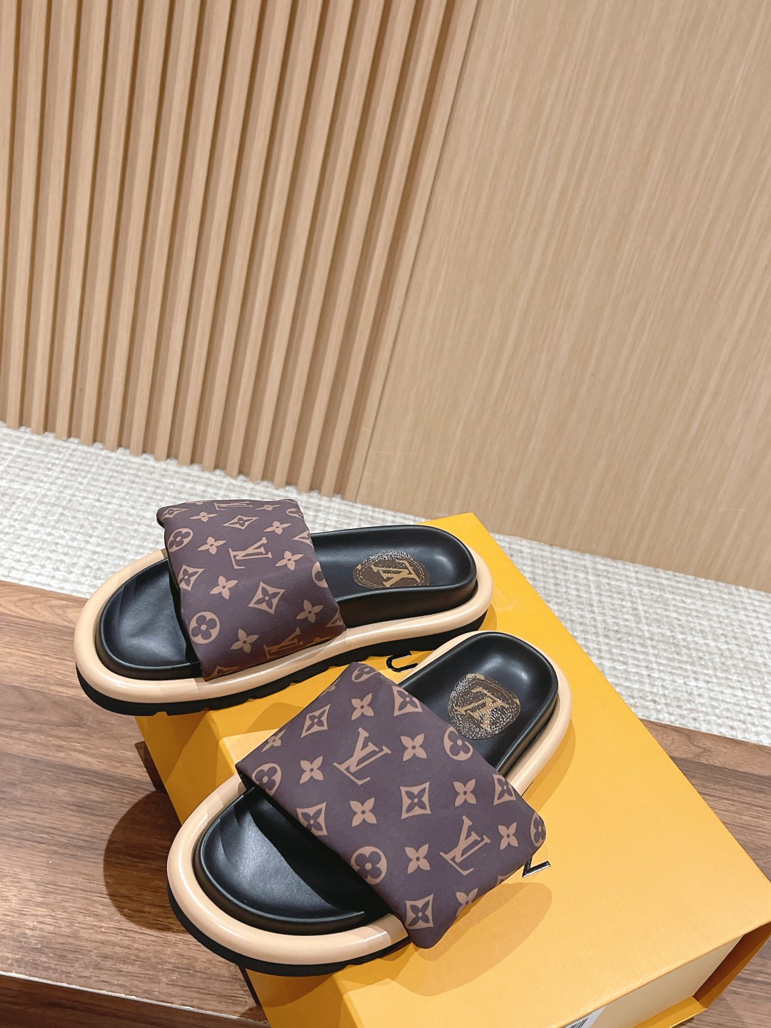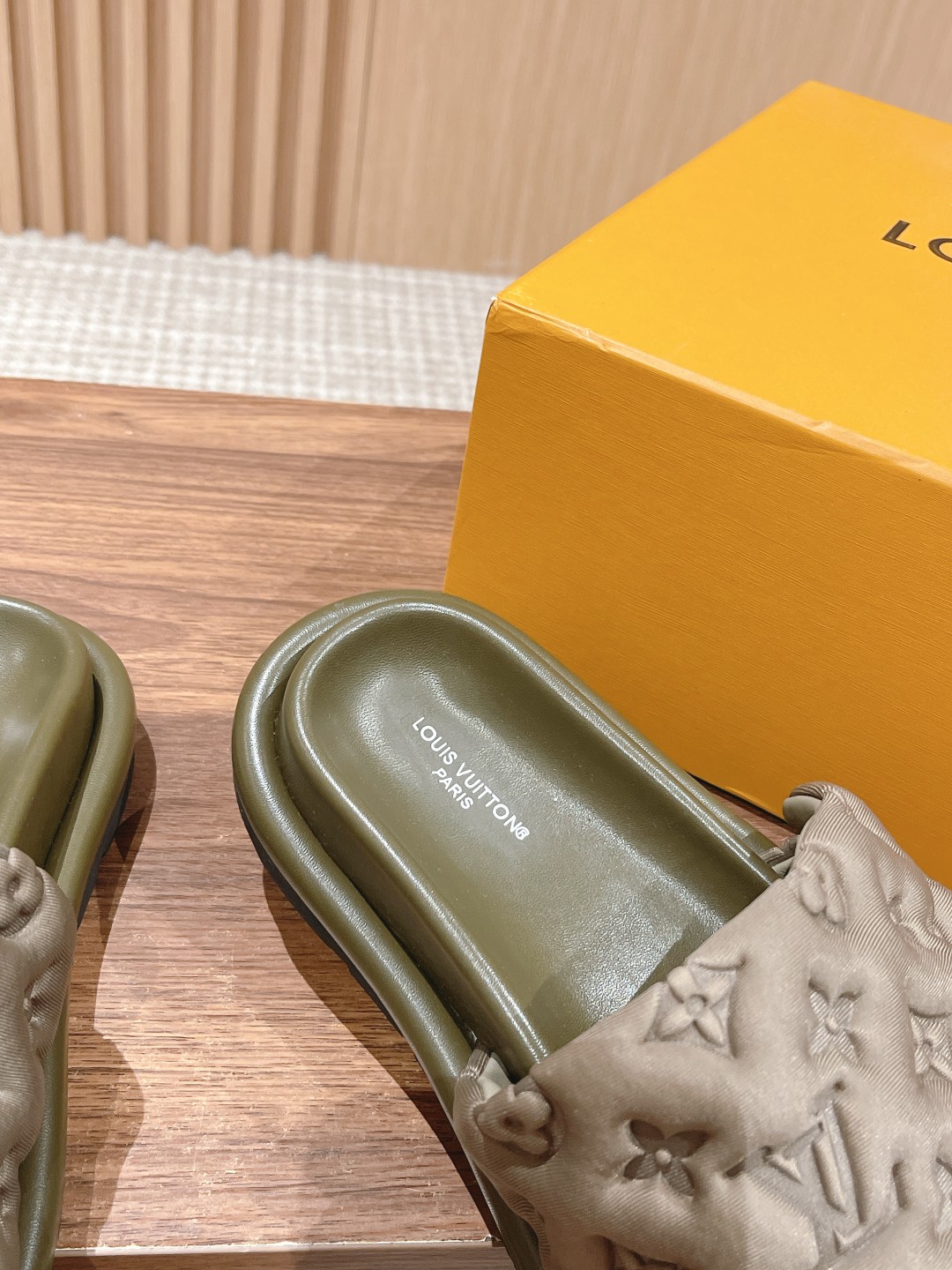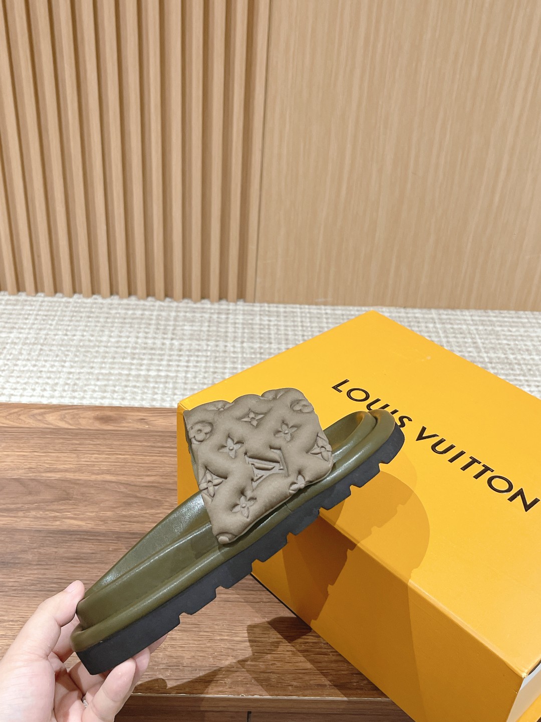 【正品只有3个配色】其它搭配均不知出处‼️请认准我家正品开发。 【注意 鹅绒毛填充为正品】 #Lv面包拖鞋 南瓜 5D打印 / 太阳款立体刺绣手工订珠