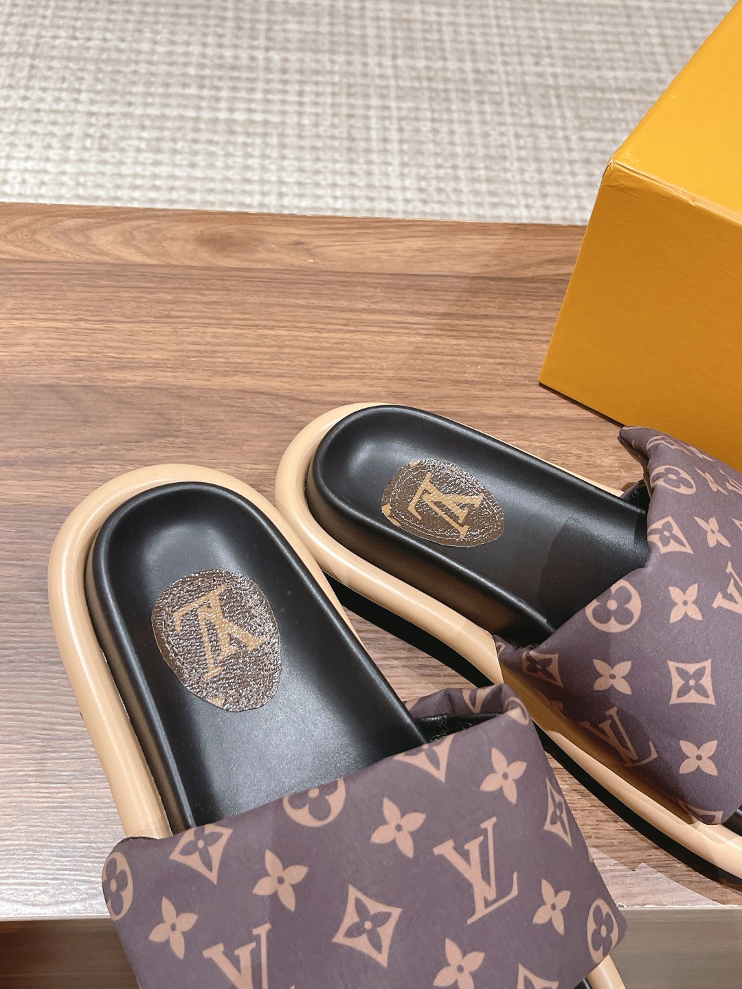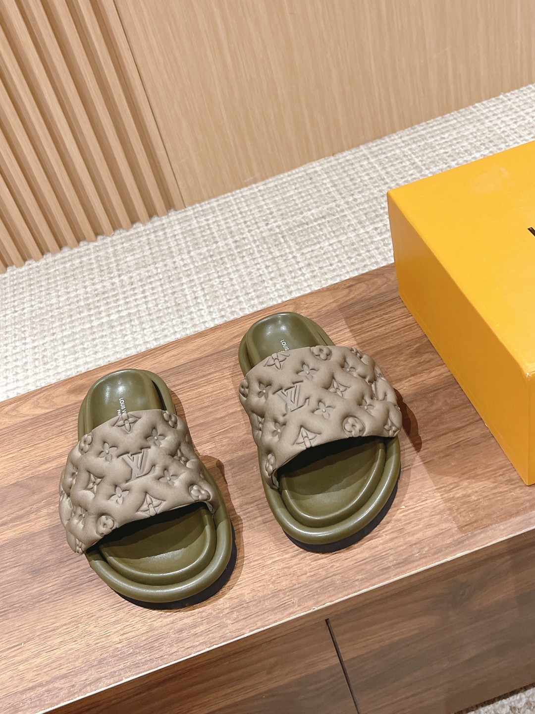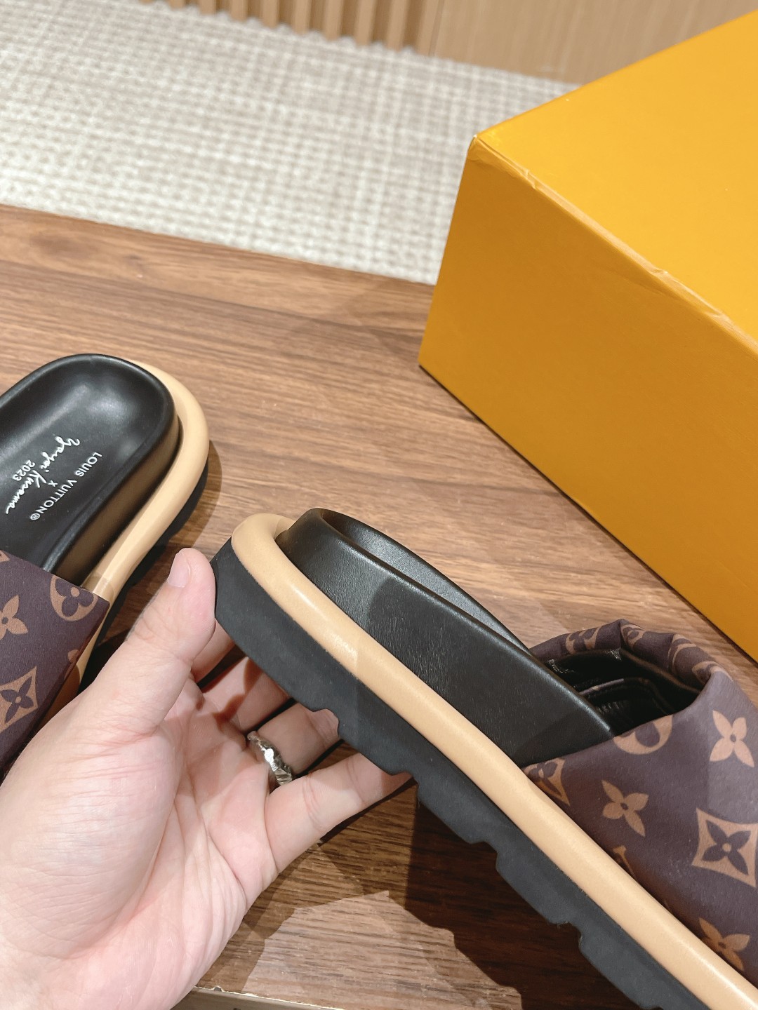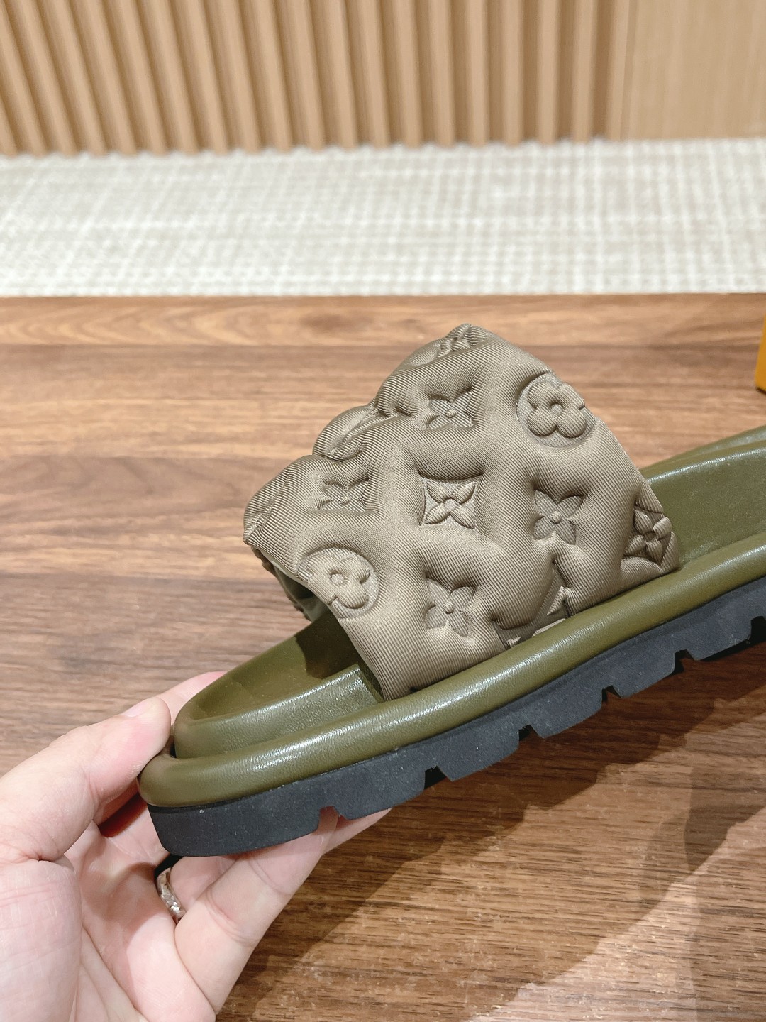 【正品只有3个配色】其它搭配均不知出处‼️请认准我家正品开发。 【注意 鹅绒毛填充为正品】 #Lv面包拖鞋 南瓜 5D打印 / 太阳款立体刺绣手工订珠