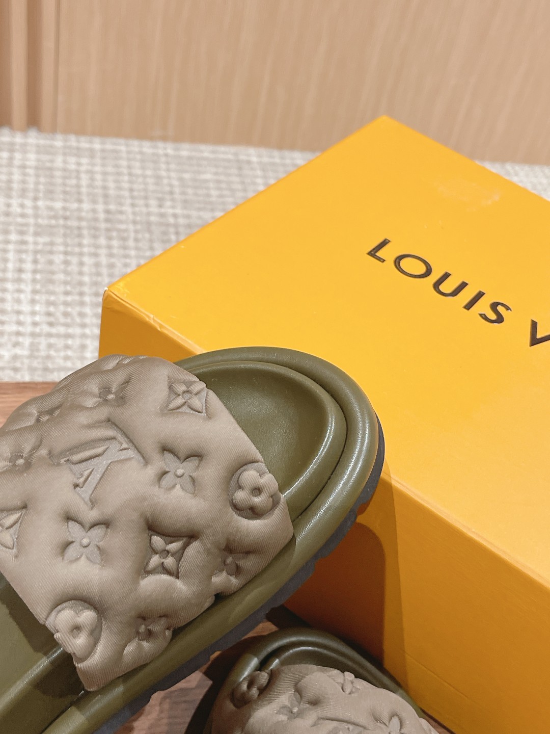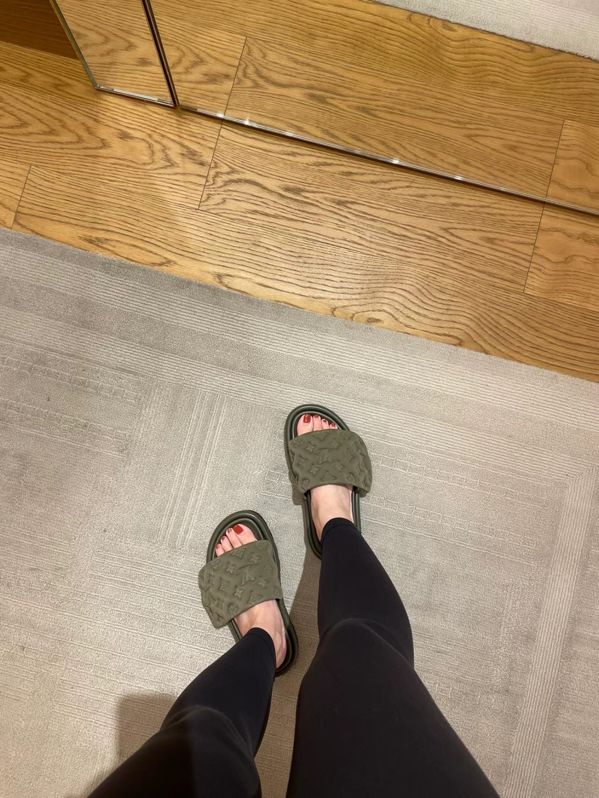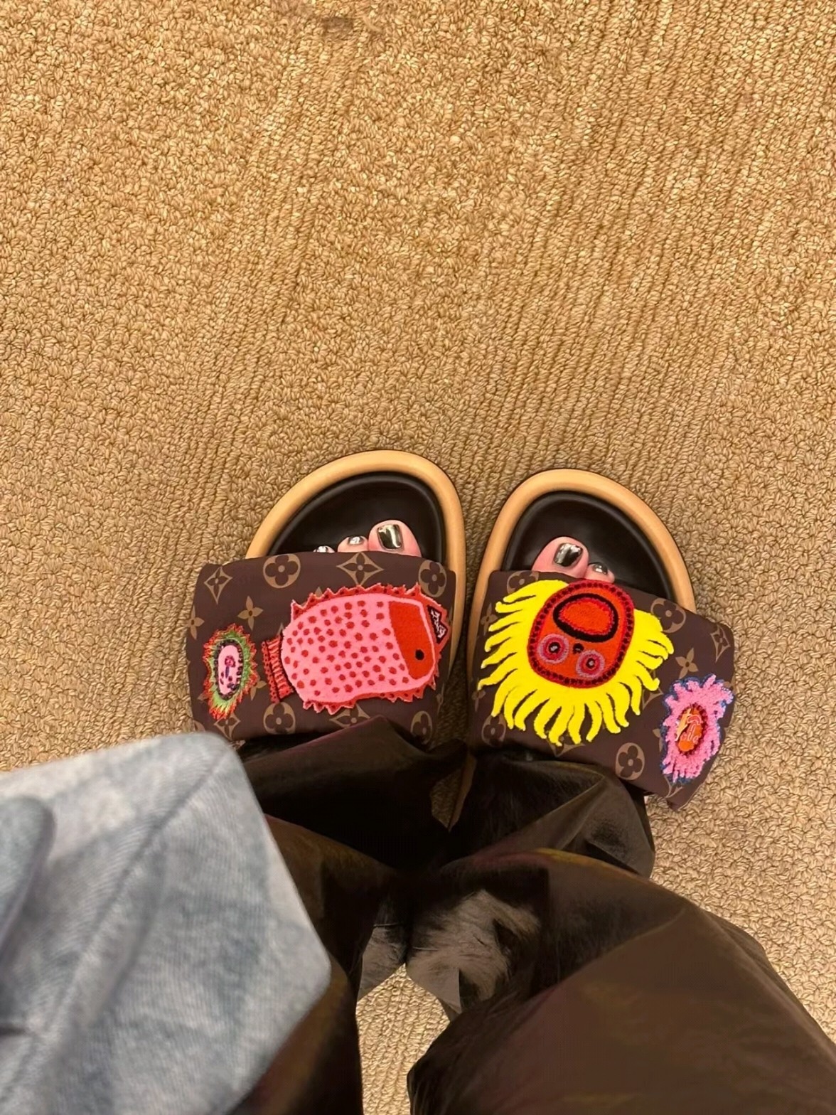 上脚效果太可了,无美颜无滤镜颜色超正,色彩饱 和度超赞 脚感也很舒适,又轻又软,爱惨了 #LV草间弥生系列拖鞋;