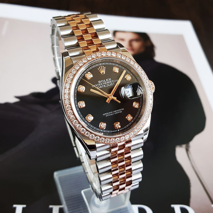 【95新】ROLEX 劳力士126281RBR-0007天文台认证自动机械机芯日期显示36MM(中性款)日志型系列蚝式钢/18k玫瑰金表圈镶嵌原厂钻石120226AK47
