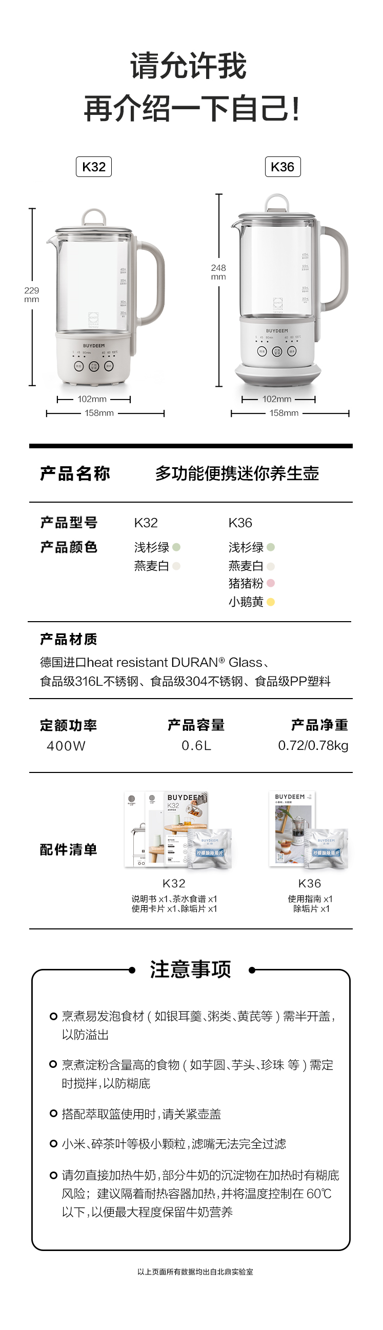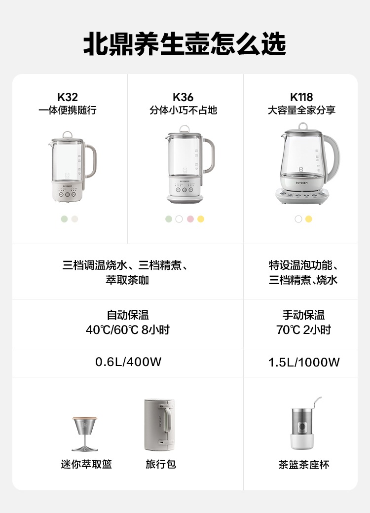 北鼎养生壶 家用多功能办公室小型一人煮茶壶迷你煮茶器K36&K32