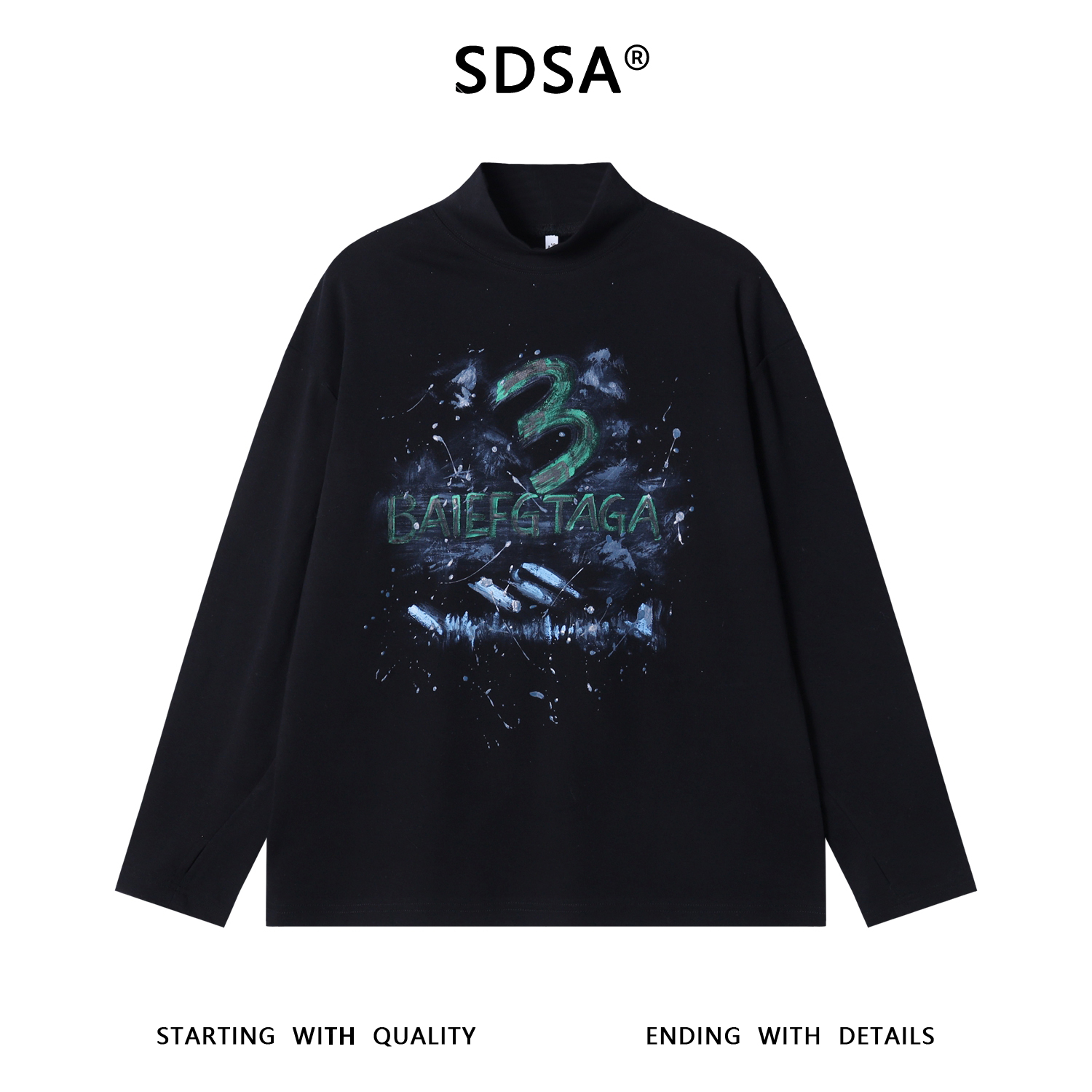 T4985SDSA秋冬新款痞帅男装泼墨手绘字母印花半高领长袖T恤百搭时尚潮