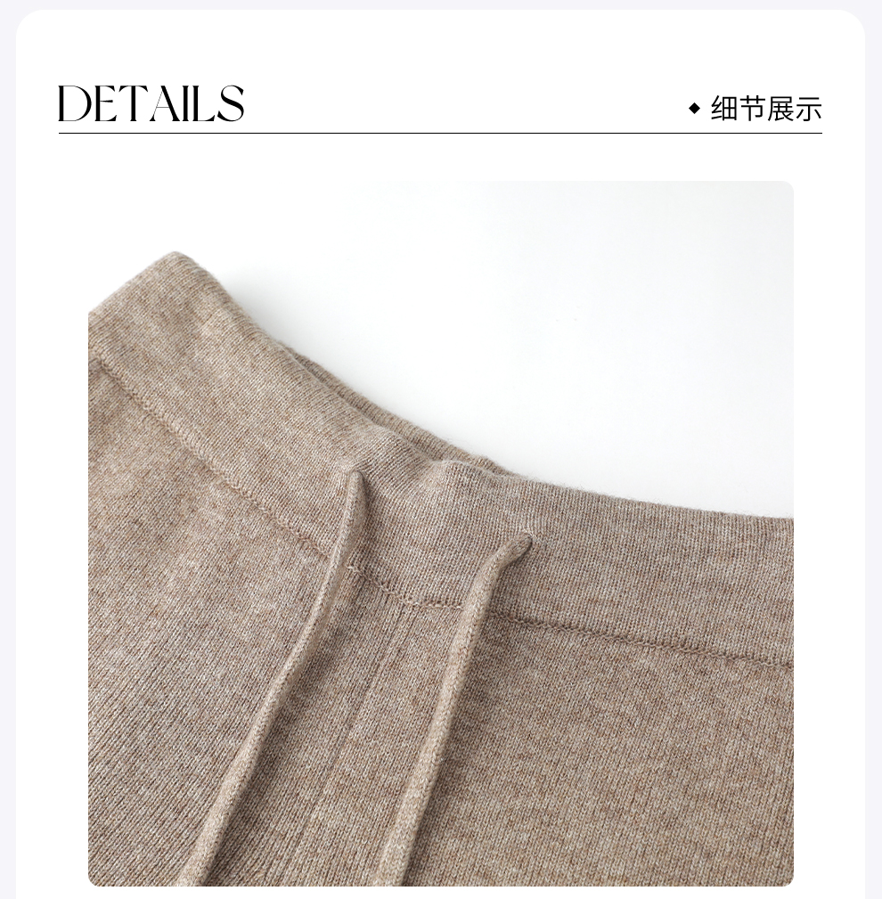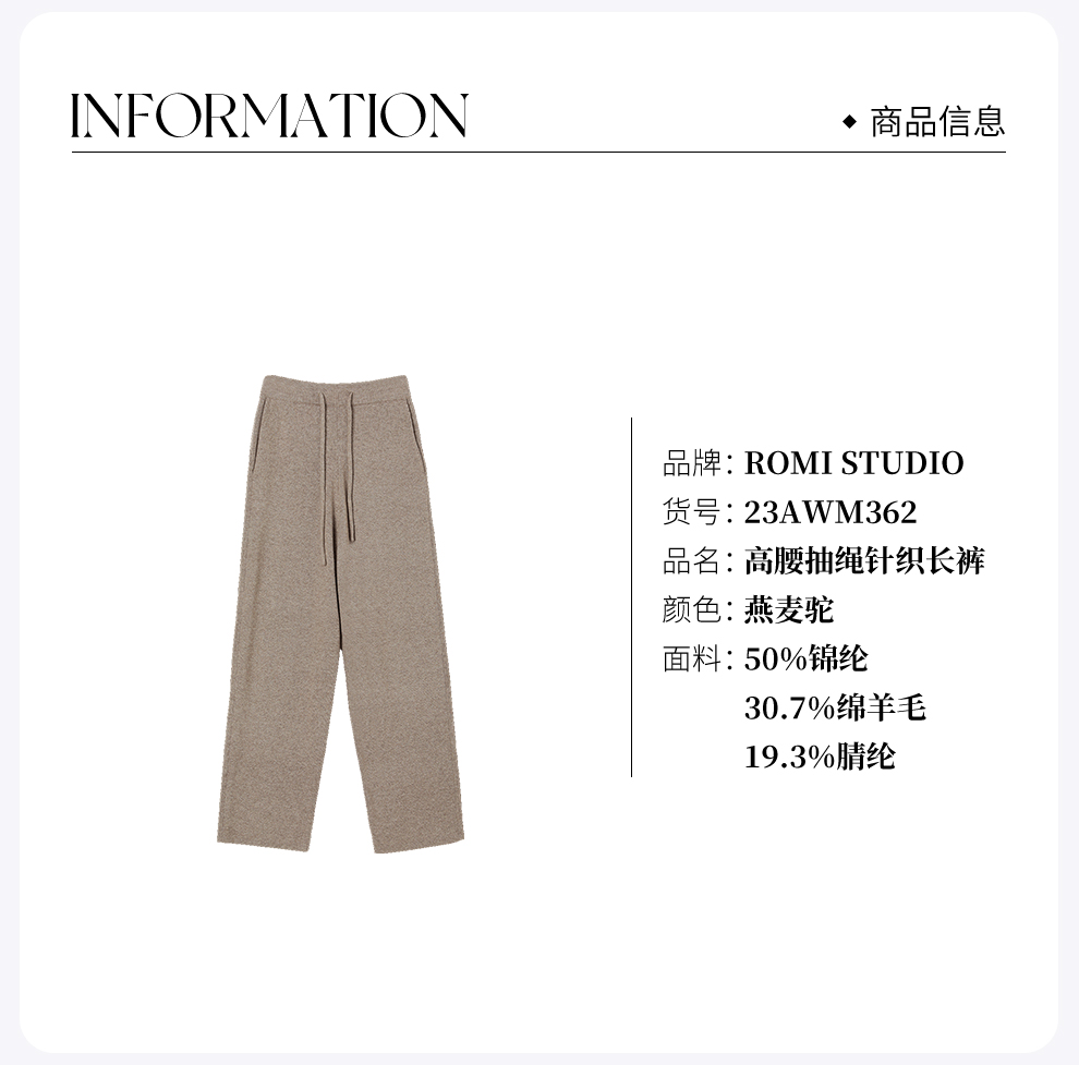 ROMI STUDIO“松弛高知”精纺羊毛高腰抽绳燕麦驼针织长裤23AWM362