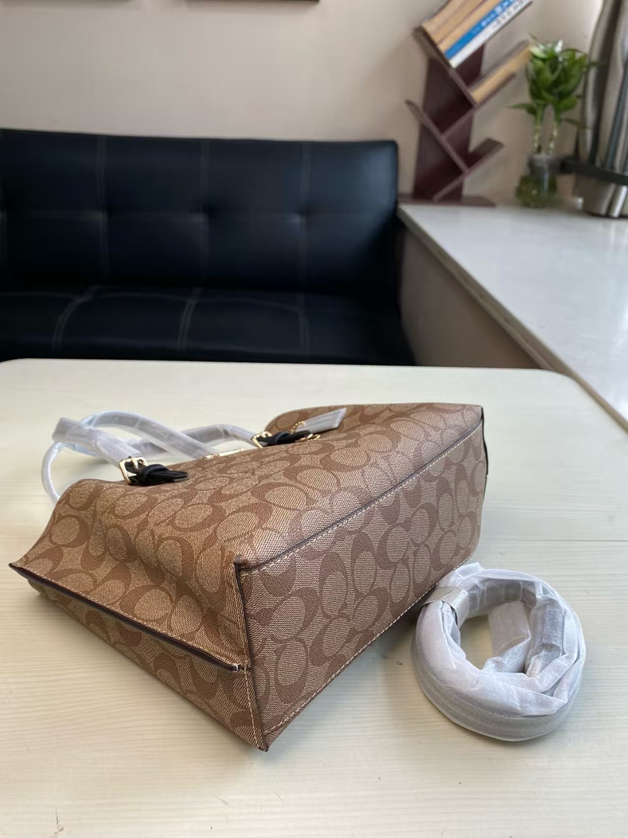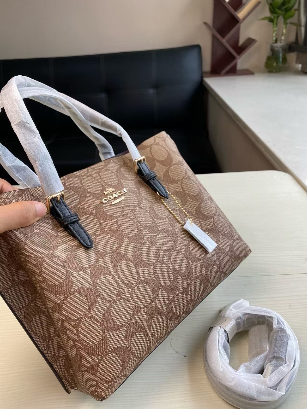 COACH蔻驰 Mollie 25 金属Logo标志性徽标压印吊饰 人造革 托特包Tote包购物袋单肩斜挎手提包 女款 棕色老花(CB)