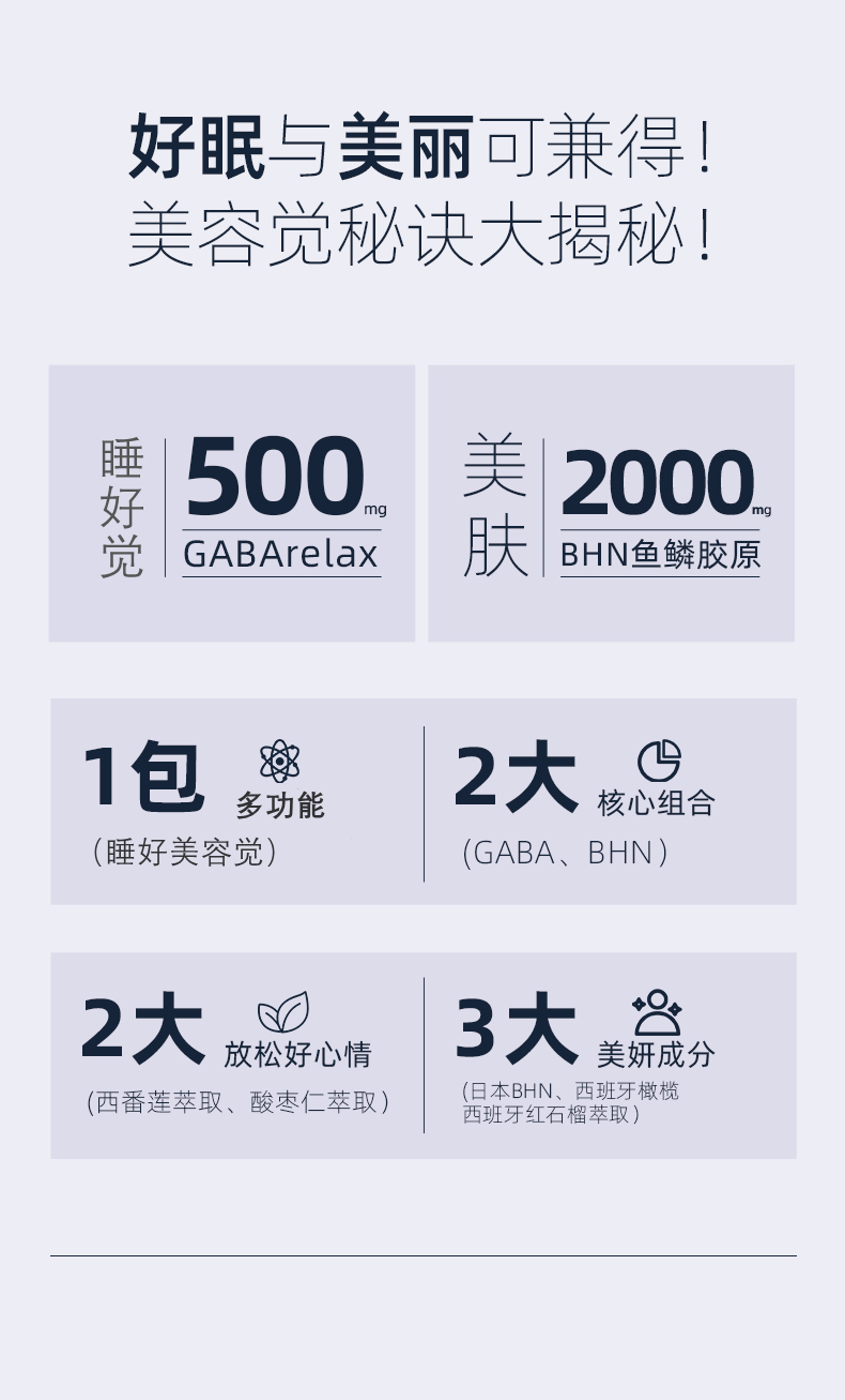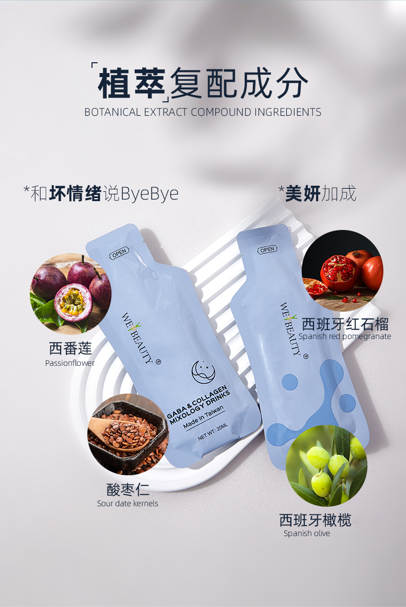 唯美的GABA晚安饮胶原肽液态饮 小分子肽 晚安放松气色