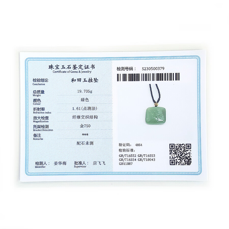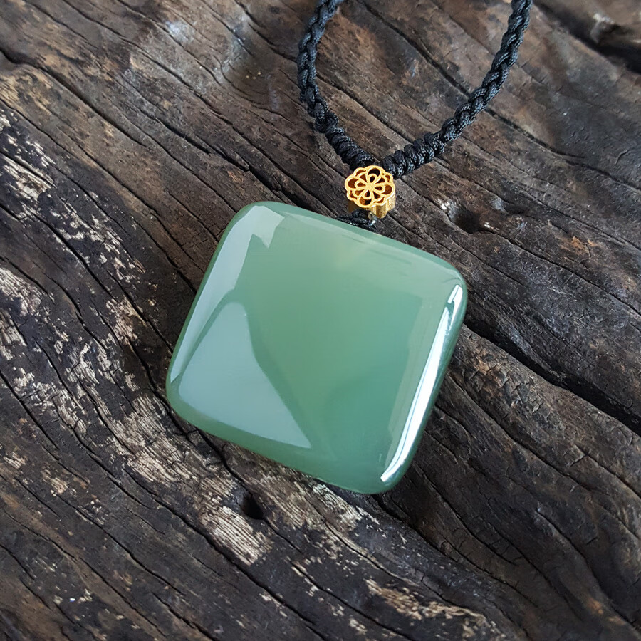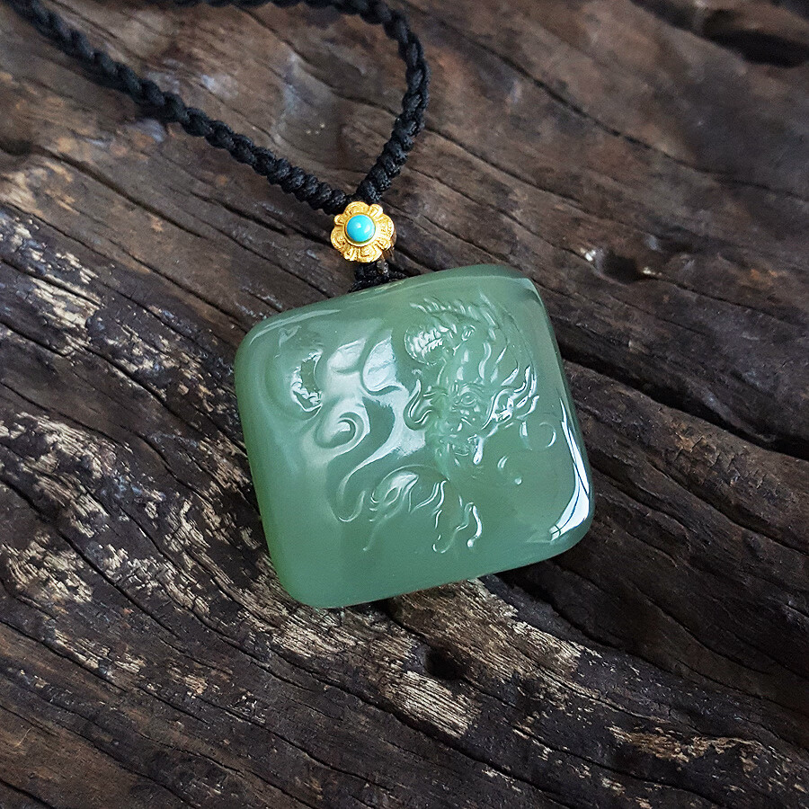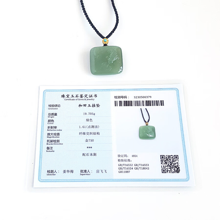 【天然正品】AU750黄金镶天然猫眼粉青料飞龙图案无事牌(飞黄腾达、吉祥)和田玉吊坠项链090523NJ12