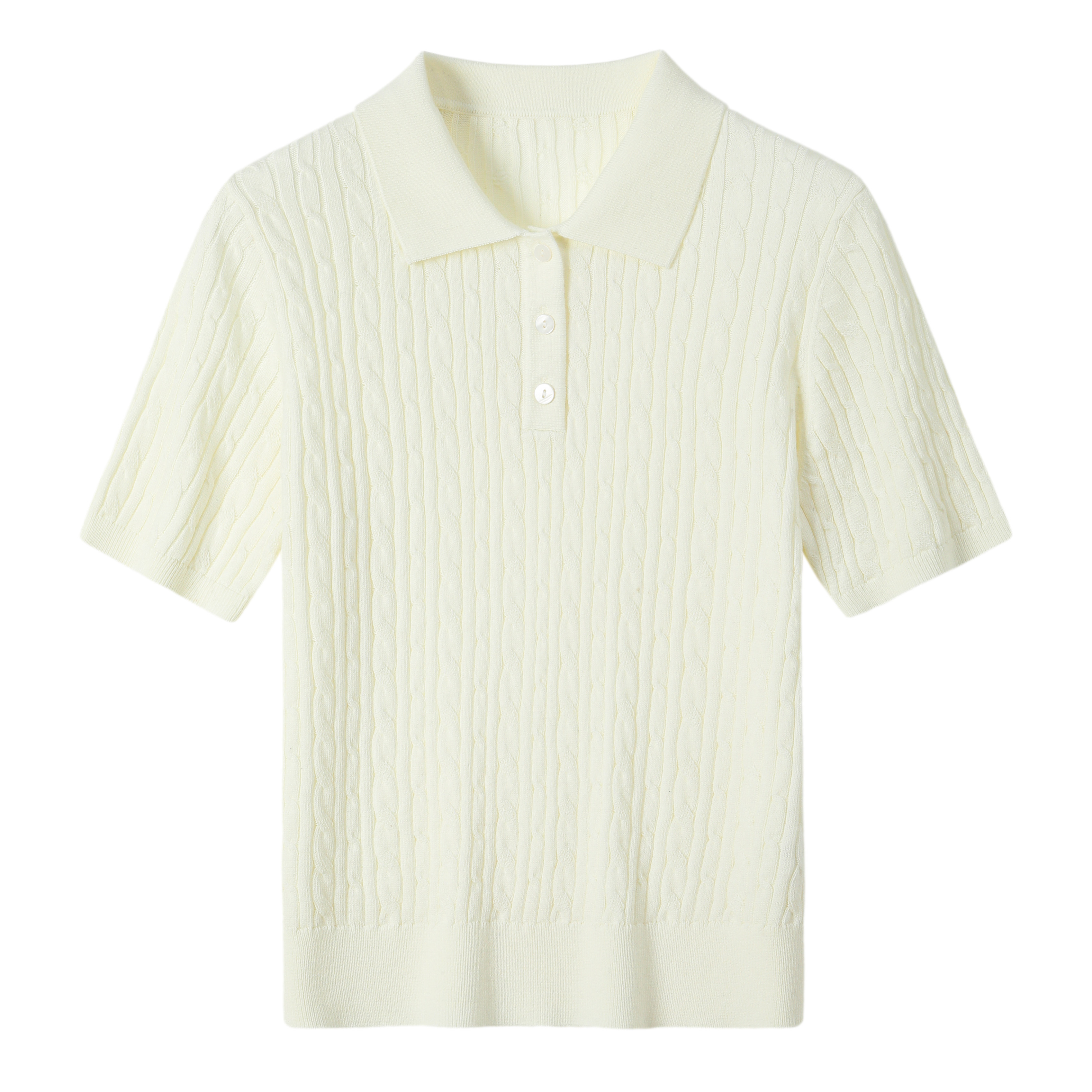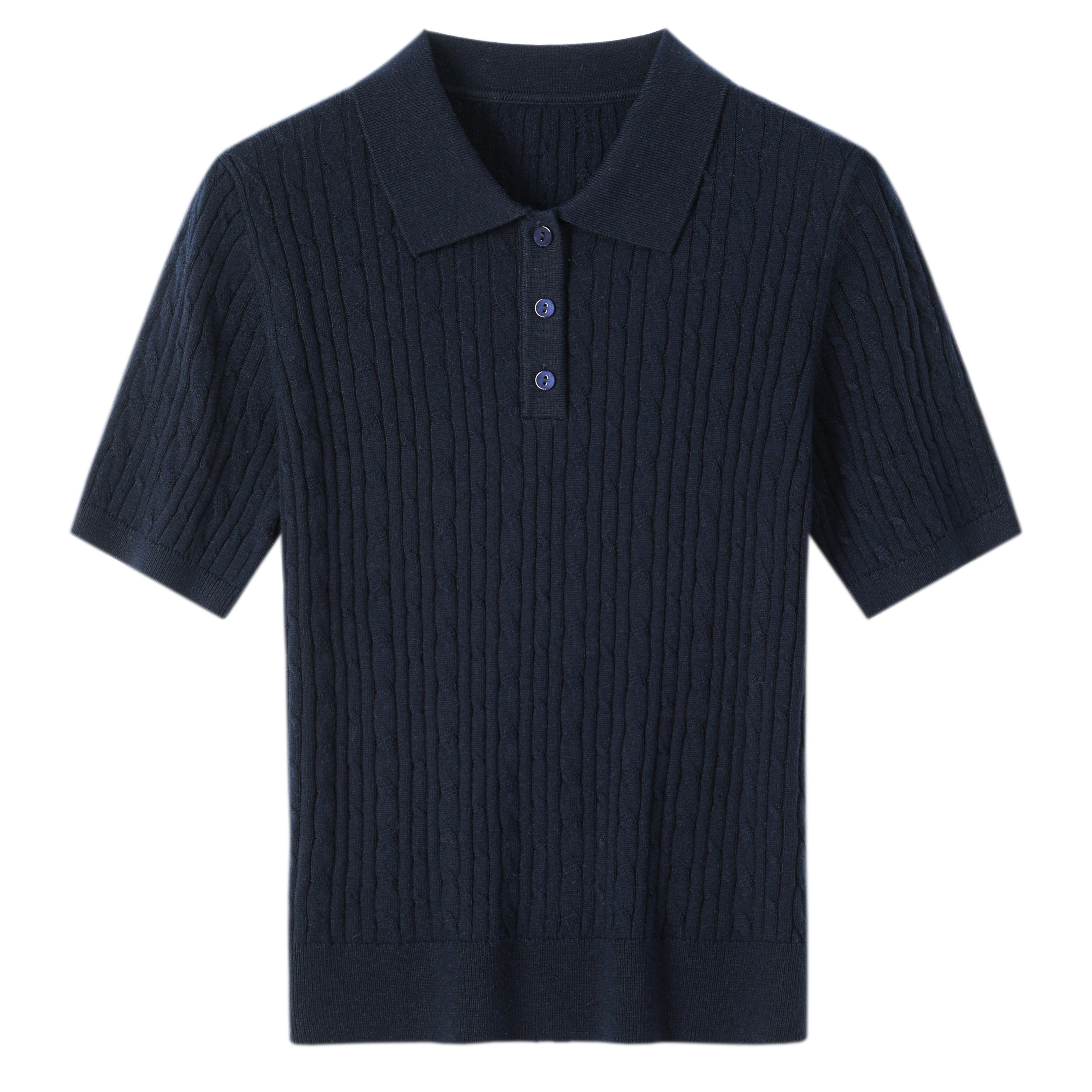 【门店同款】法式POLO领绞花针织短袖女春夏修身短款毛衣上衣