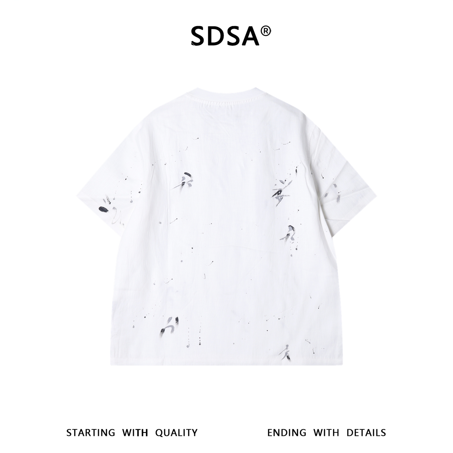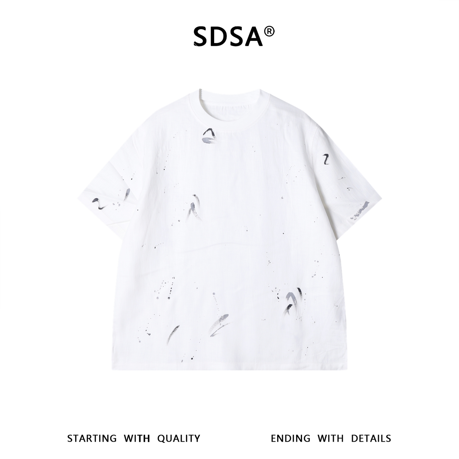 SDSA男装2026新款高贵轻奢潮牌撞色泼墨印花圆领短袖T恤百搭宽松