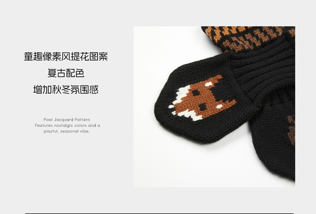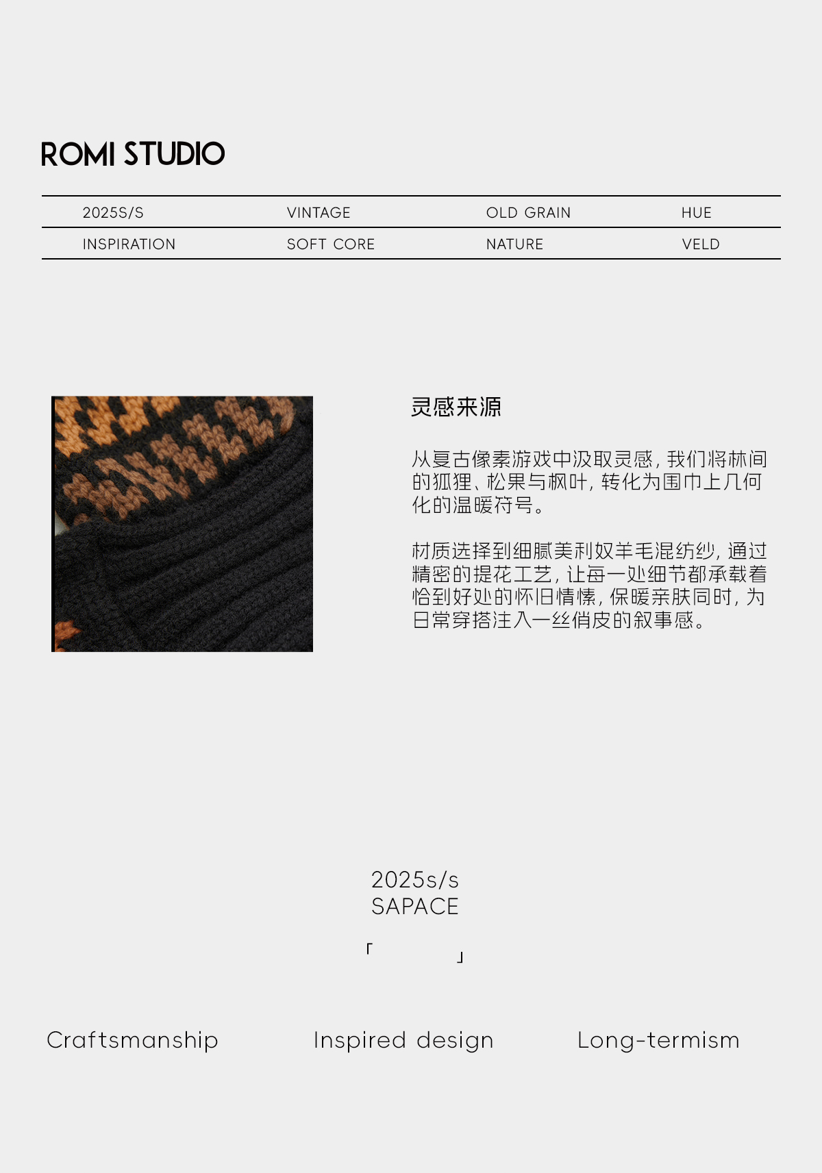 ROMI STUDIO“温暖优雅”美利奴羊毛针织复古像素风围巾 RWCWPU6732