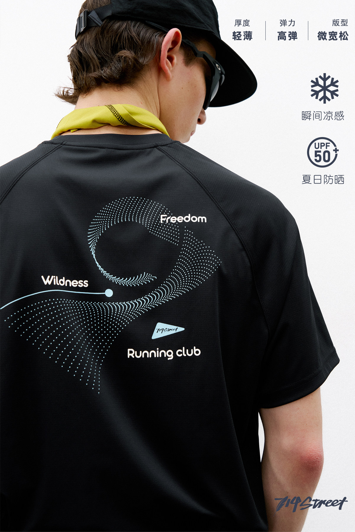 714street四面弹拼接短袖T恤男夏季轻薄打底衫凉感速干防晒运动衣