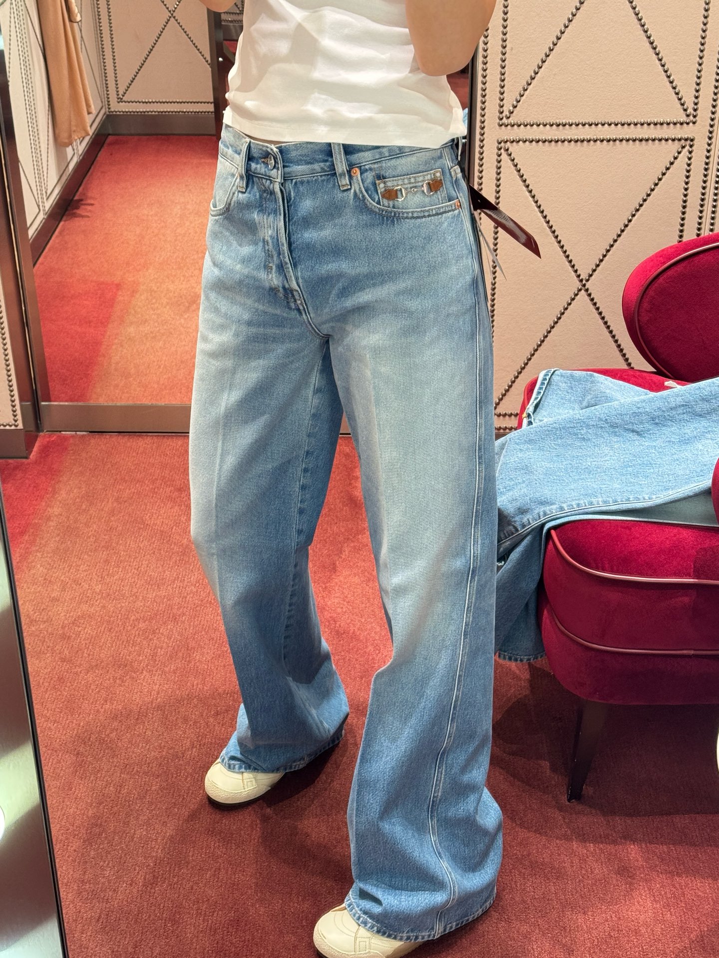 新品 马衔扣牛仔裤,一眼相中的百搭设计,时髦人士衣橱必备,采用石磨漂白水洗工艺,棉质丹宁面料自带细腻肌理与自然垂感,口袋处点缀皮革马衔扣,巧妙融合复古与街头气息,瞬间提升整体造型的酷感层次😉剪裁利落,长度恰到好处,视觉拉长腿部线条‼️版型经反复调试,对胯宽、大腿部位具有出色修饰效果,穿上显瘦藏肉,轻松穿出纤细笔直腿型😜兼顾实穿度与设计感,从日常穿搭到风格街头,一件轻松驾驭,码数SML
