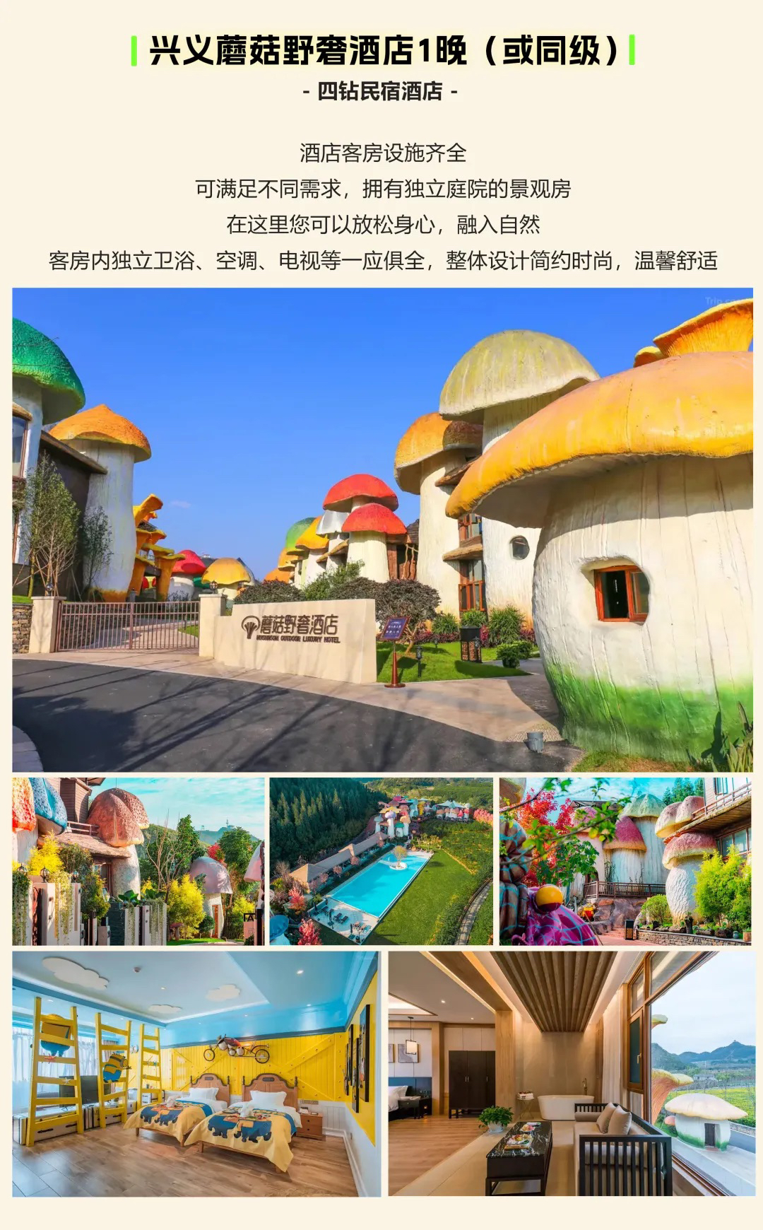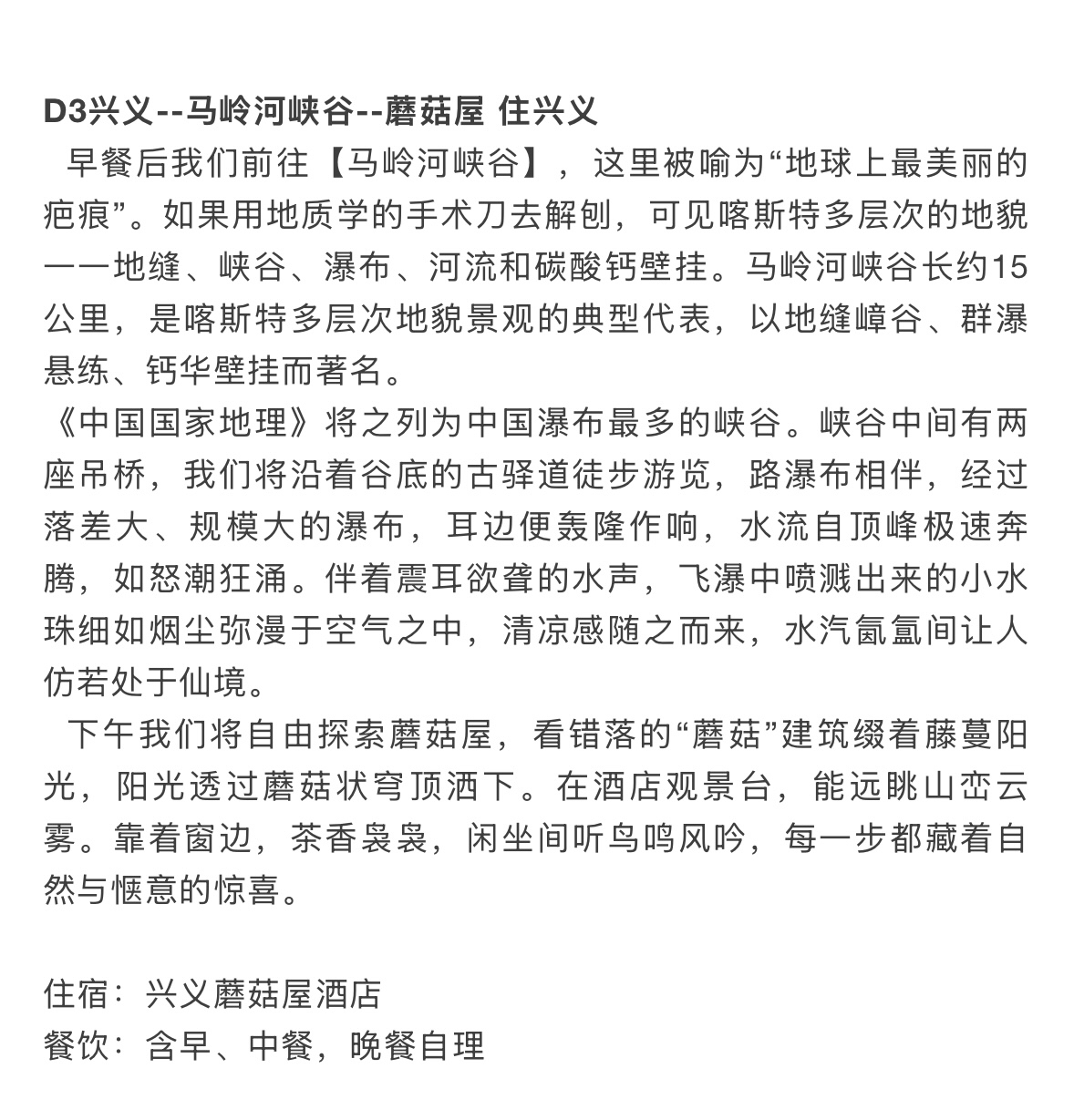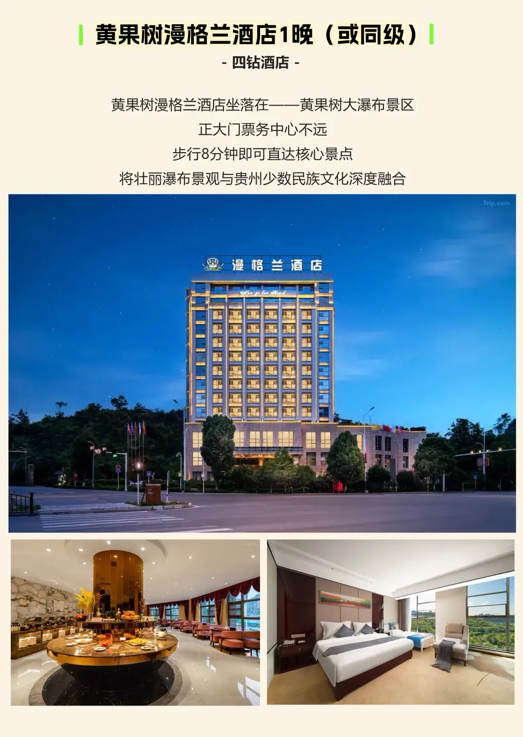 【住宿】全程优选携程4钻及以上酒店(参考酒店:贵阳水投上善酒店1晚,兴义蘑菇野奢酒店1晚,兴义苗阿祖酒店2晚,黄果树漫格兰酒店1晚,无房更换为同级)