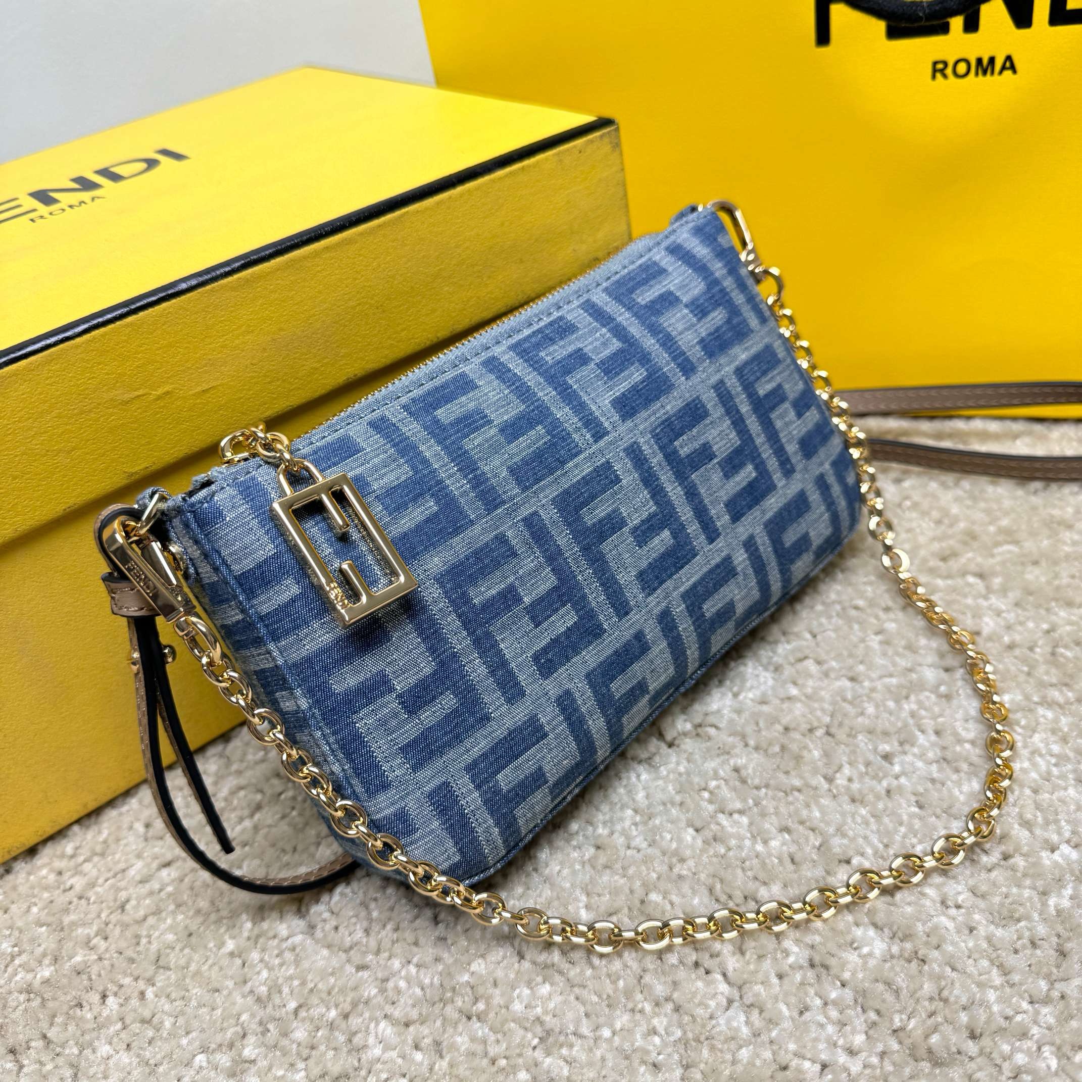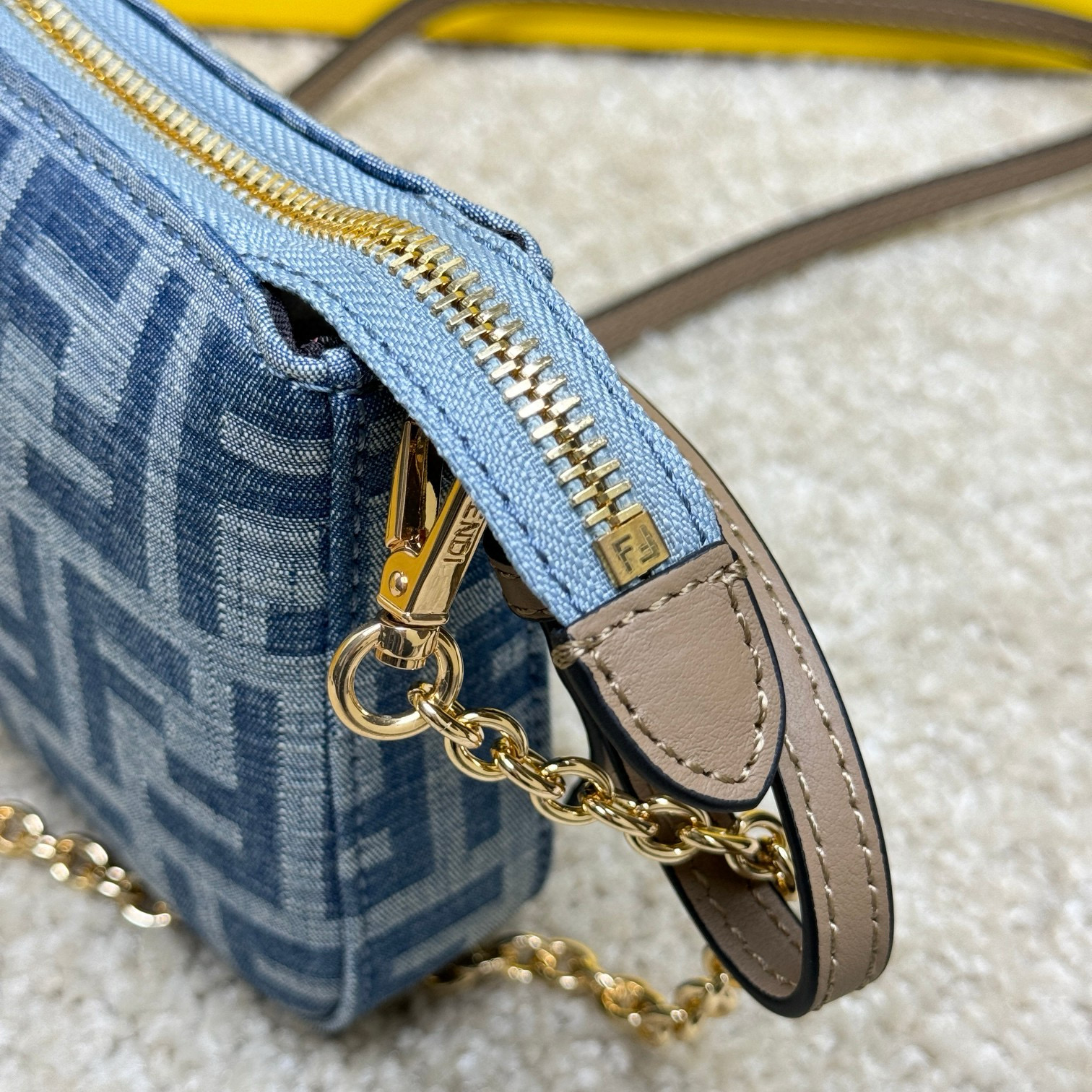 芬迪fendi丹宁款牛仔老花麻将包链条包来啦,新晋大热门,两种肩带自带两款风格,小小的麻将包,大大的容量,我真是爱死了,按头安利。