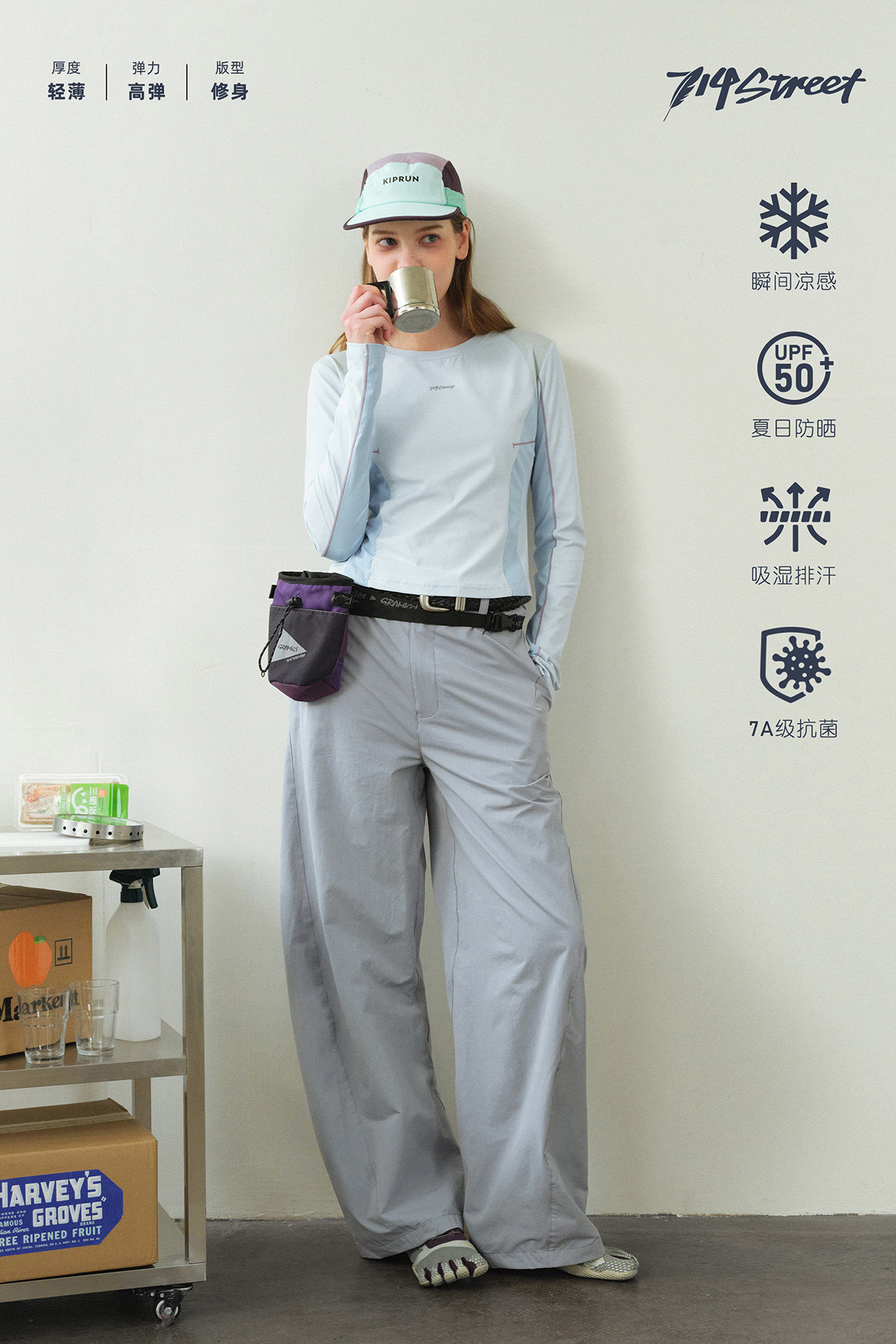 714street撞色防晒速干衣7A抗菌运动长袖2026春季轻薄印花T恤女
