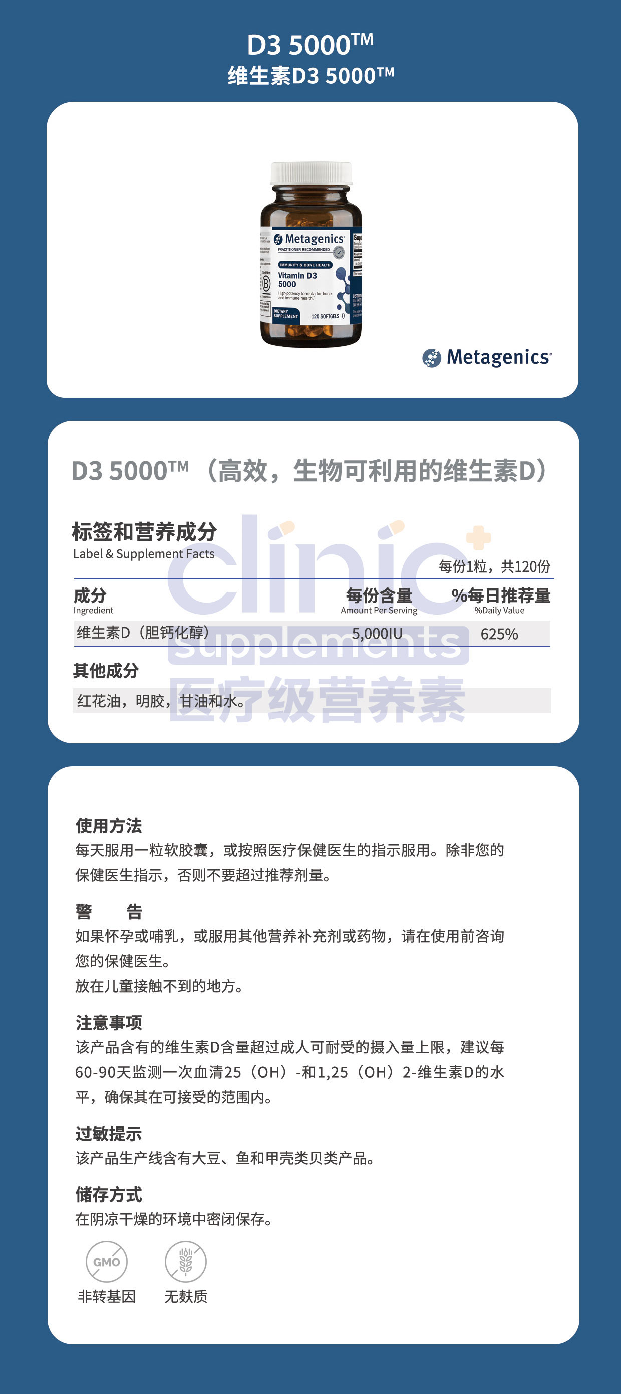 MetagenicsVitamin D3 5000 120粒 原名称 D3 5000™ 120粒【效期2026年9月底】
