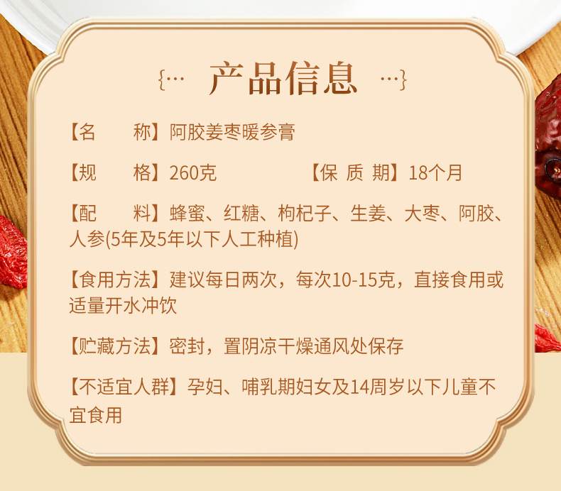 【单济堂阿胶姜枣暖参膏】【官方正品】纤木芸舒补堂阿胶暖参身膏