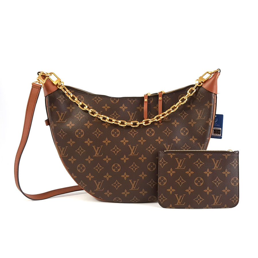 【98新】LV路易威登LOOP HOBO手袋M46311老花拼色款LOOP HOBO大月亮单肩斜挎包女士230226NJM01