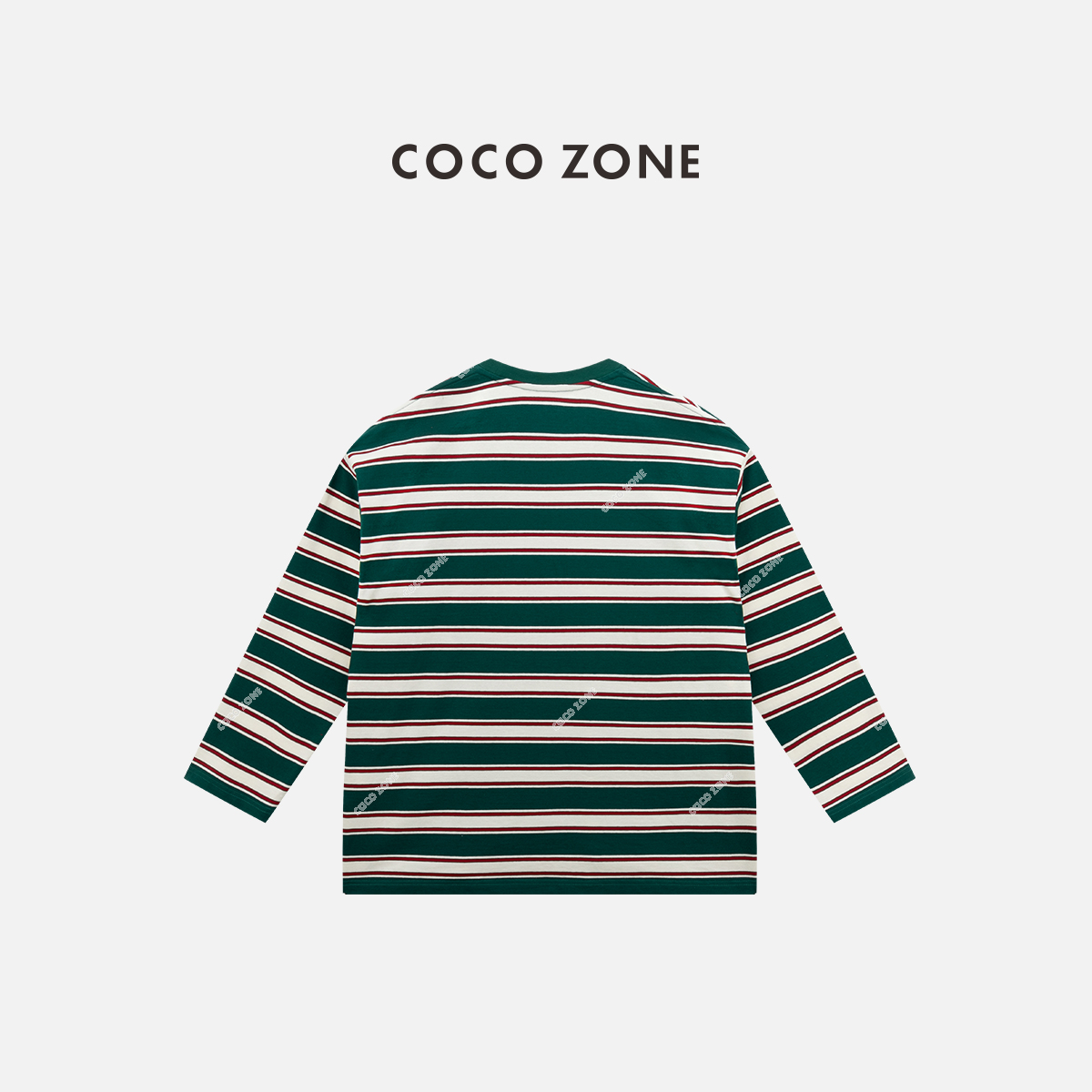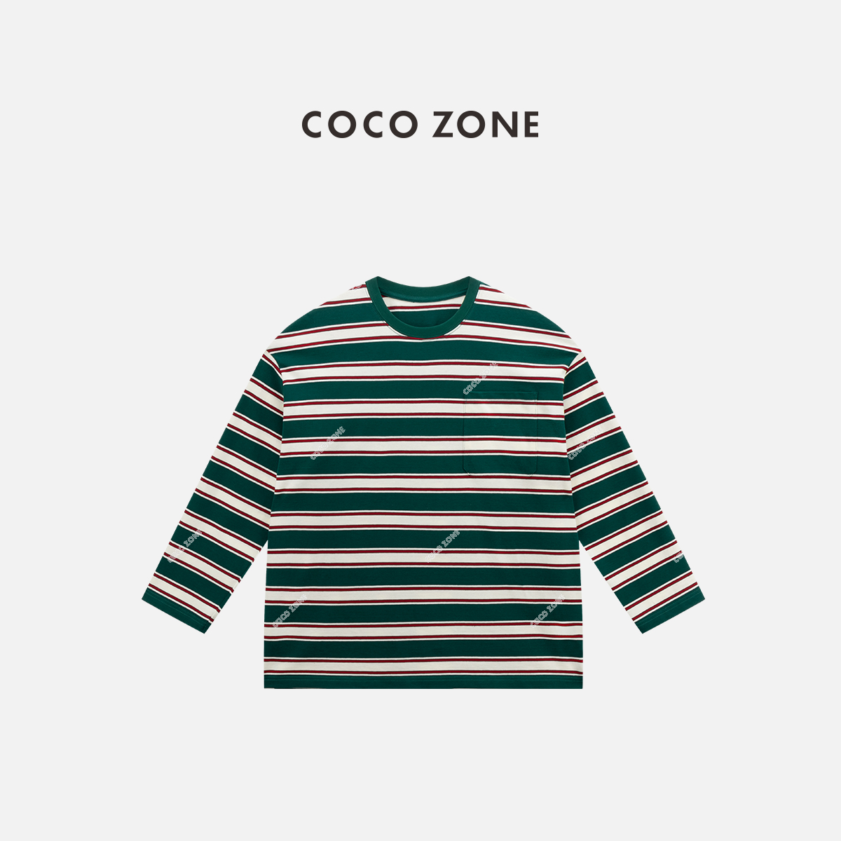 COCO ZONE 100棉条纹撞色长袖T恤休闲圆领上衣CC2B1228