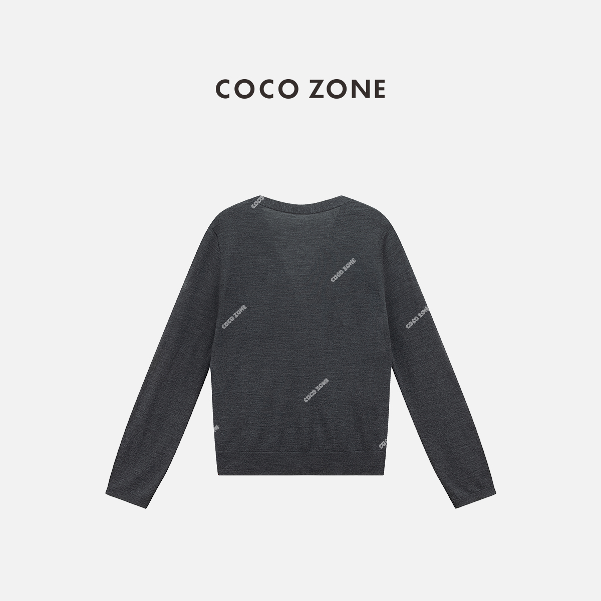 COCO ZONE 100绵羊毛设计感V领长袖针织开衫CC2C1324