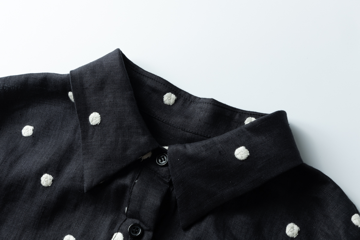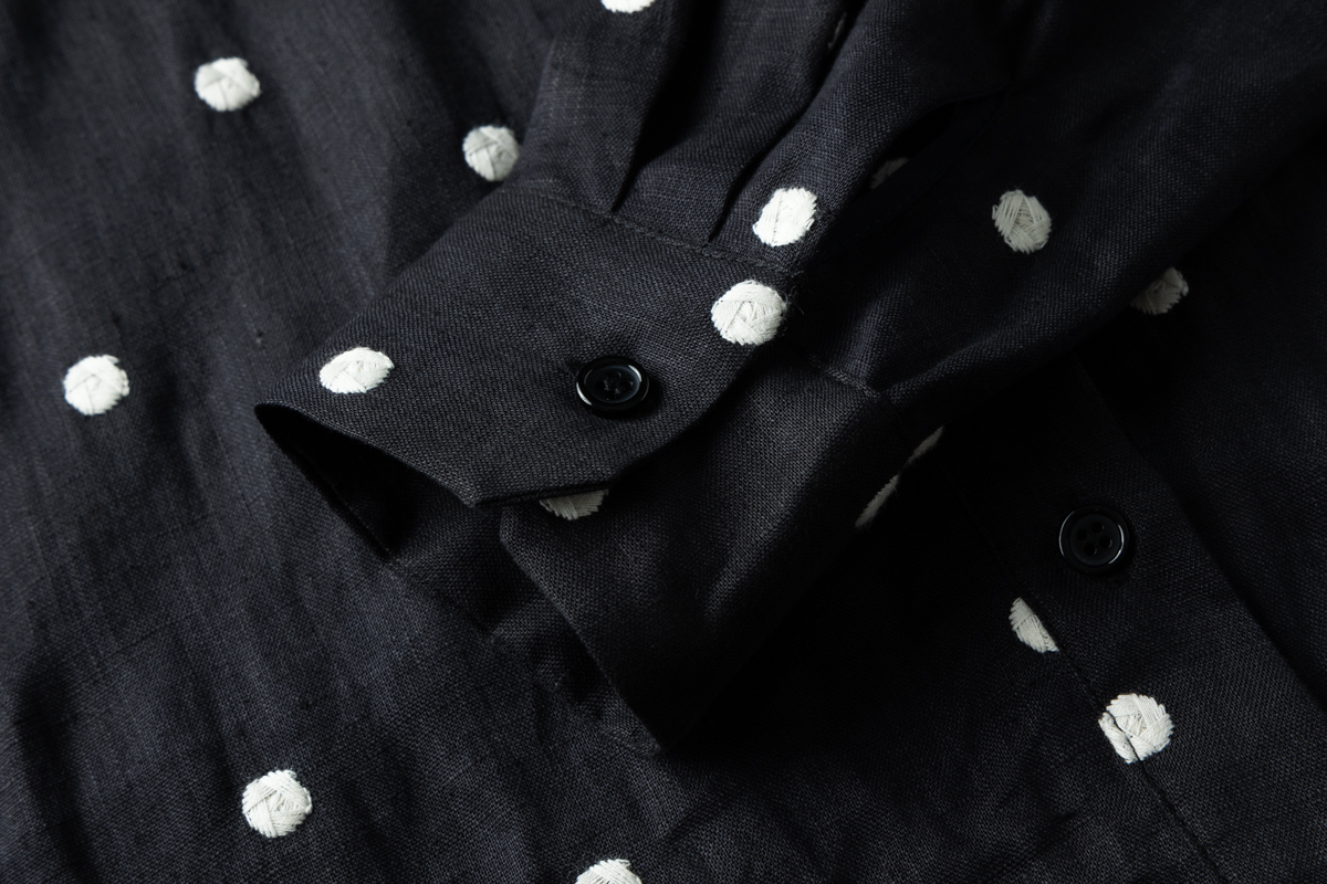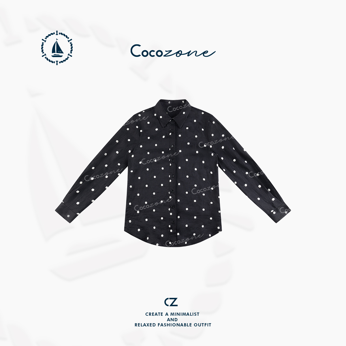 COCO ZONE【黑标系列】 松弛老钱风波点撞色衬衫CD2A0524