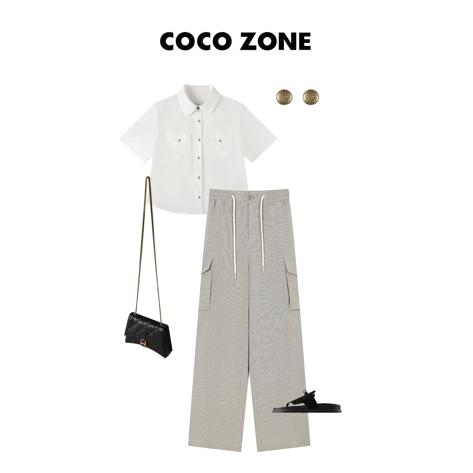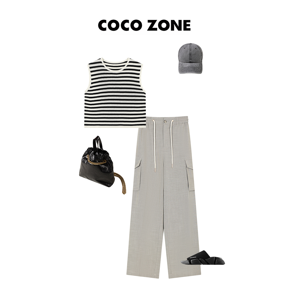 COCO ZONE 气质工装松紧腰阔休闲长裤 23C18854