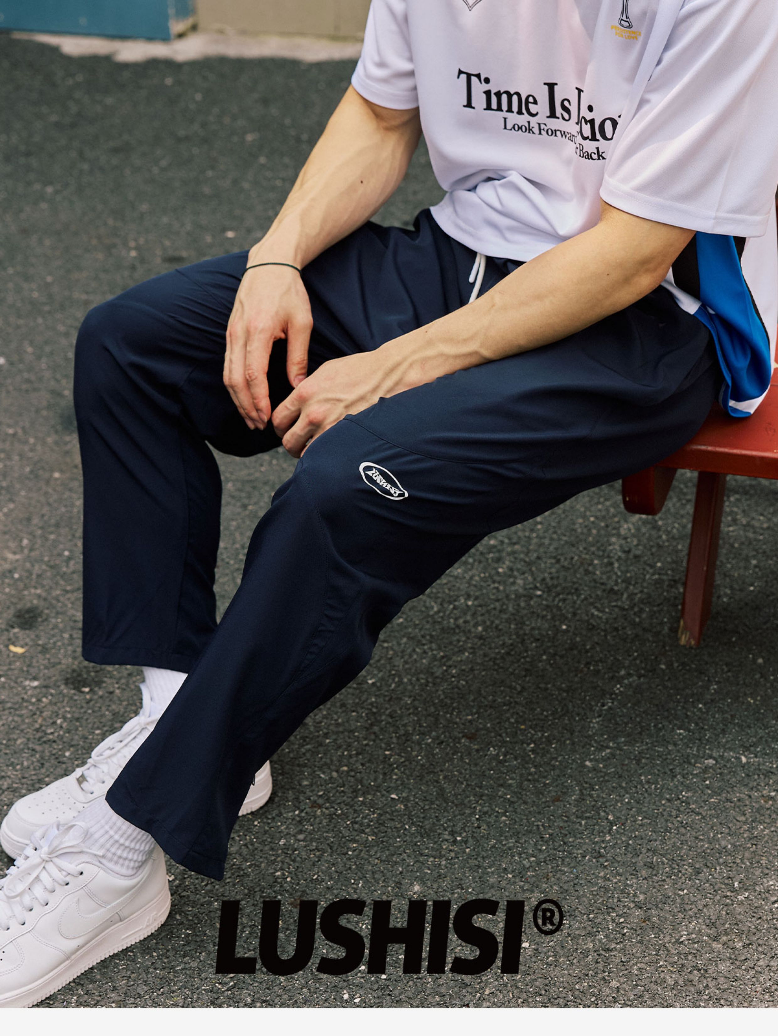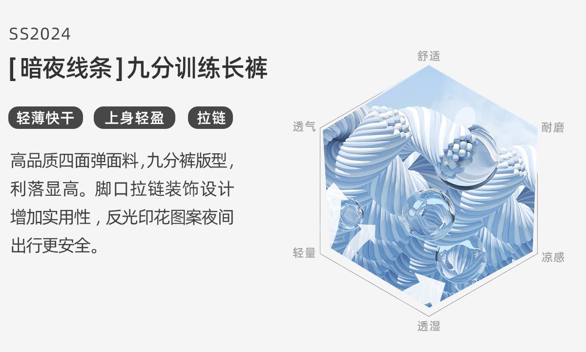 LUSHISI「轻盈透气」四面弹快感拉链九分训练休闲长裤男暗夜线条