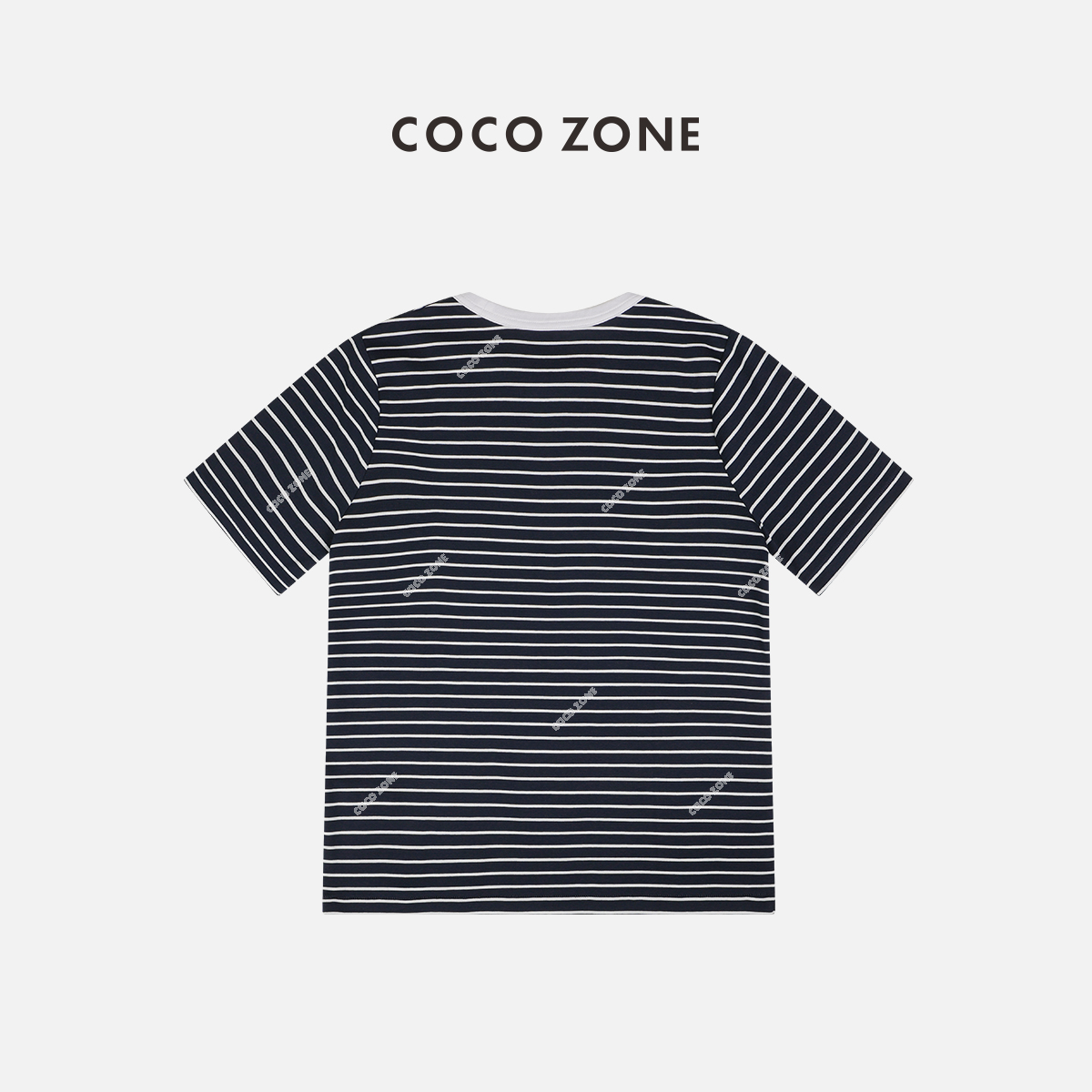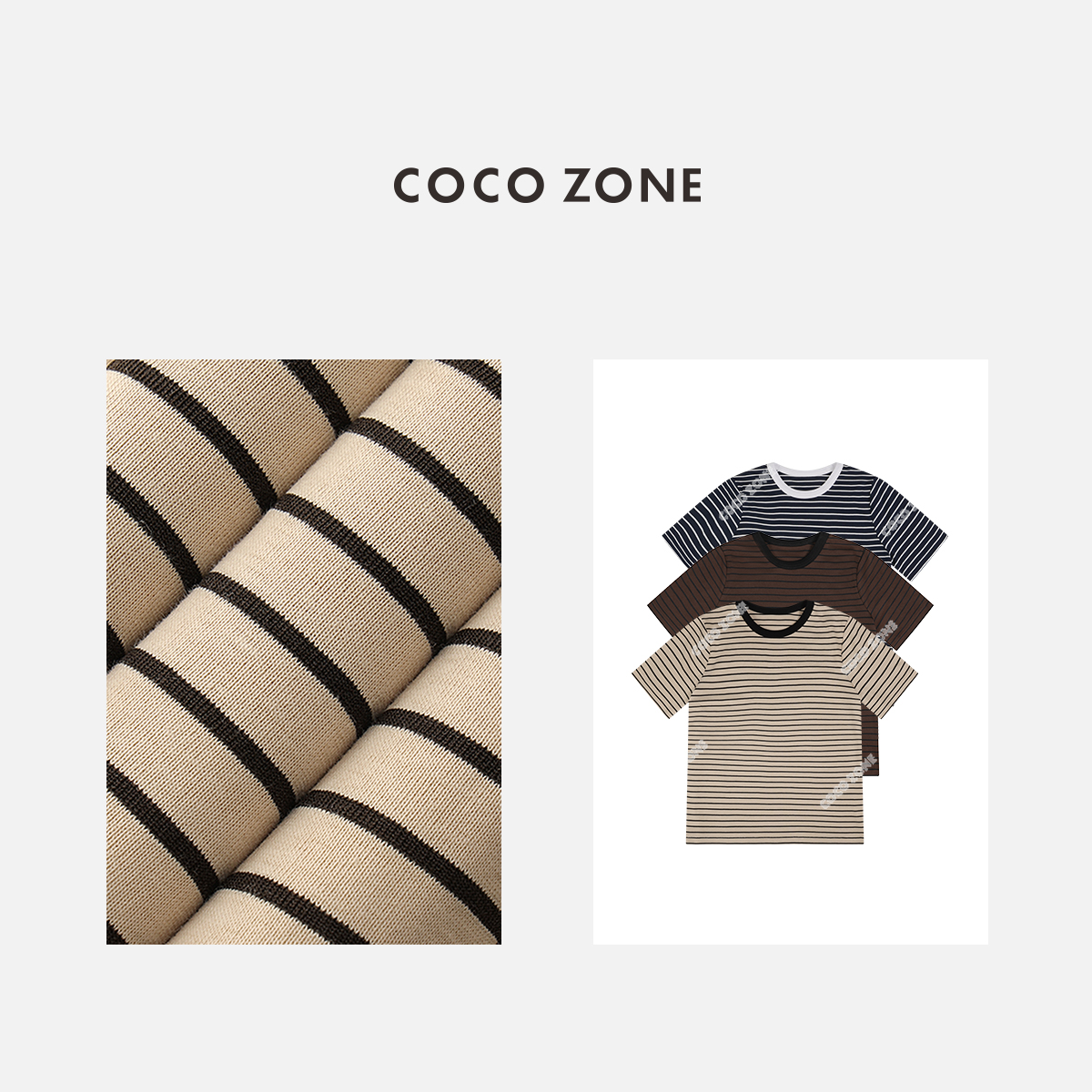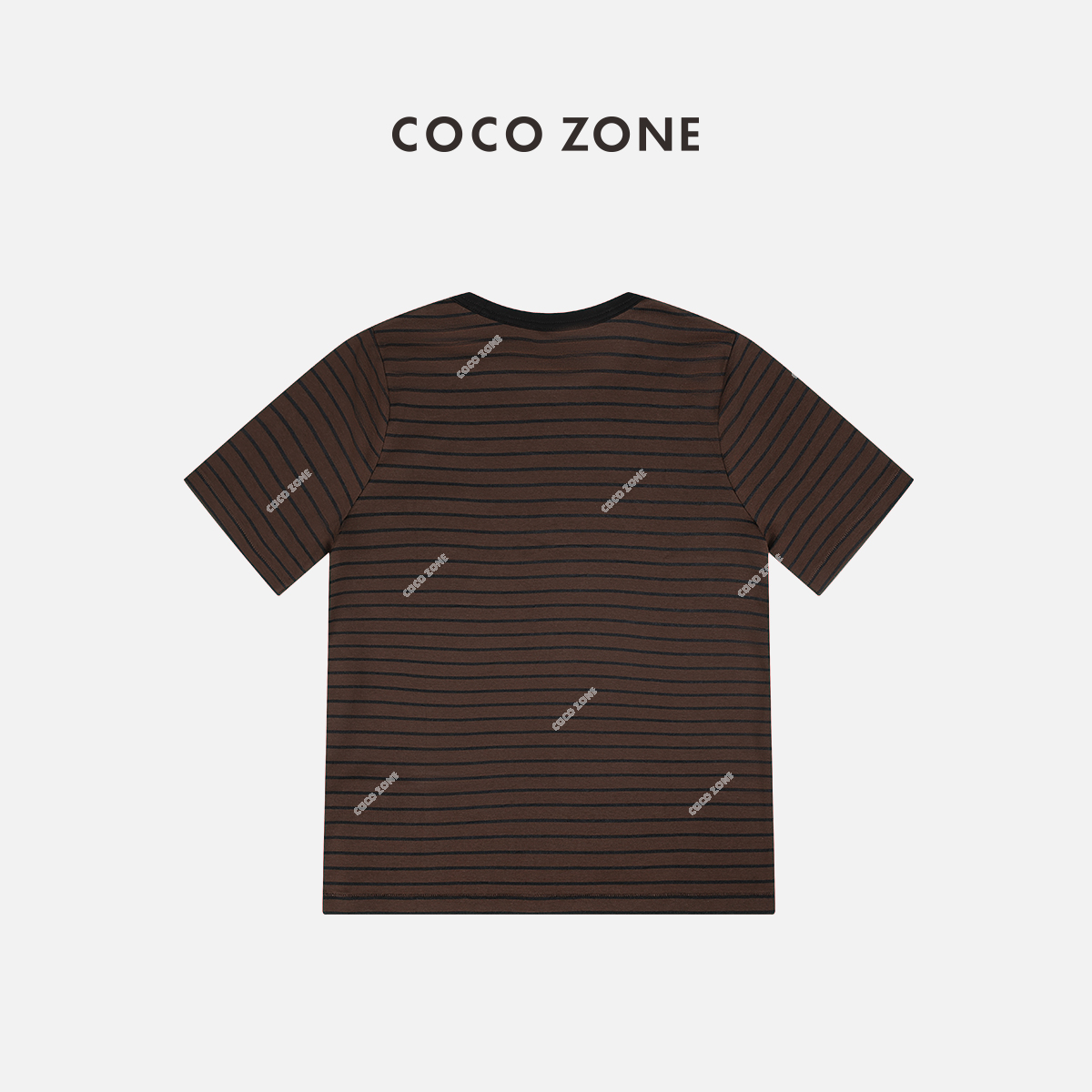 COCO ZONE 港风复古百搭条纹圆领短袖T恤上衣 24C10085