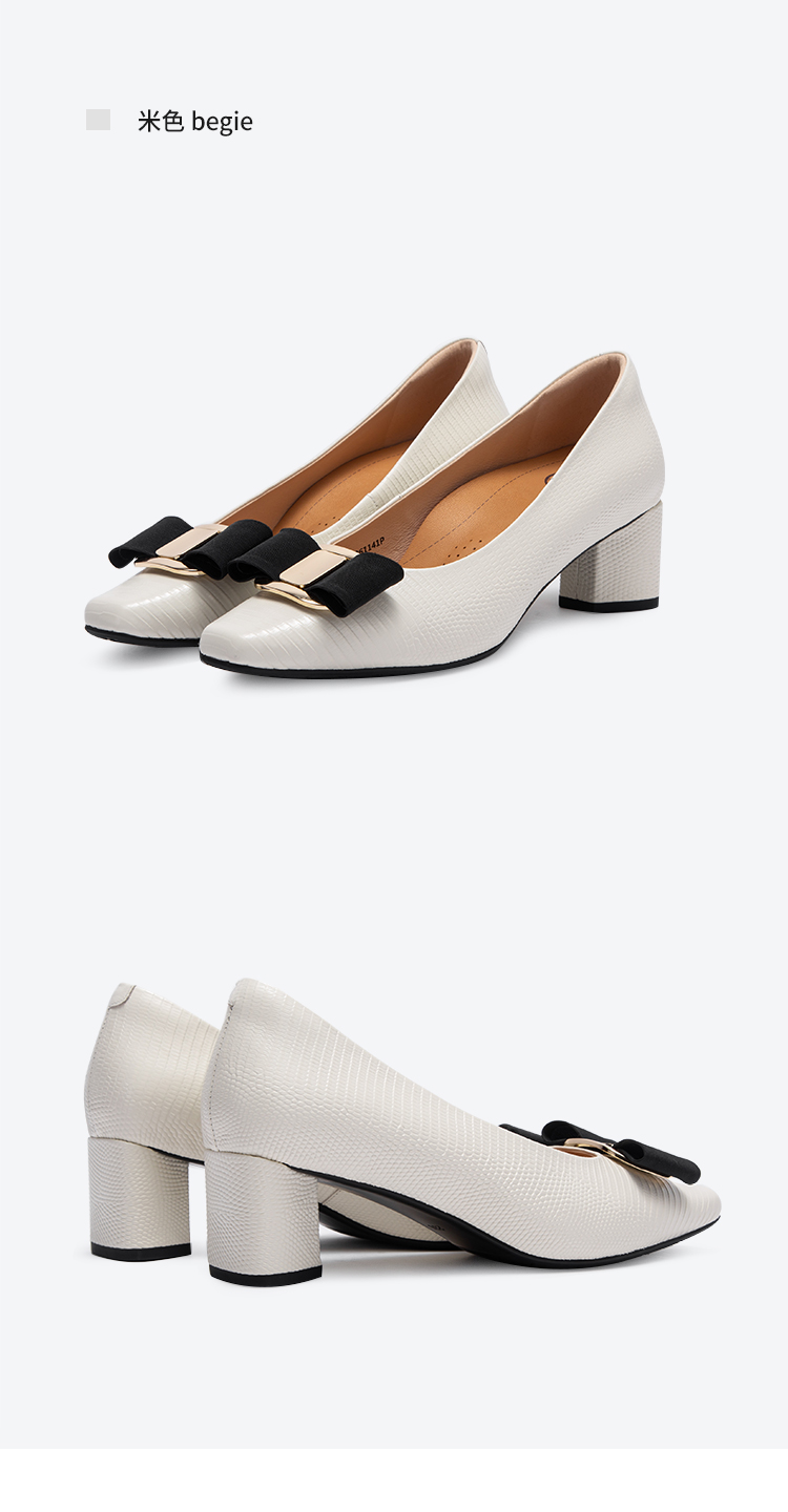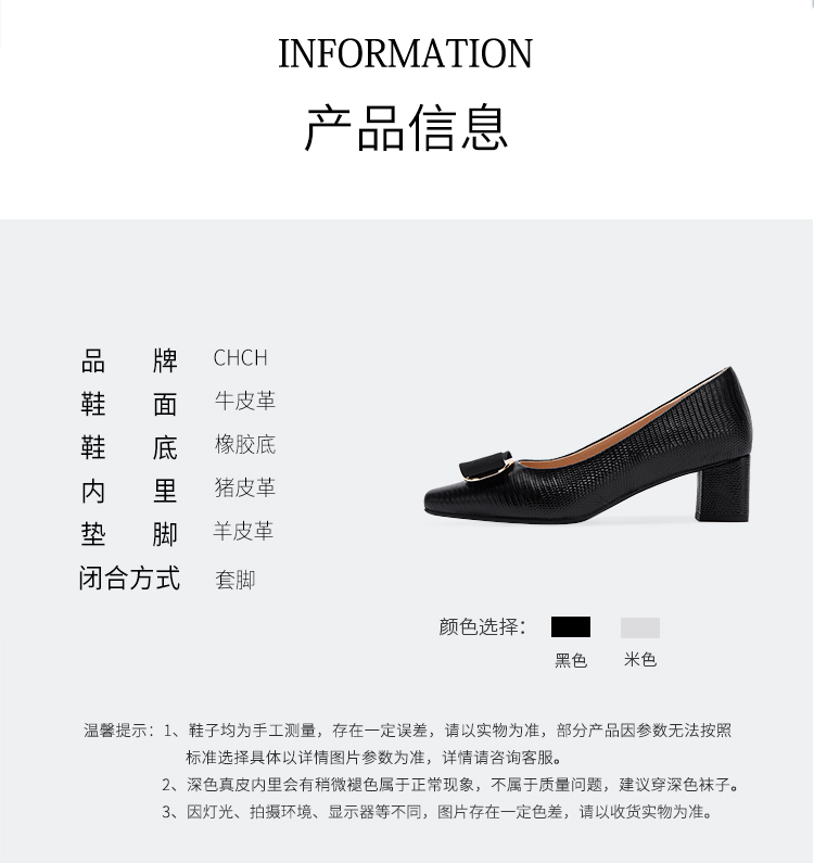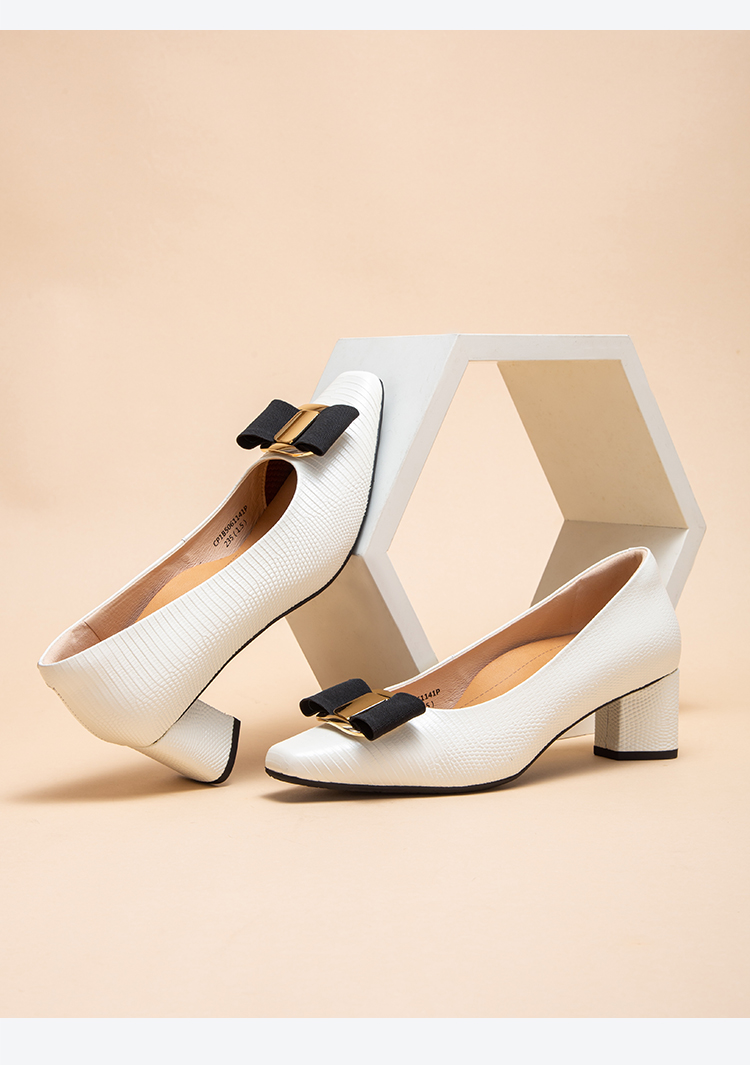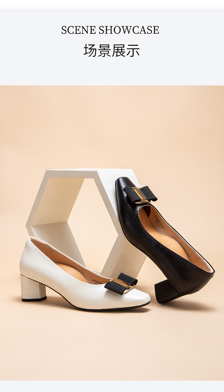 2025春夏CHCH平衡鞋新品牛皮压纹蝴蝶结女单鞋粗跟女鞋CP1B5061