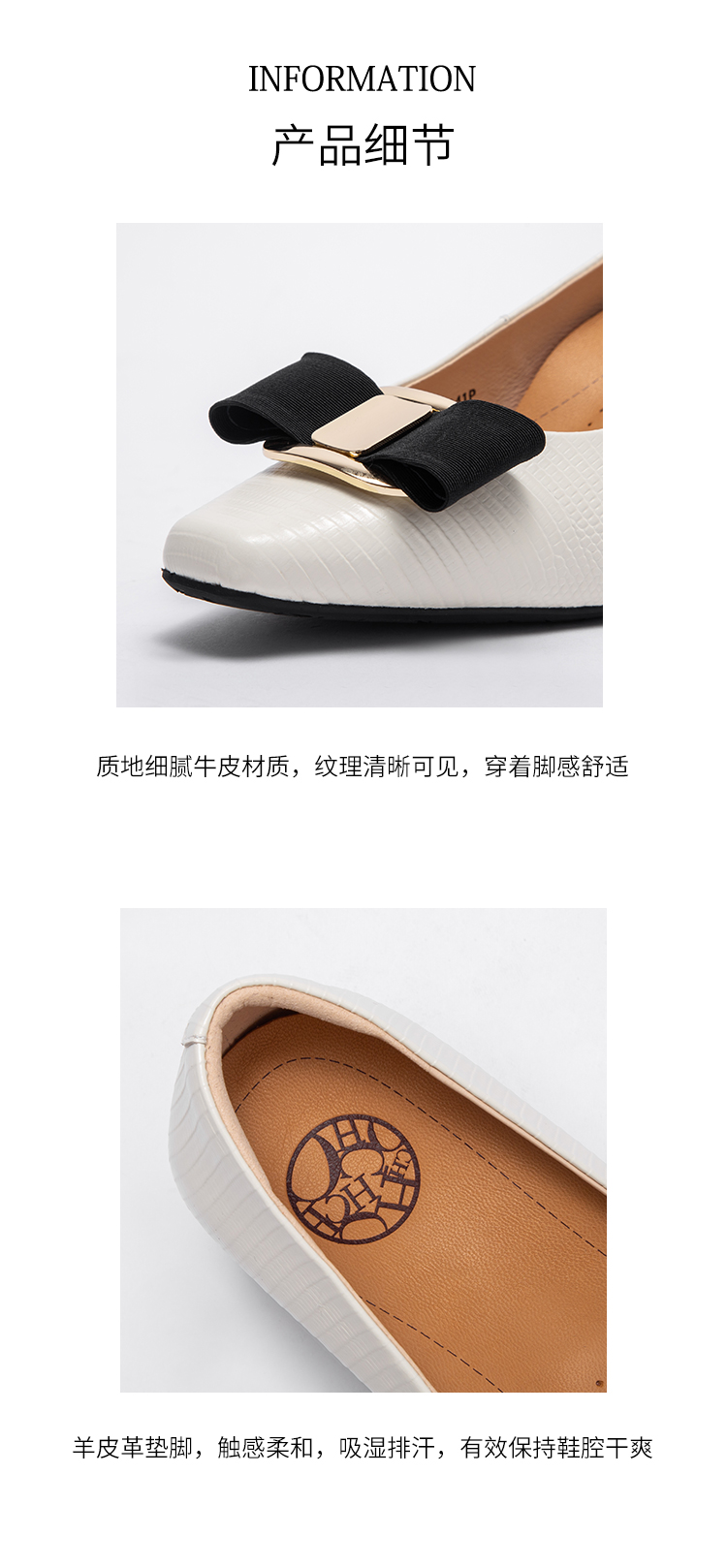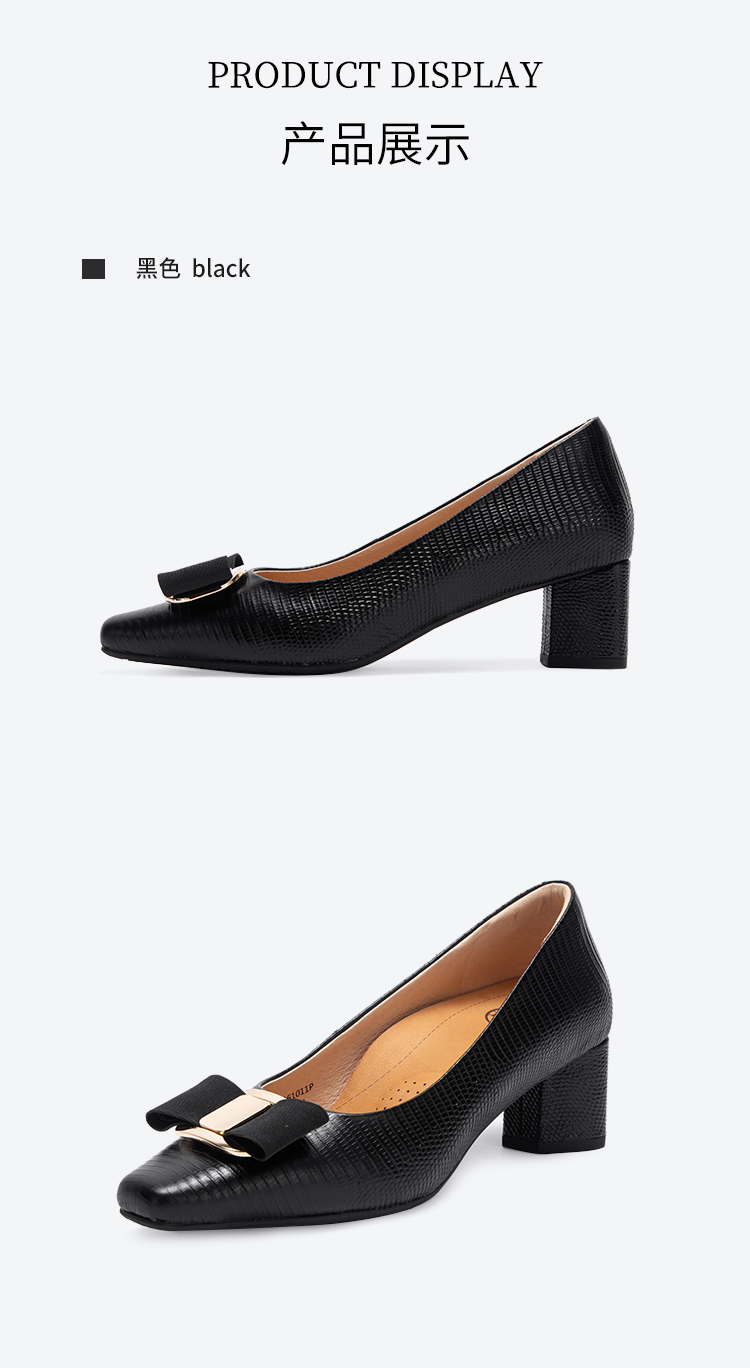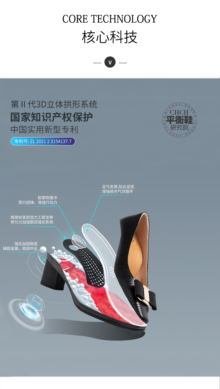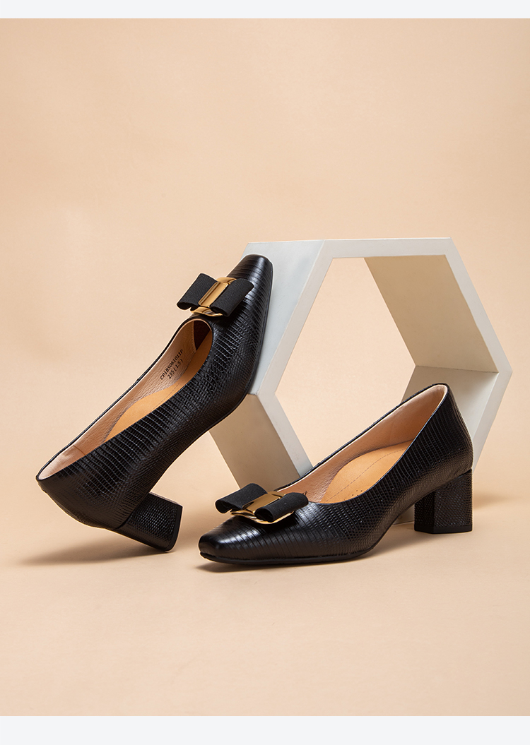 2025春夏CHCH平衡鞋新品牛皮压纹蝴蝶结女单鞋粗跟女鞋CP1B5061