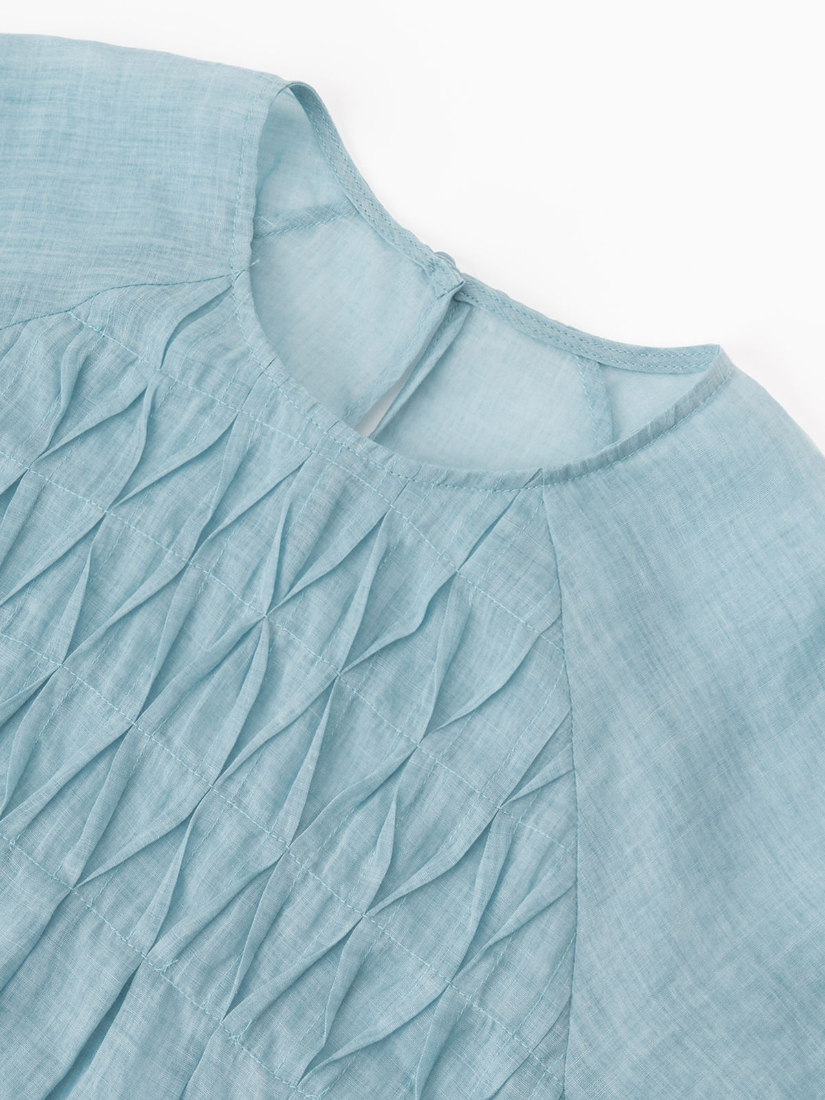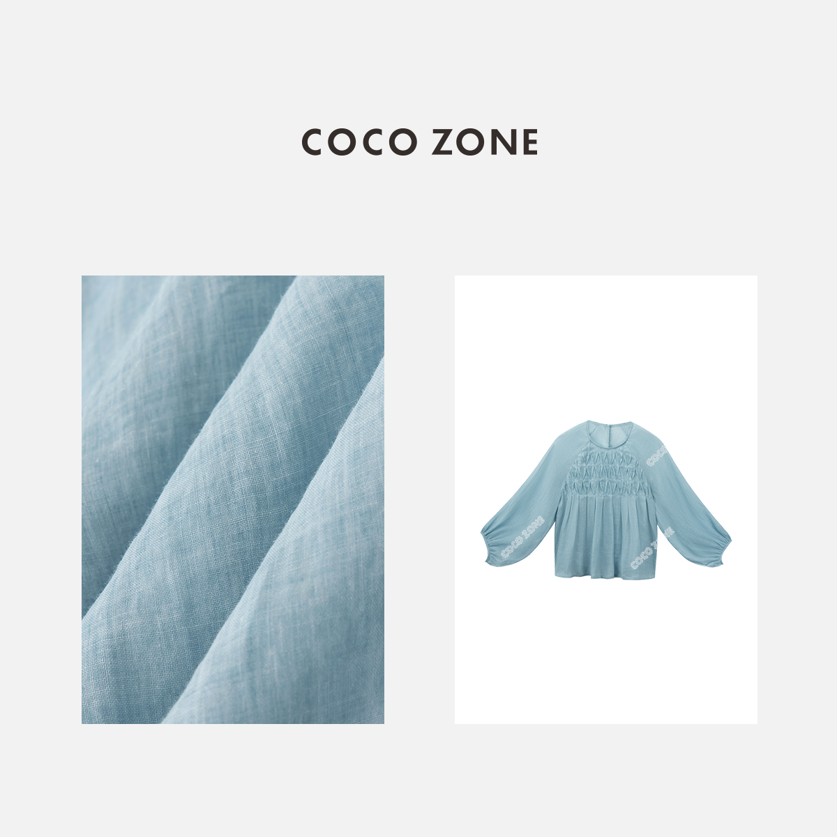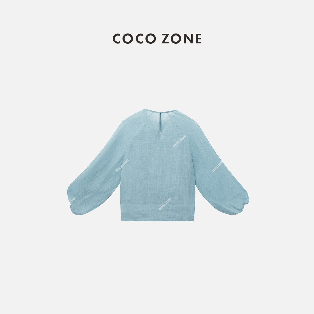 COCO ZONE"蓝娃娃衫“薄款设计感褶皱长袖衬衫圆领长袖上衣CC1B1231