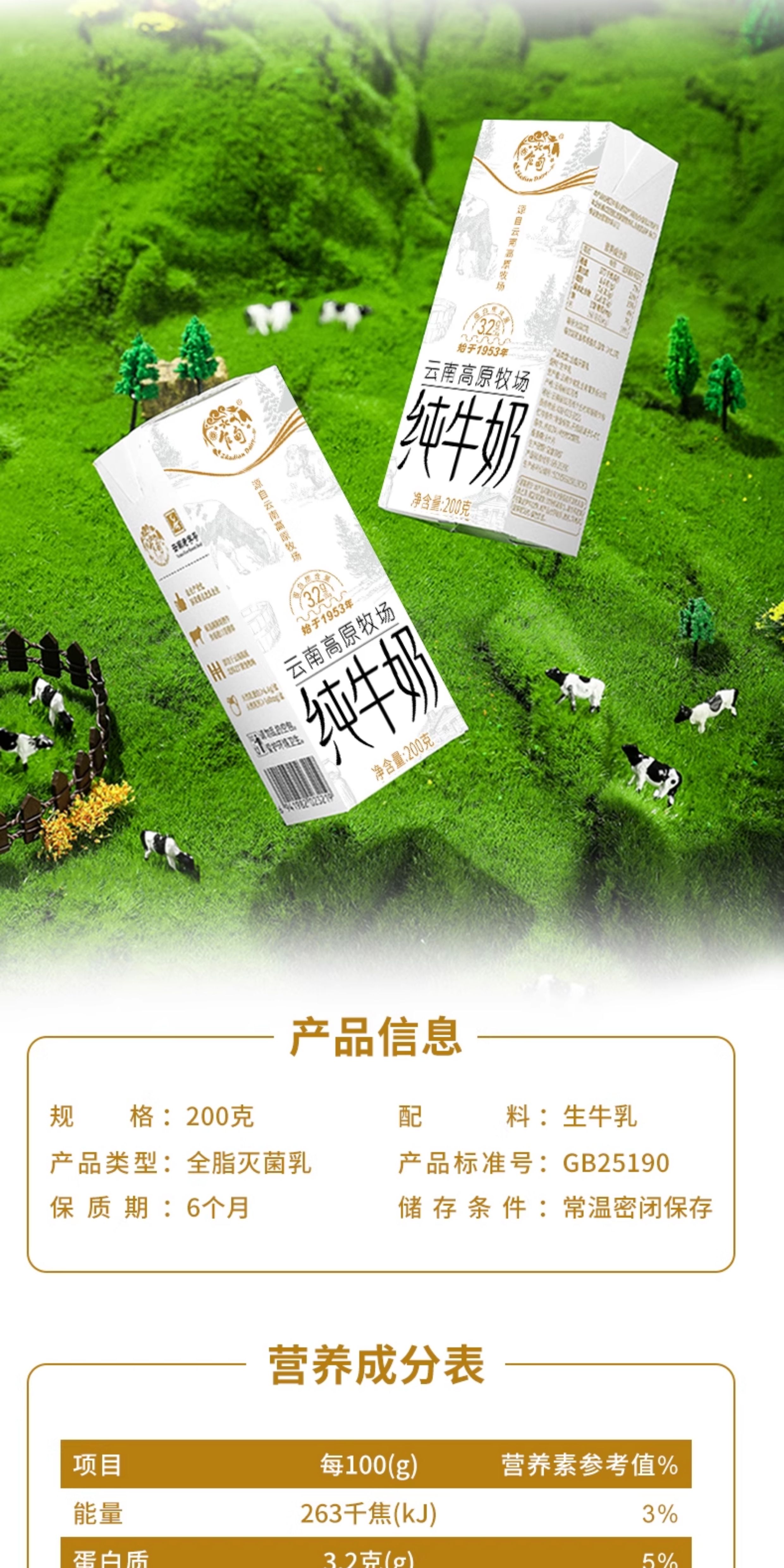 [七彩鲜生]乍甸利乐砖高原牧场纯牛奶200ml*12【俊发城次日自提】