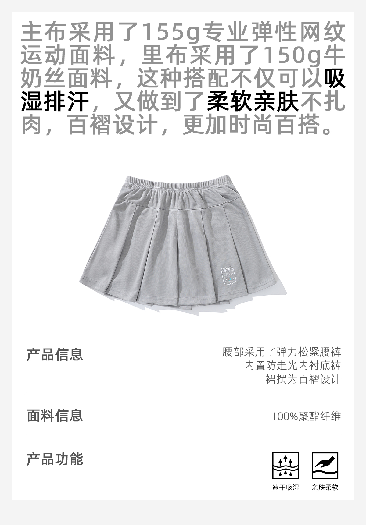 LUSHISI风铃主题运动短裙女羽毛球防走光半身裙训练吸湿速干裙子
