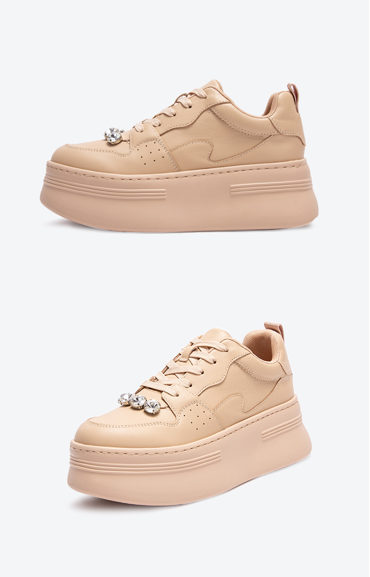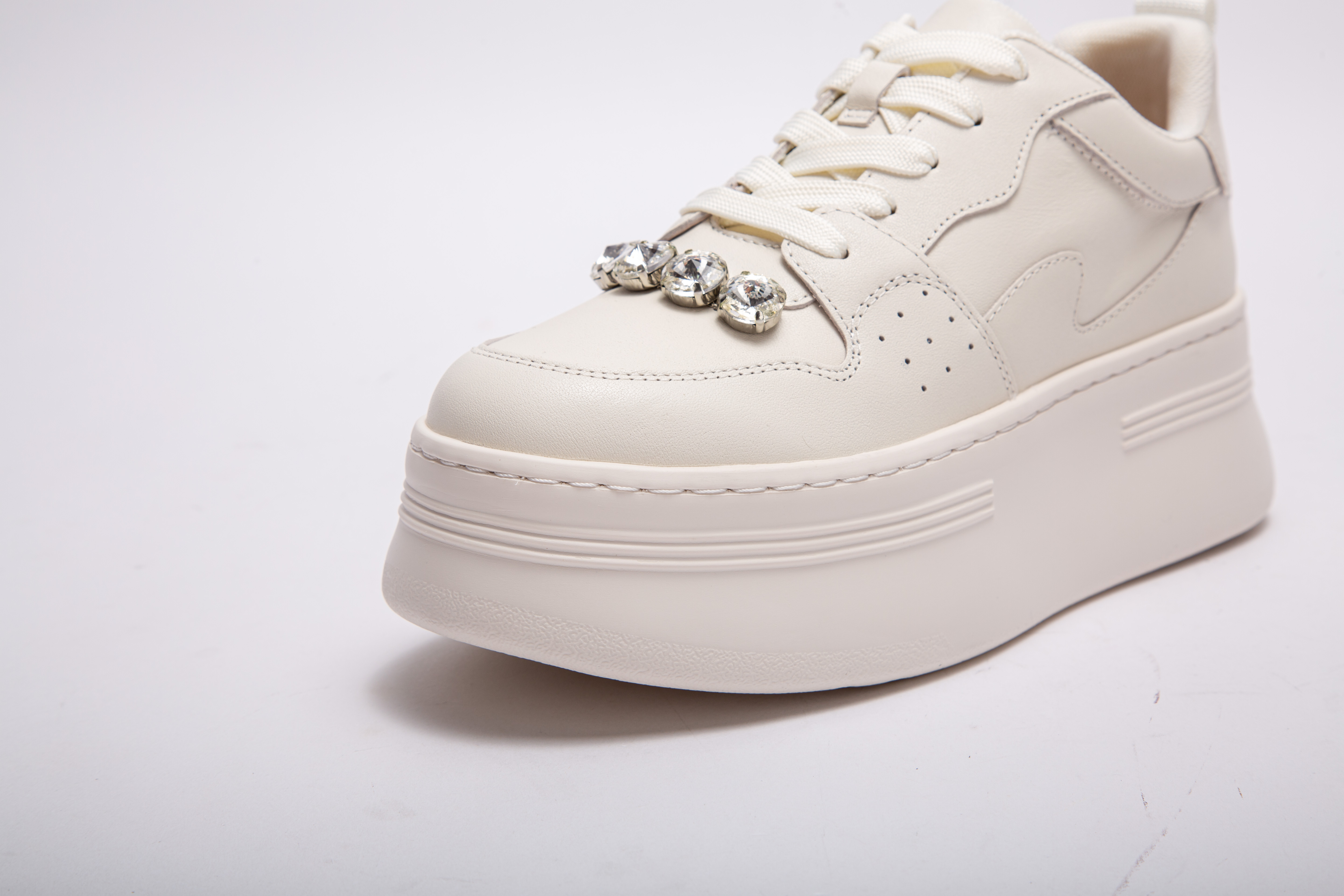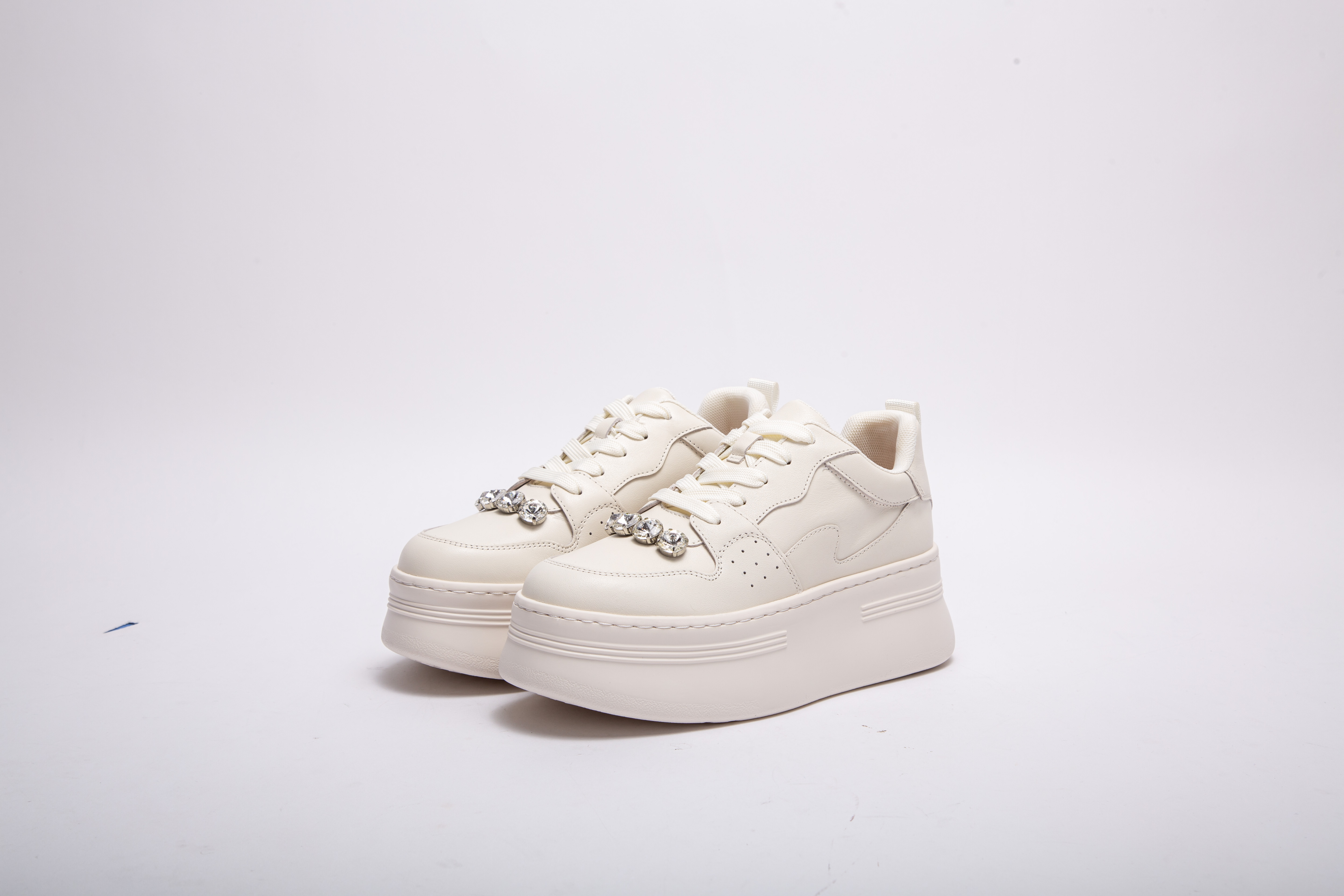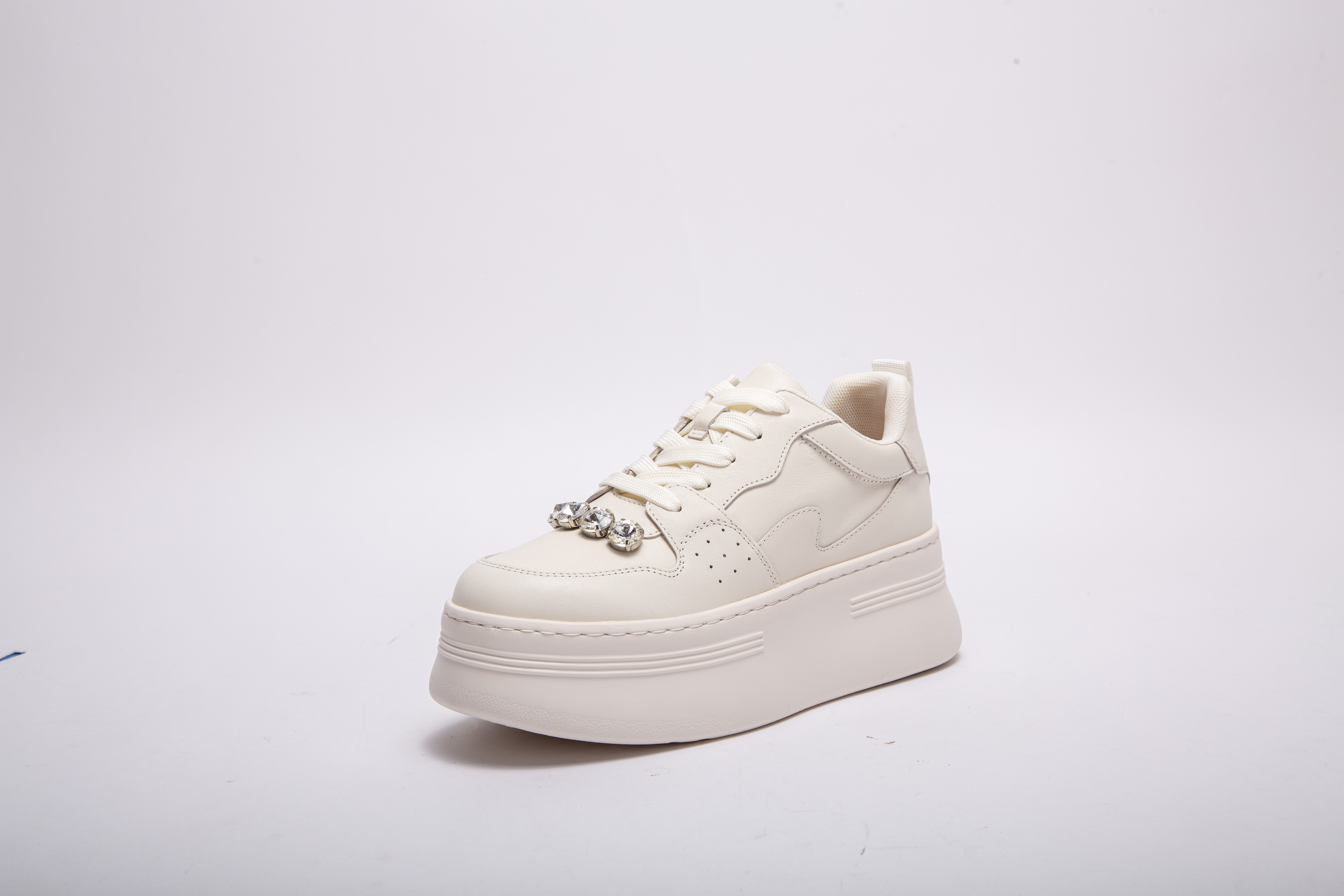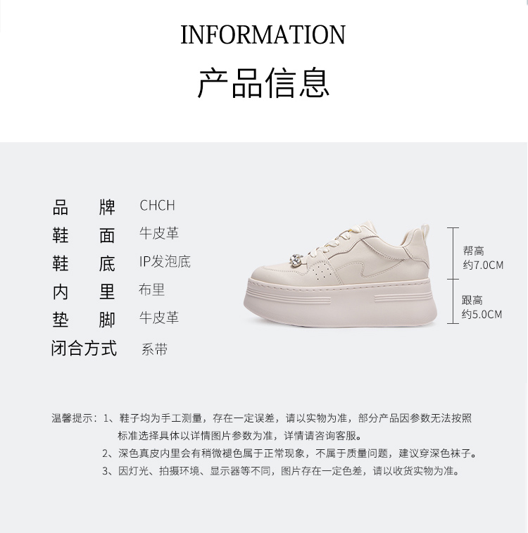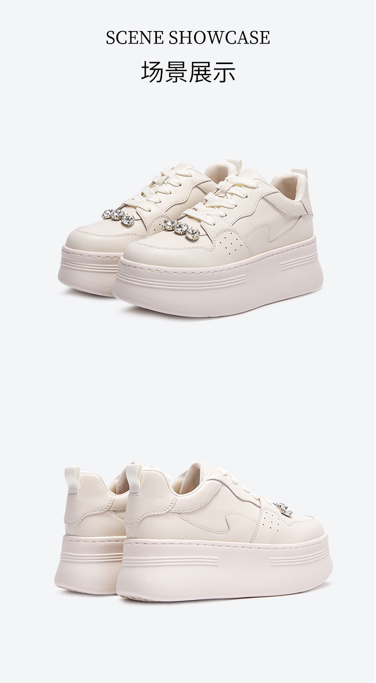 2024秋冬新品真牛皮增高复古单鞋厚底松糕水钻小白鞋女鞋CO2B5121