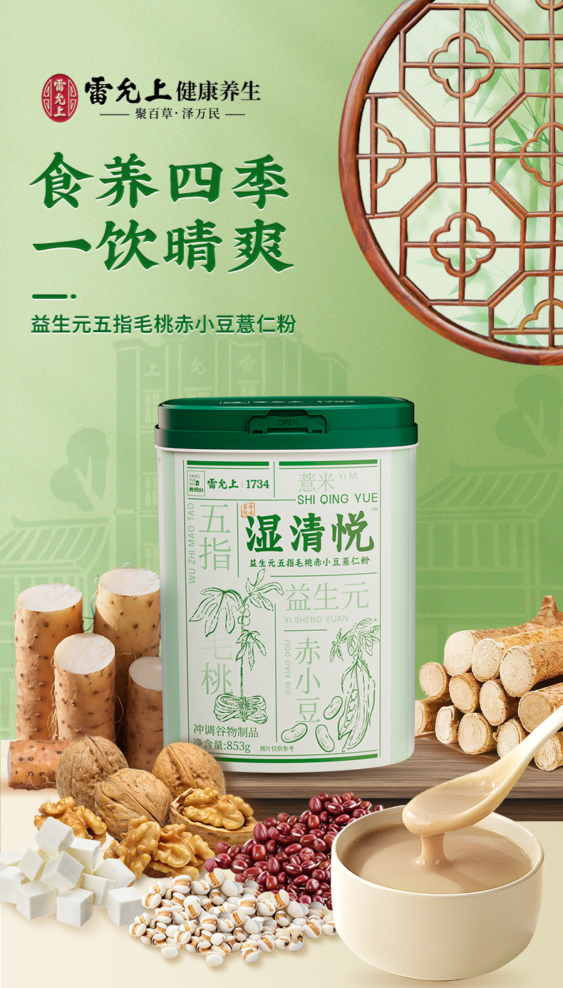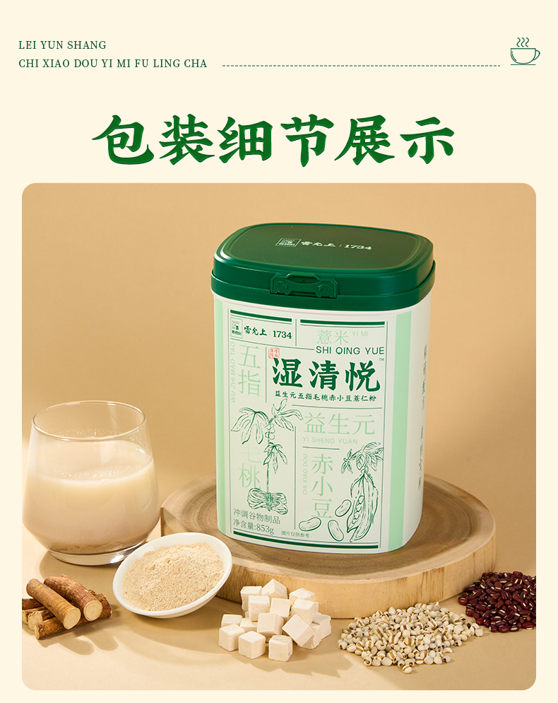 【清湿悦】雷允上益生元五指毛桃赤小豆薏仁粉853g/罐