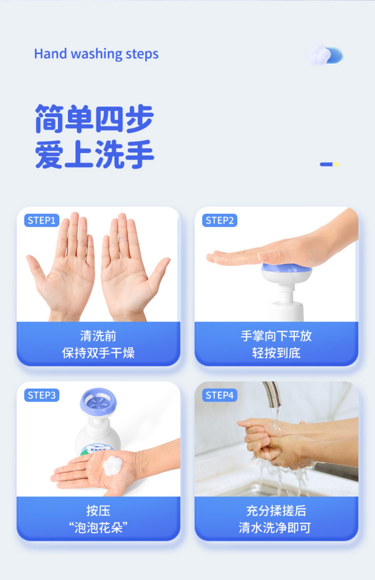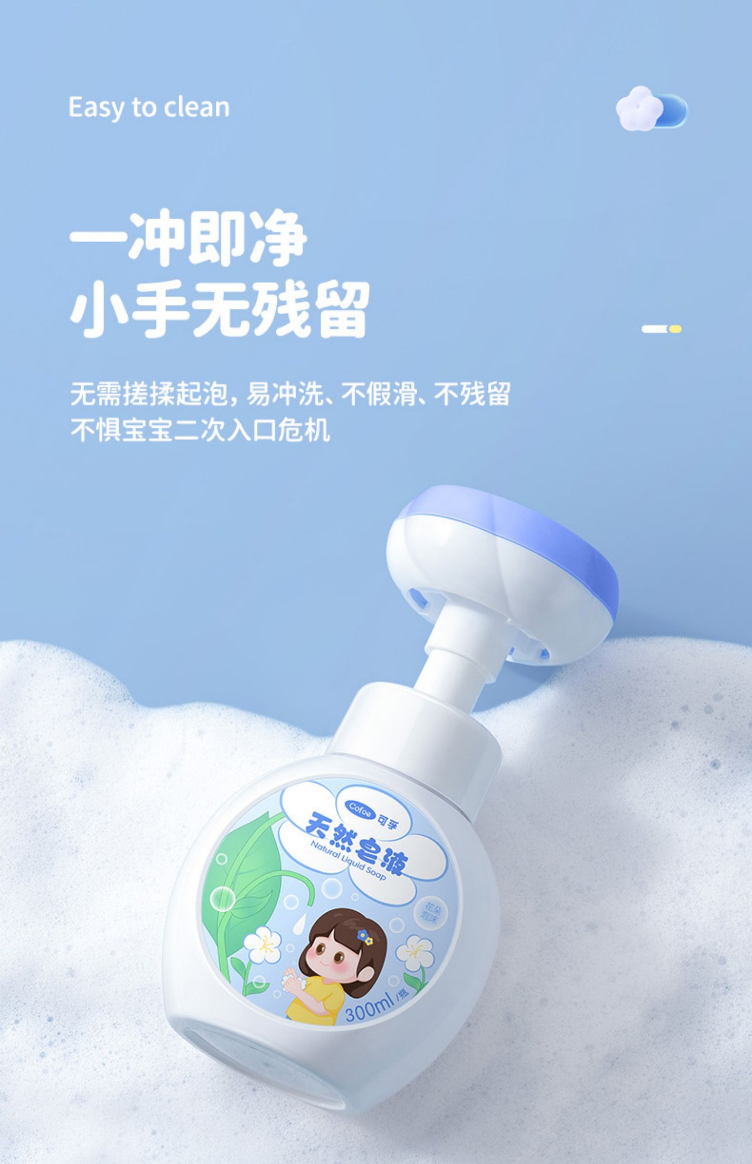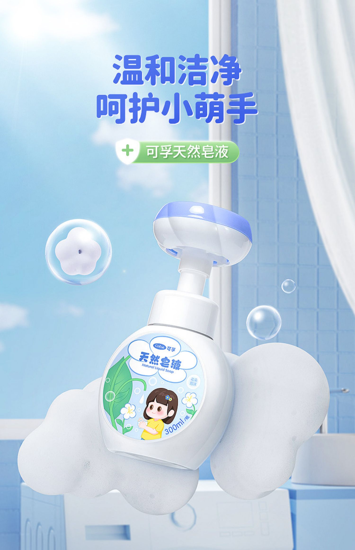 可孚儿童洗手液泡沫花朵杀菌消毒婴儿宝宝幼儿专用泡泡按压瓶小花