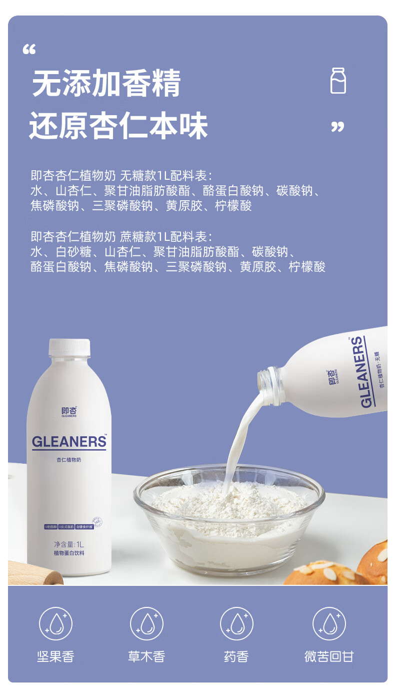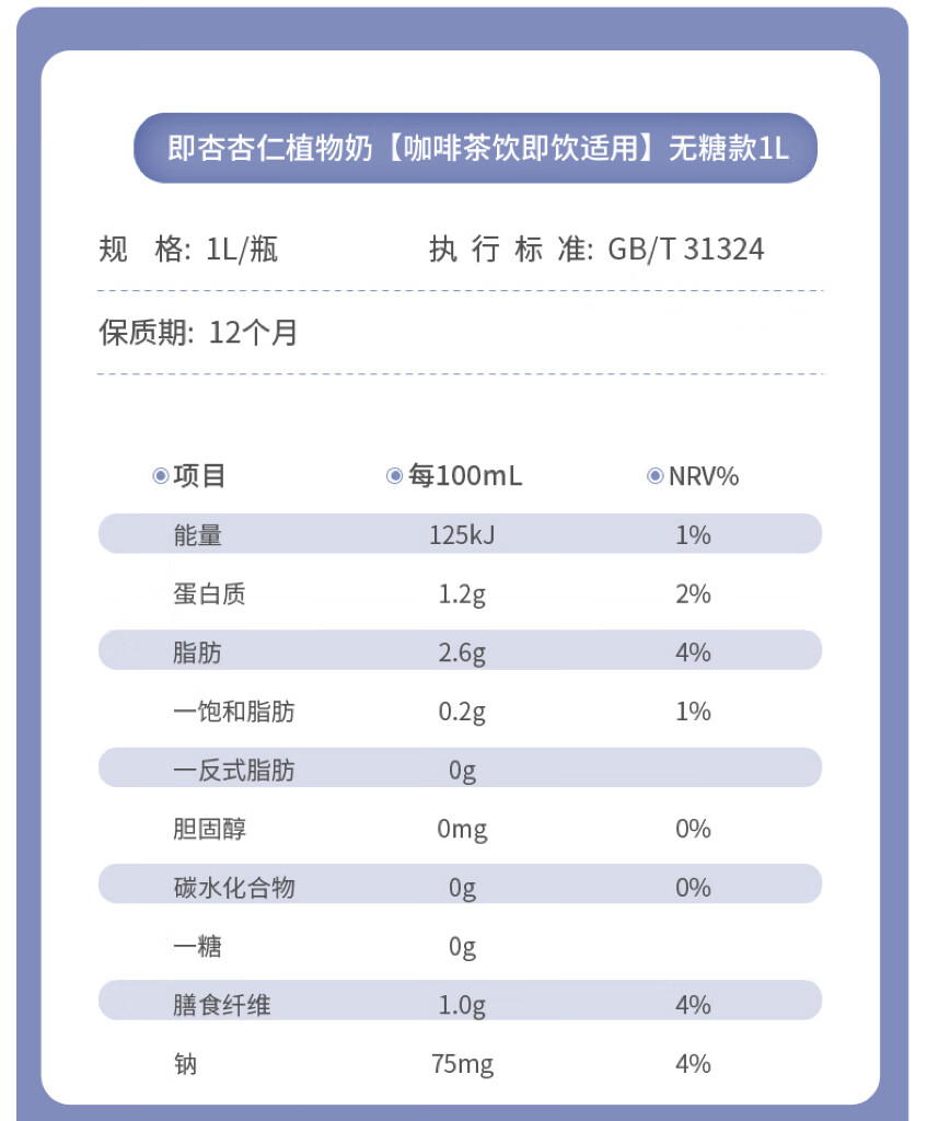 即杏杏仁奶大瓶无糖款1L*2瓶