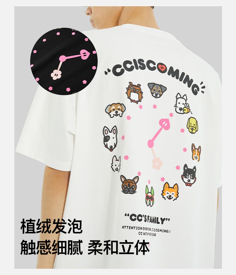 NPC潮牌CC系列背后植绒发泡时钟花朵印花短袖T恤男索罗娜CC53TE10