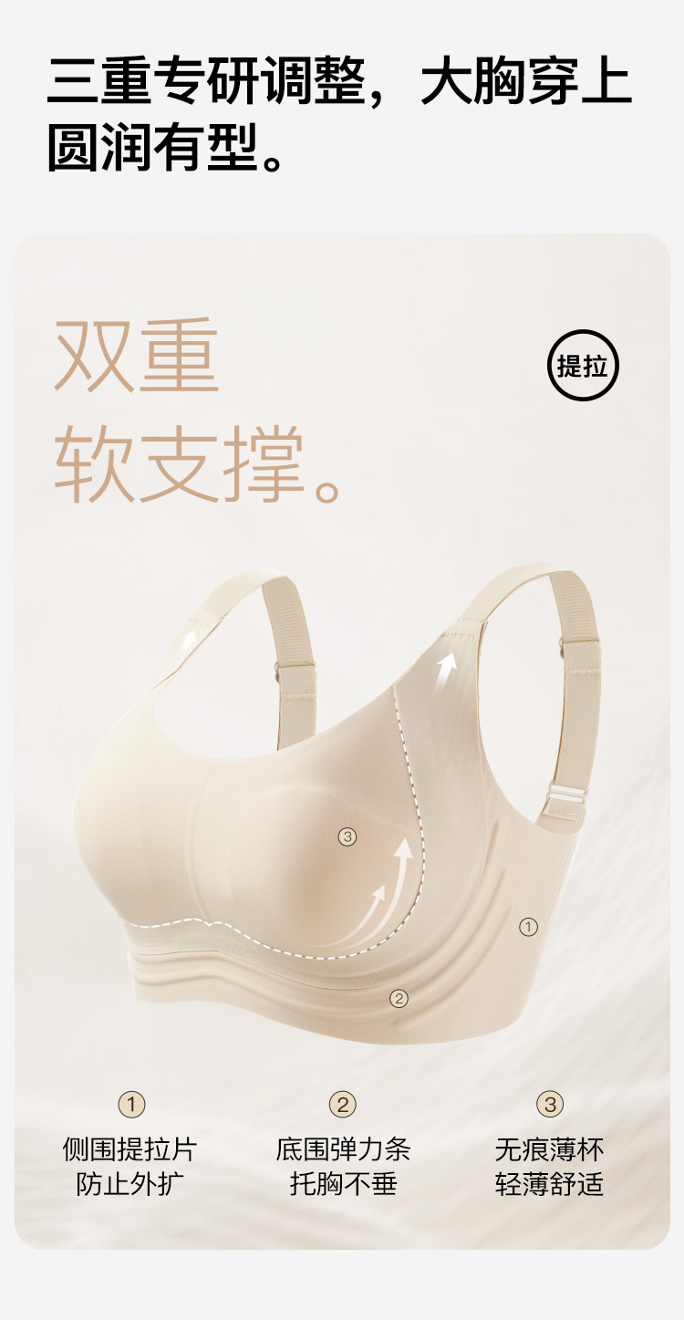 【大胸显小】无痕软支撑上托聚拢内衣女侧收防垂防外扩无钢圈文胸浅吟离歌
