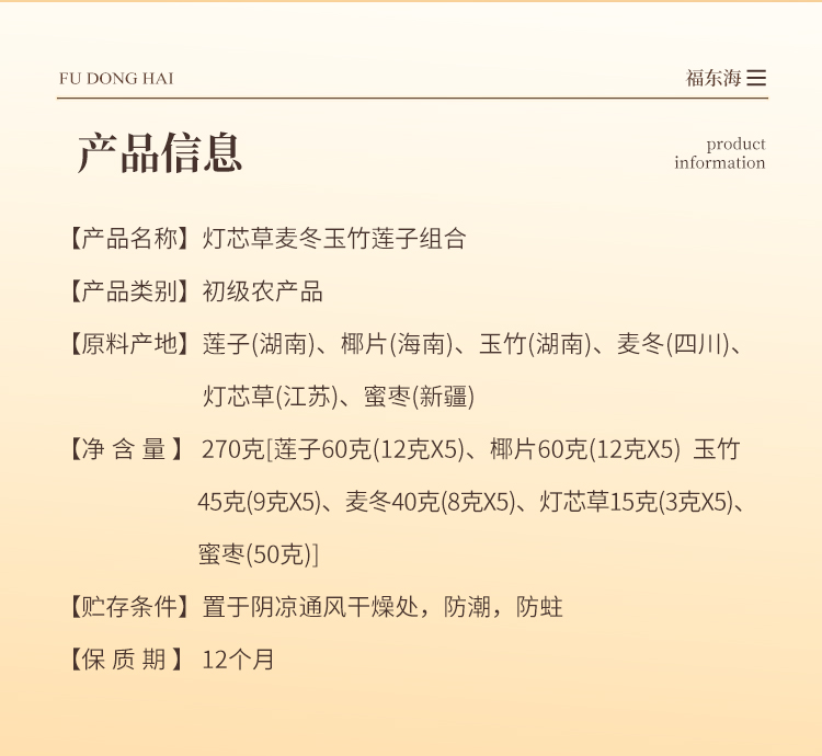 福东海 灯芯草麦冬玉竹莲子组合270克/袋 煲汤材料