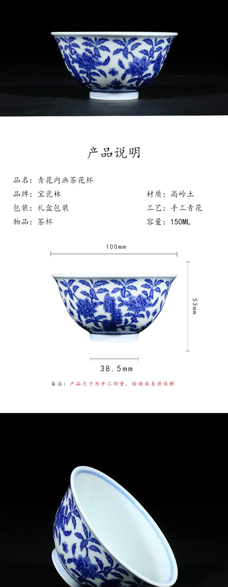 宝瓷林青花内画茶花杯