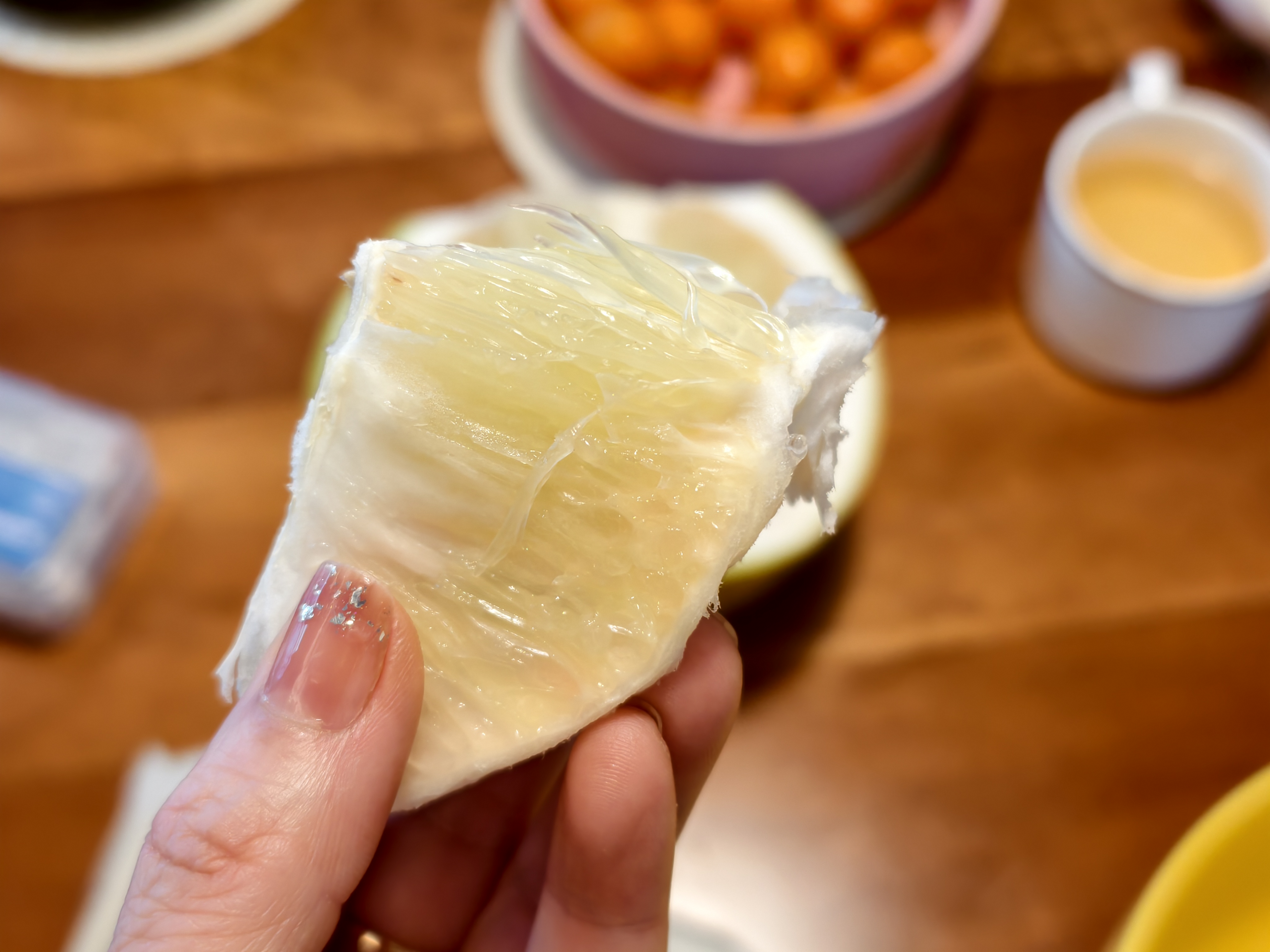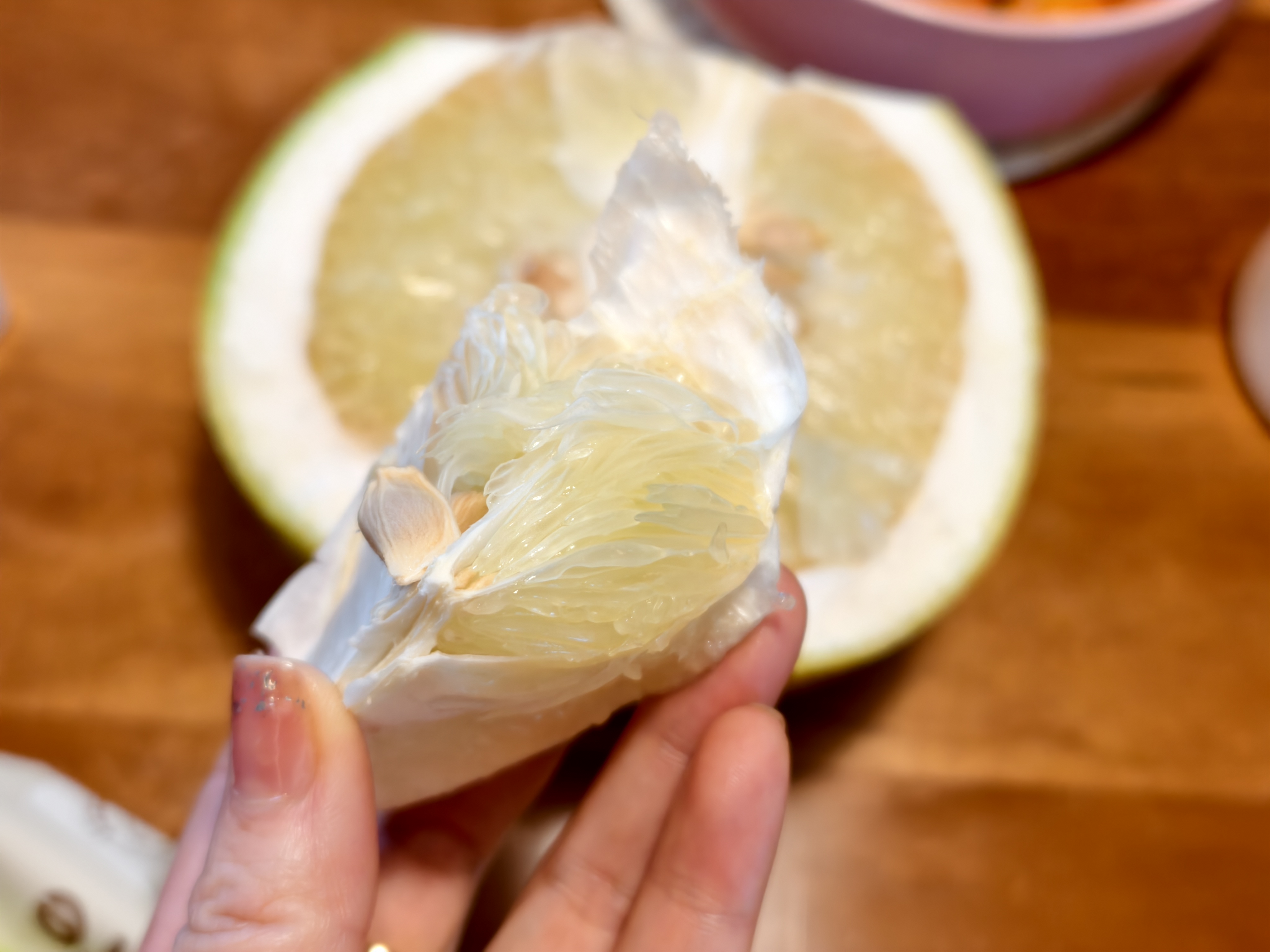 这个柚子他去年就寄给我吃了,味道很天然,原生态的水果就是有种自然的味道,没有科技与狠活儿!所以不会很甜也不酸,是那种清甜的口感,水分多,越吃越好吃!